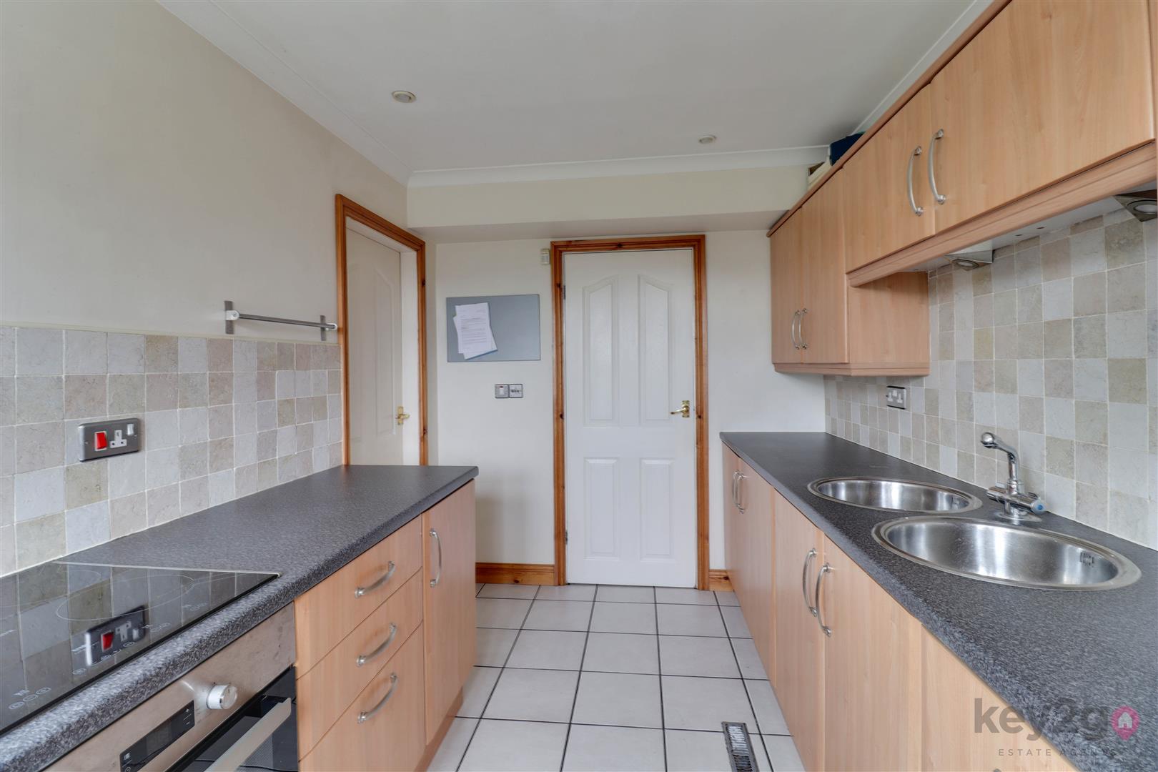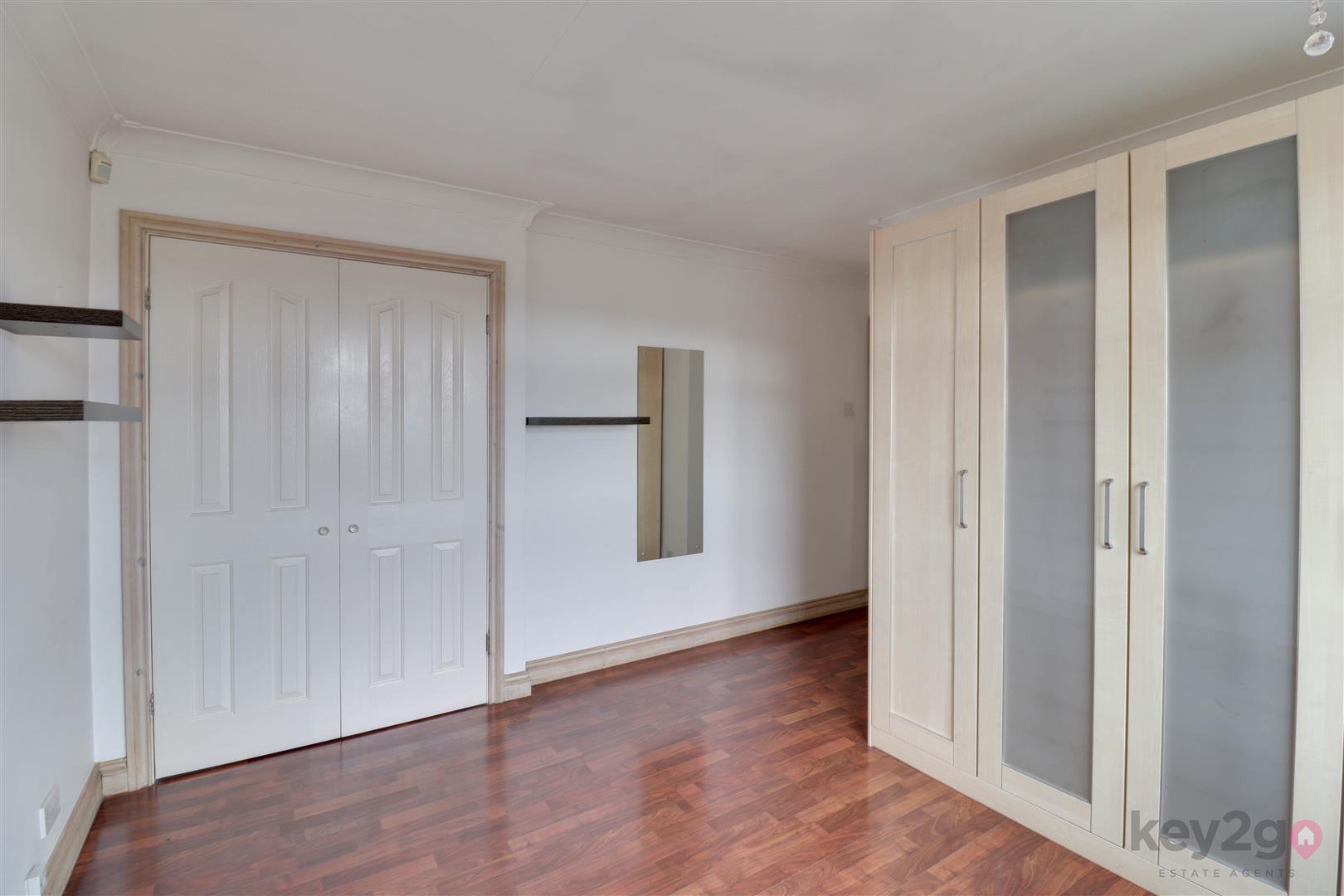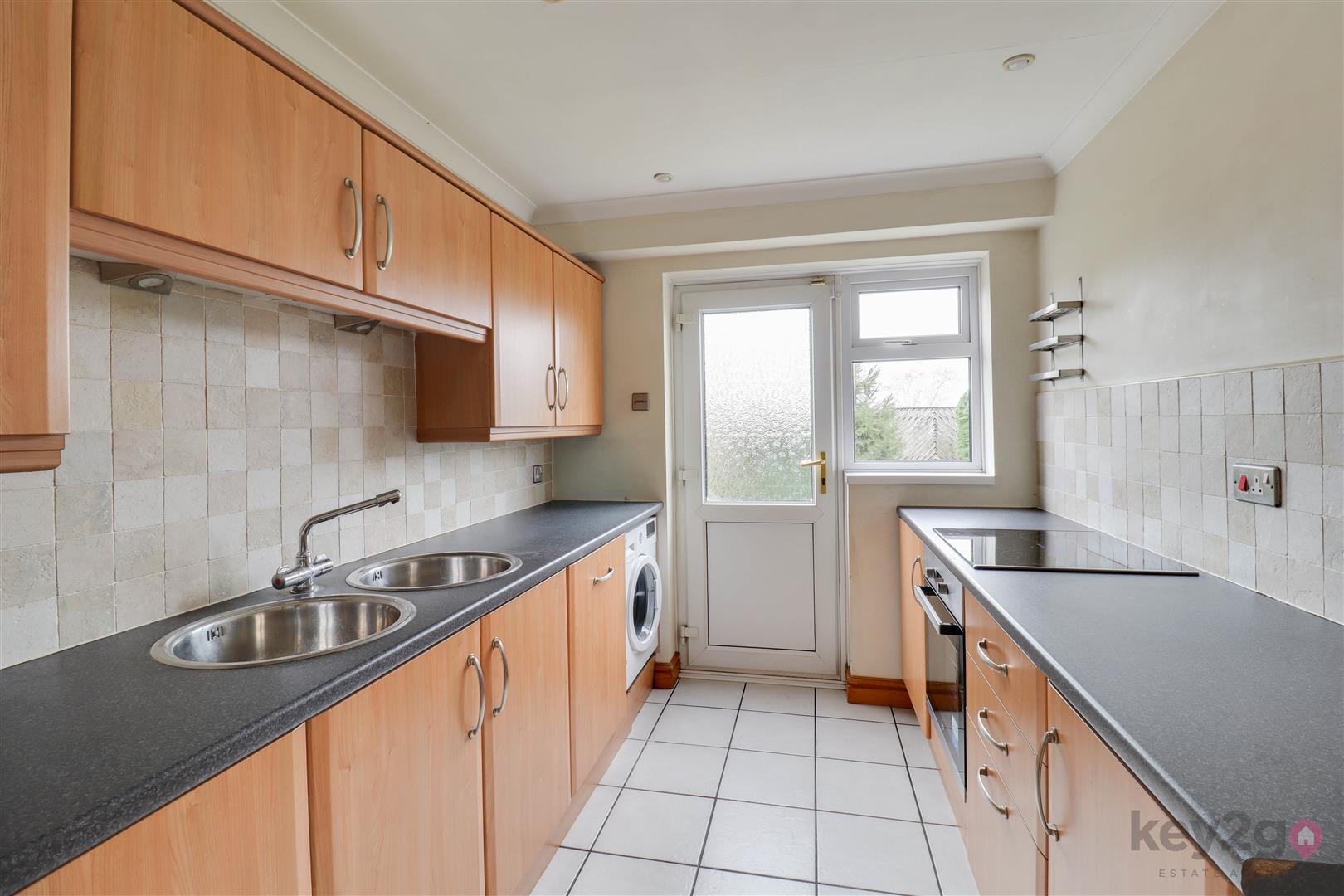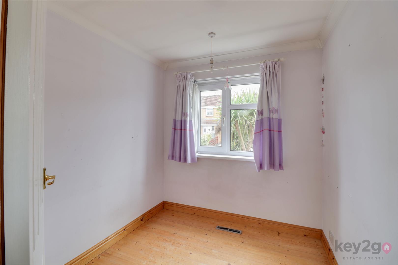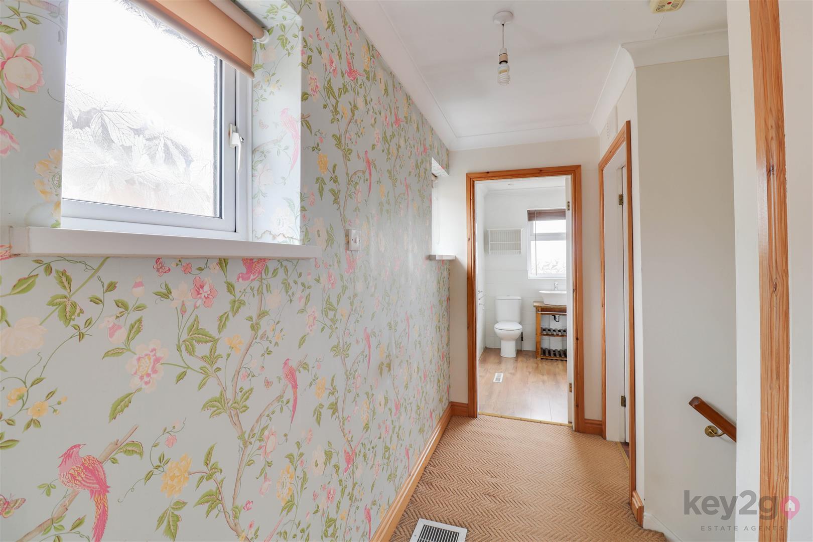 Carpeted stairs lead to the landing with two windows. Bedroom one is a double with built-in storage and a window. Bedroom two is a double with wood flooring, built-in storage, and a window. The single bedroom is neutrally decorated with wood flooring and a window. The bathroom is stylish and semi-tiled, featuring a bath with shower and glass screen, low-level WC, wash hand basin, and an obscure window.