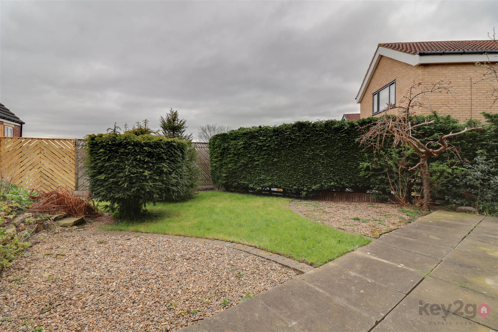 The rear garden is private and enclosed, featuring a patio area, lawn, and shrubbery. The front of the property is well-presented and private, with a generous detached garage and two parking spaces.