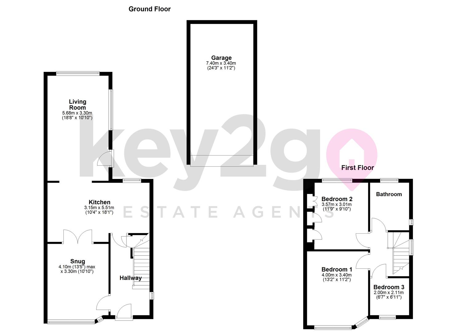 Stairs rise to the first floor where there is air conditioning. The master bedroom is a double with a bay window to the front. The second bedroom is a double to the rear with built-in wardrobes. The single bedroom is to the front and is currently used as an office. The bathroom includes a bath and a shower cubicle and is beautifully presented.