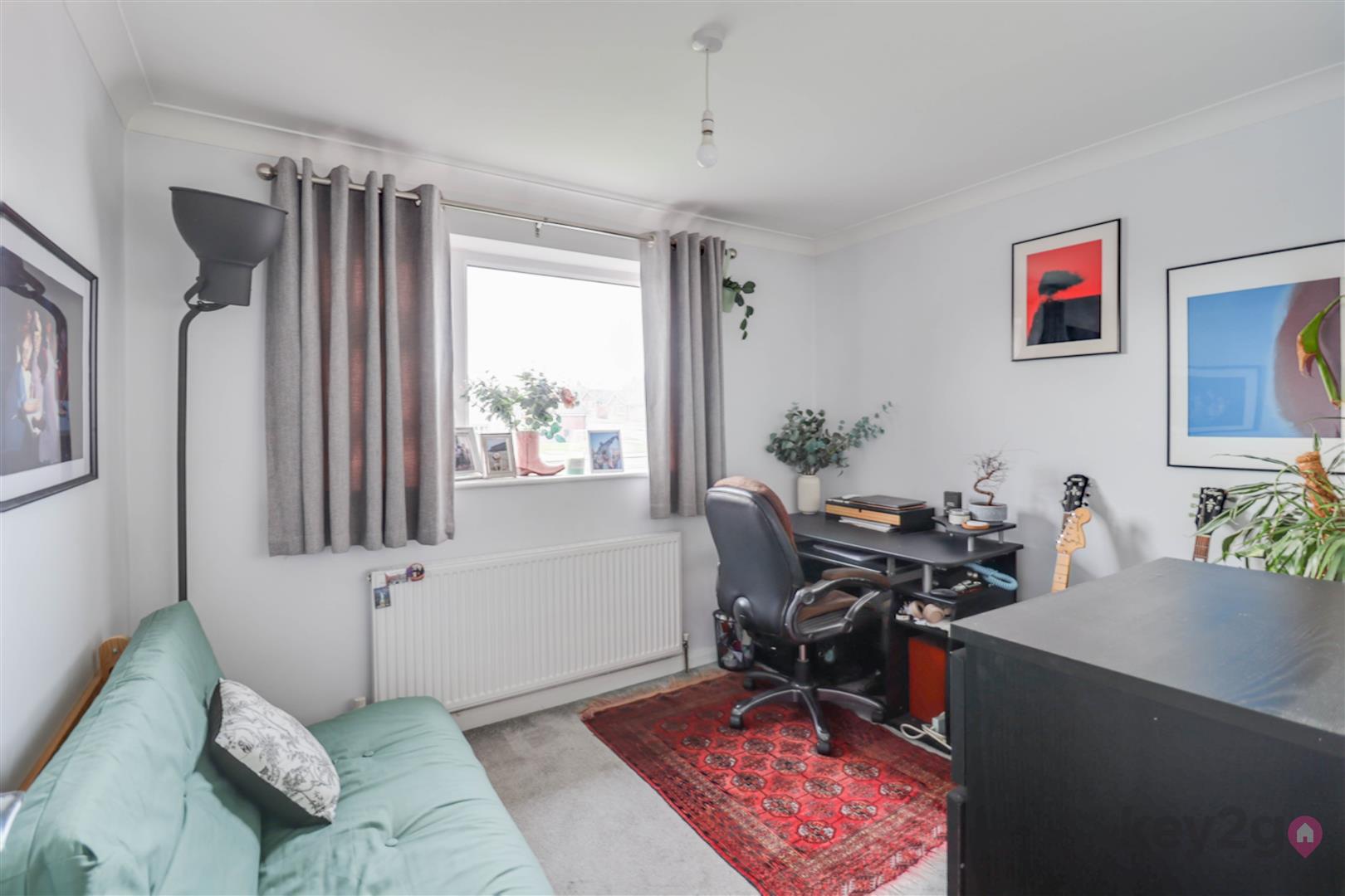 The front garden has a path, a lawned area, low maintenance features, and is well presented. There is also a communal car park with one allocated parking space.