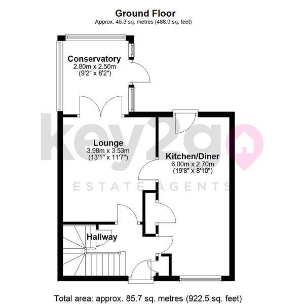 A welcoming hallway with newly fitted flooring includes two storage cupboards, with stairs rising to the first floor and doors to the kitchen/diner and lounge. The spacious kitchen/diner benefits from a further storage cupboard and access to both the lounge and rear garden. The lounge leads into the conservatory, which also opens out onto the garden, creating a bright and versatile living space.
