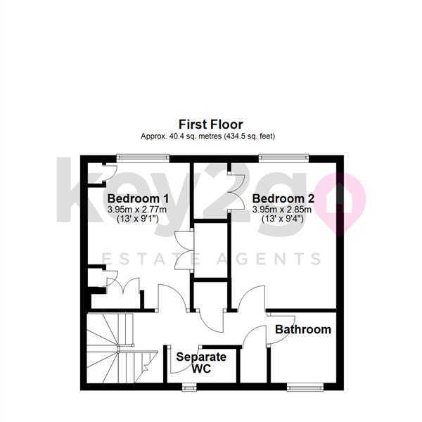 A stairway rises to the landing, giving access to two large double bedrooms, both with built-in storage cupboards, along with a separate WC and shower room.