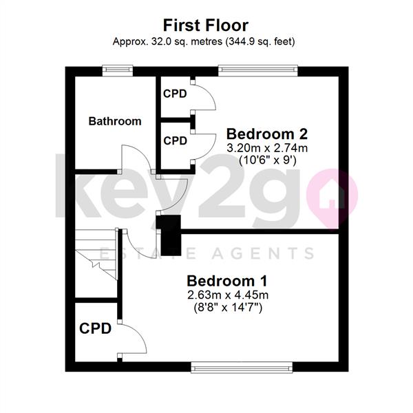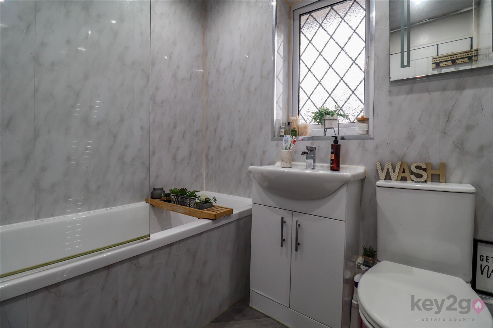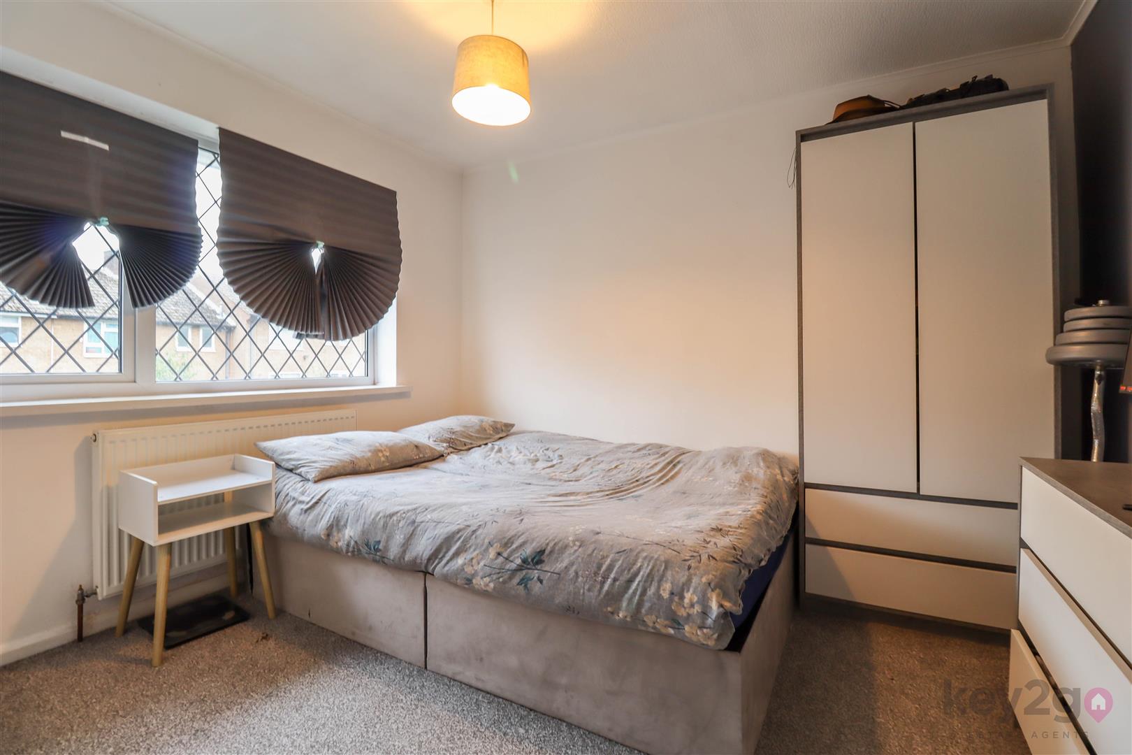 Landing with access to a large master bedroom featuring over-stairs storage. Second double bedroom to the rear of the house with a boiler cupboard and additional storage cupboard. Newly fitted bathroom with bath and overhead shower, vanity unit with wash basin, and close-coupled WC.