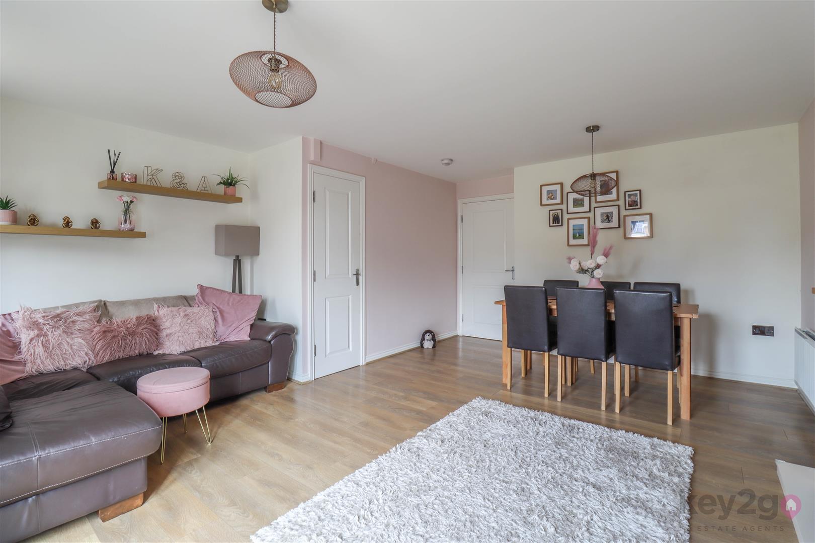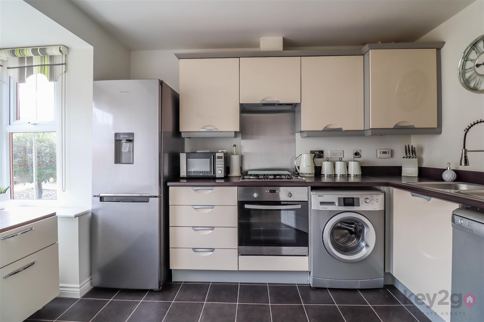 Enter into the hallway with doors to the downstairs WC, lounge/diner and breakfast kitchen which has an oven, hob and extractor, sink with a drainer and mixer tap and space for a full height fridge freezer and washing machine.