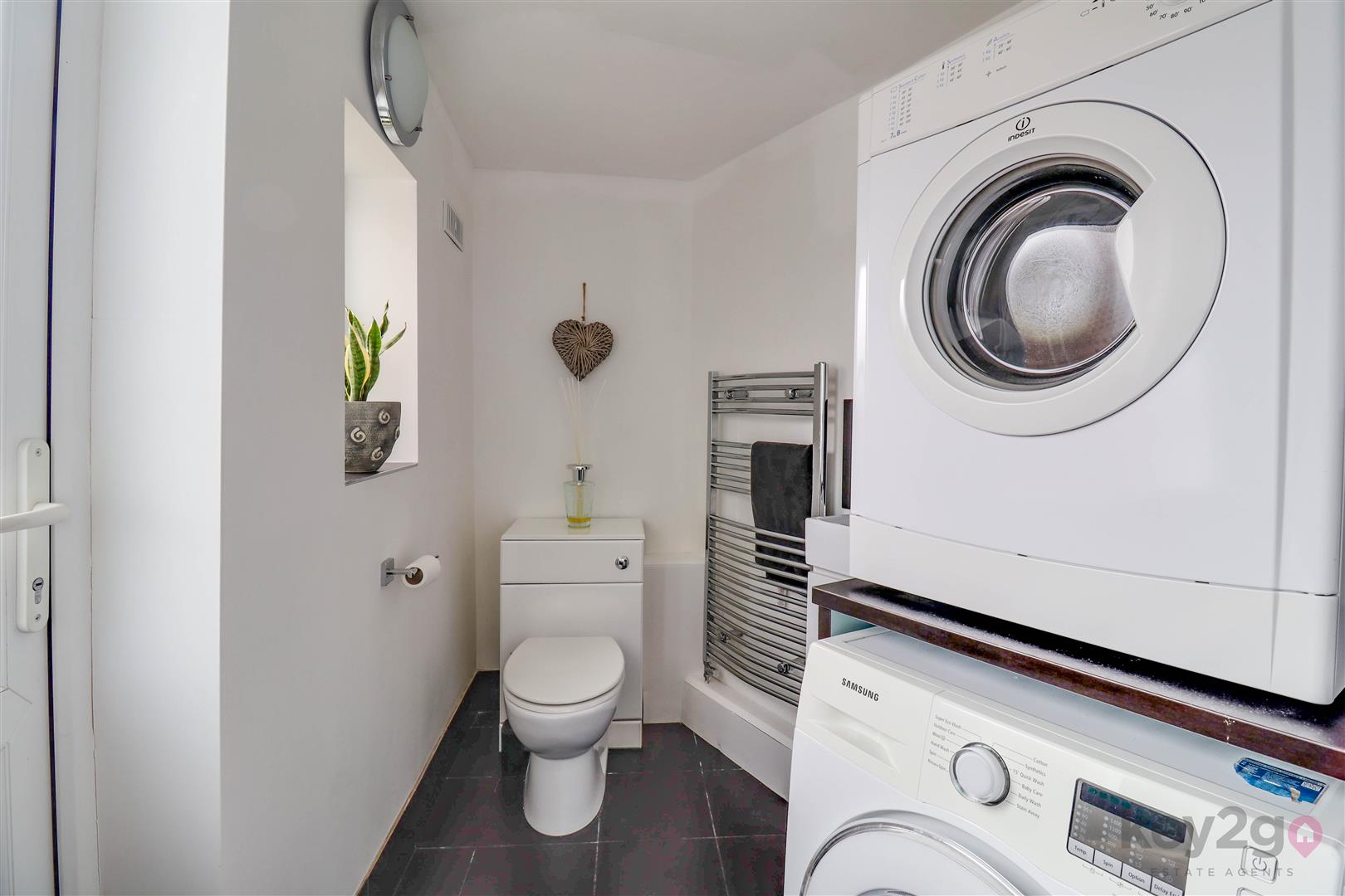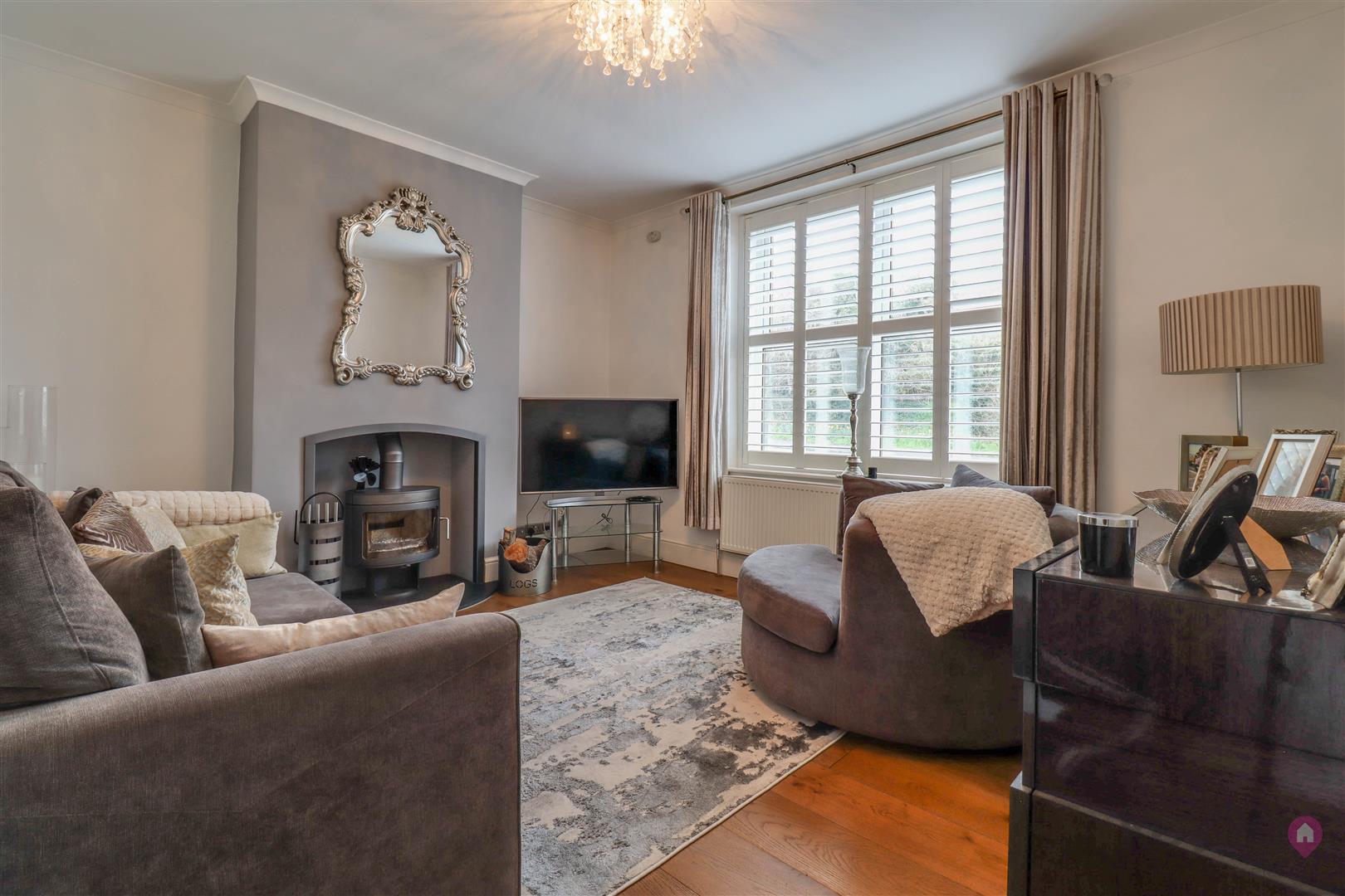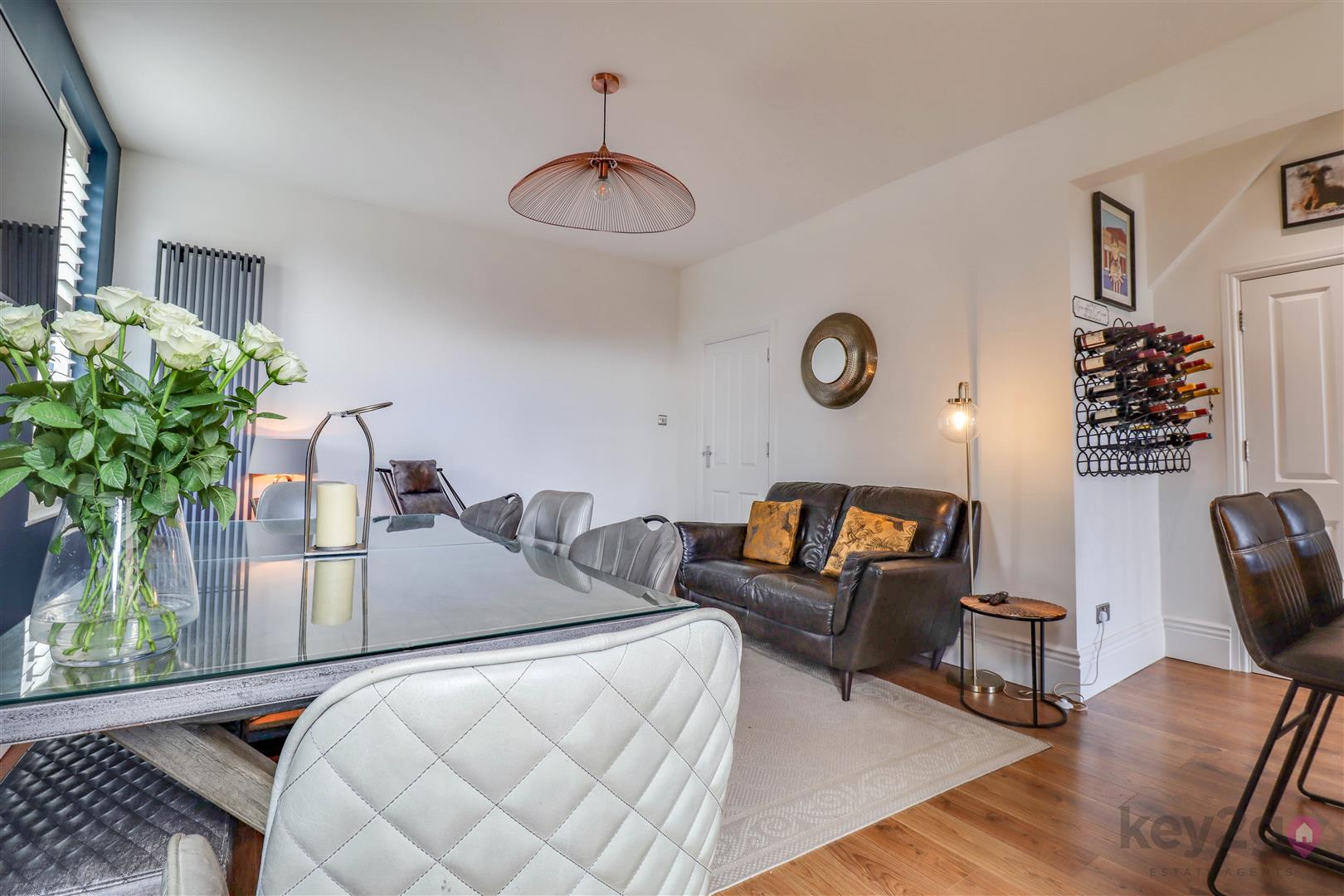 Entrance is via a composite door into a welcoming hallway, boasting in character with a range of original features. A door leads through to the lounge with solid oak flooring, a warm and inviting space featuring a log burner and a window fitted with stylish shutter blinds. To the rear, the property opens into a stunning open-plan kitchen/diner, thoughtfully designed to blend modern style with period charm. The space has a unique combination of laminate and original 1900s stone flooring, adding both character and practicality. Patio doors lead out to a small decked area, while a second set of patio doors opens onto the rear garden. Additional doors from the kitchen provide access to the cellar, as well as a useful utility space and a convenient downstairs WC.