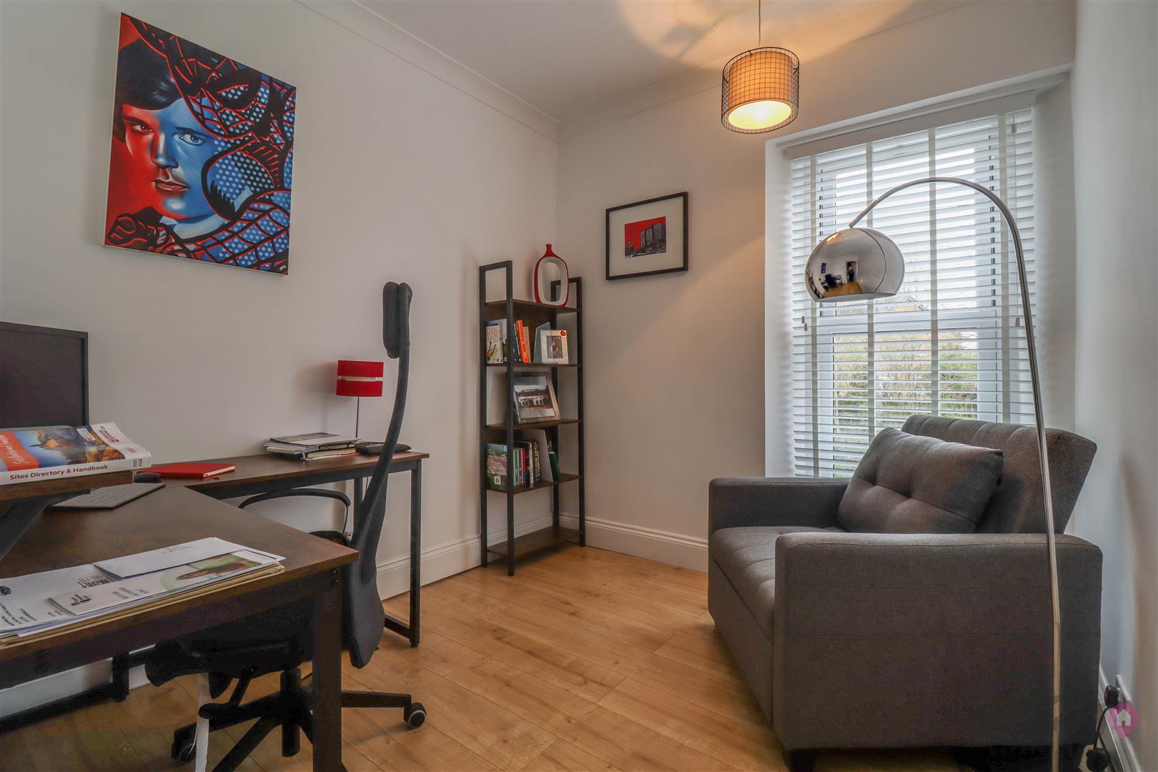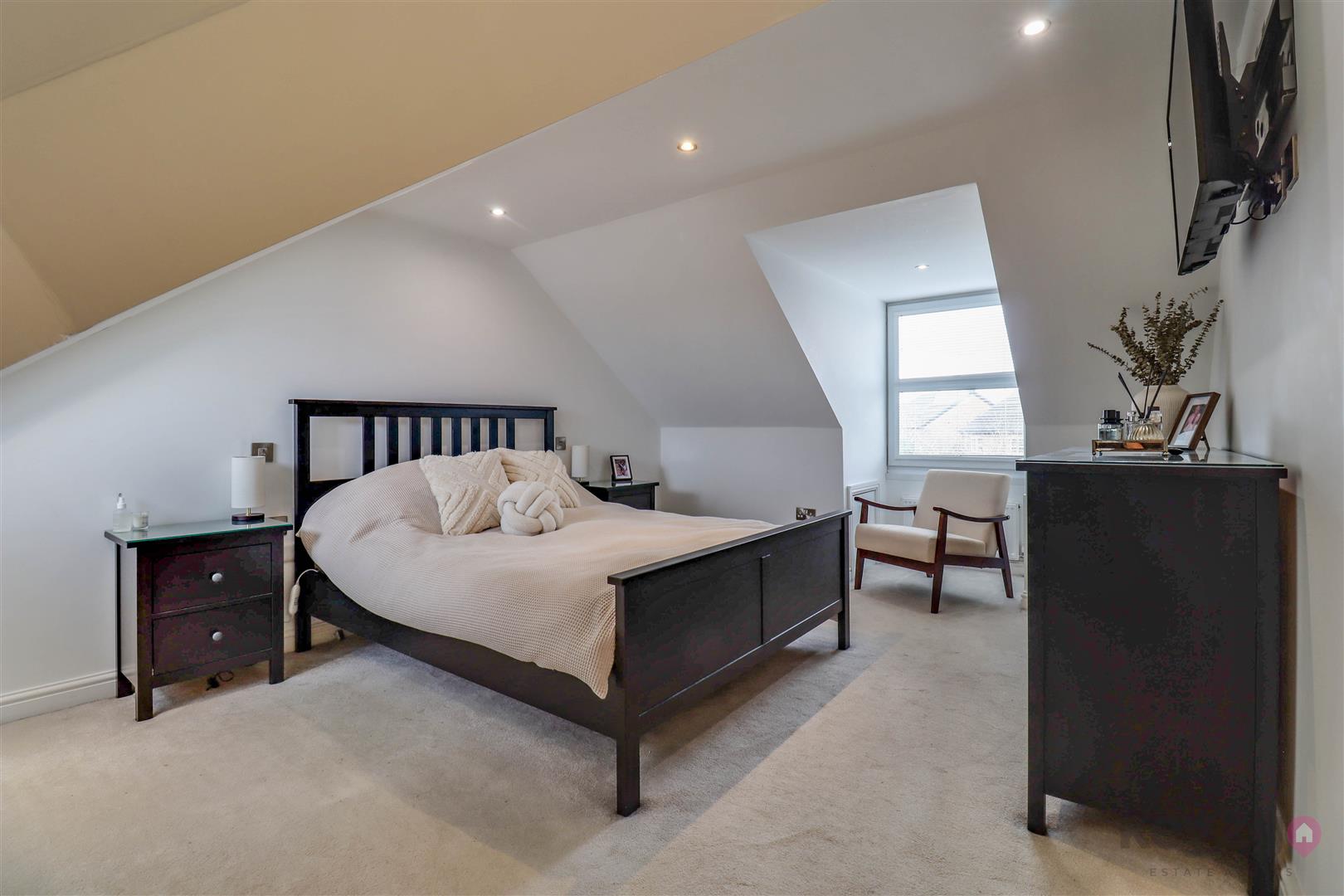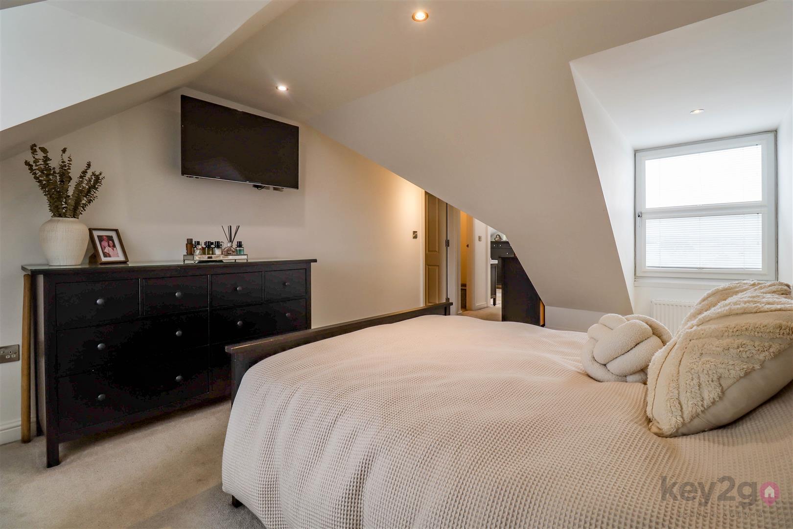A further staircase leads to the second floor, where there is a small bedroom, currently utilised as a walk-in wardrobe, and an impressive principal suite. This superb space enjoys a generous en-suite bathroom and a dedicated dressing room, creating a luxurious and private retreat.
