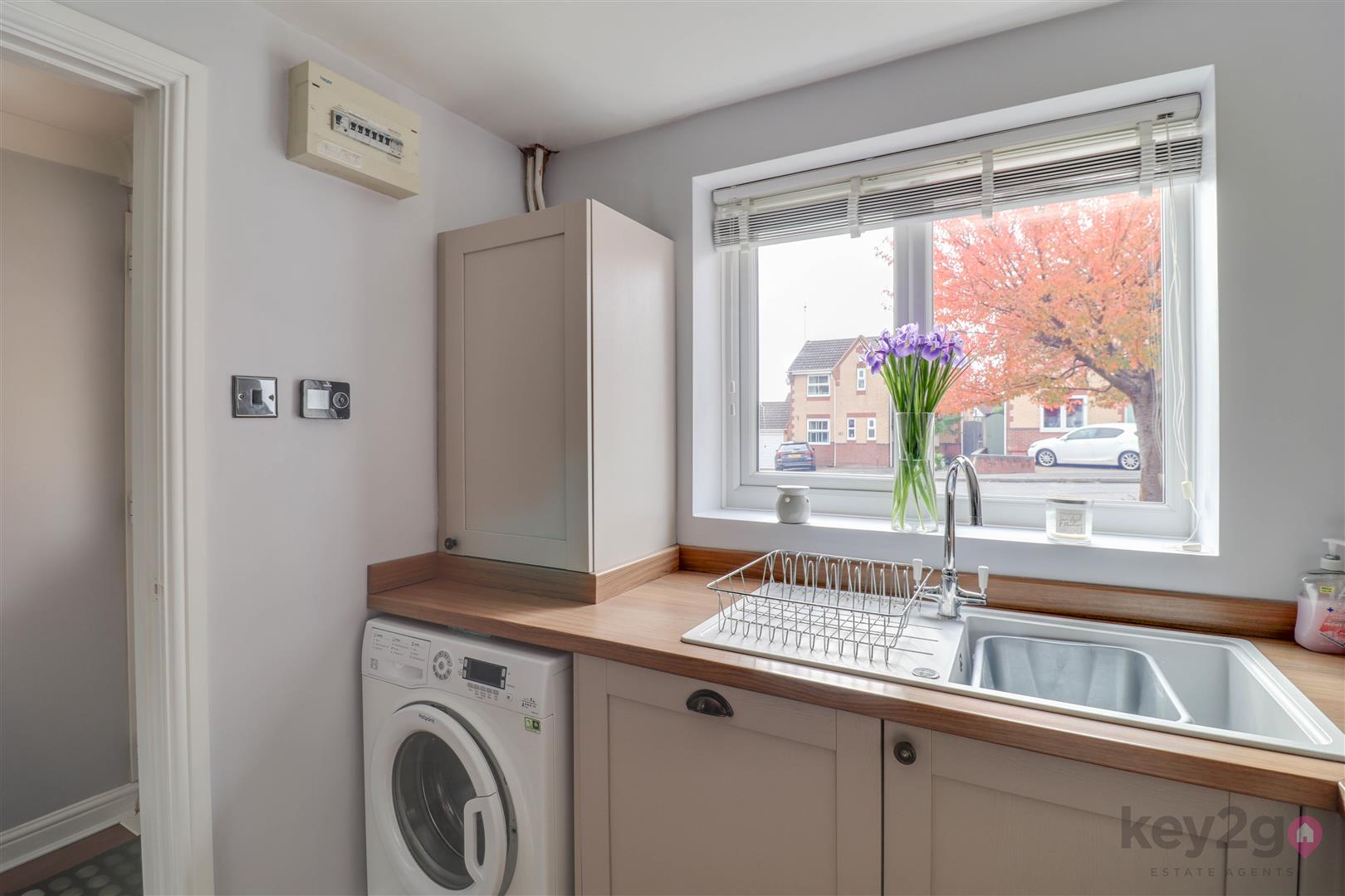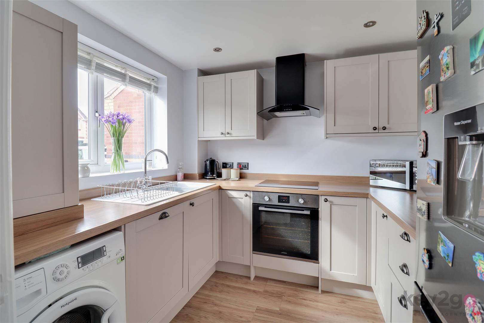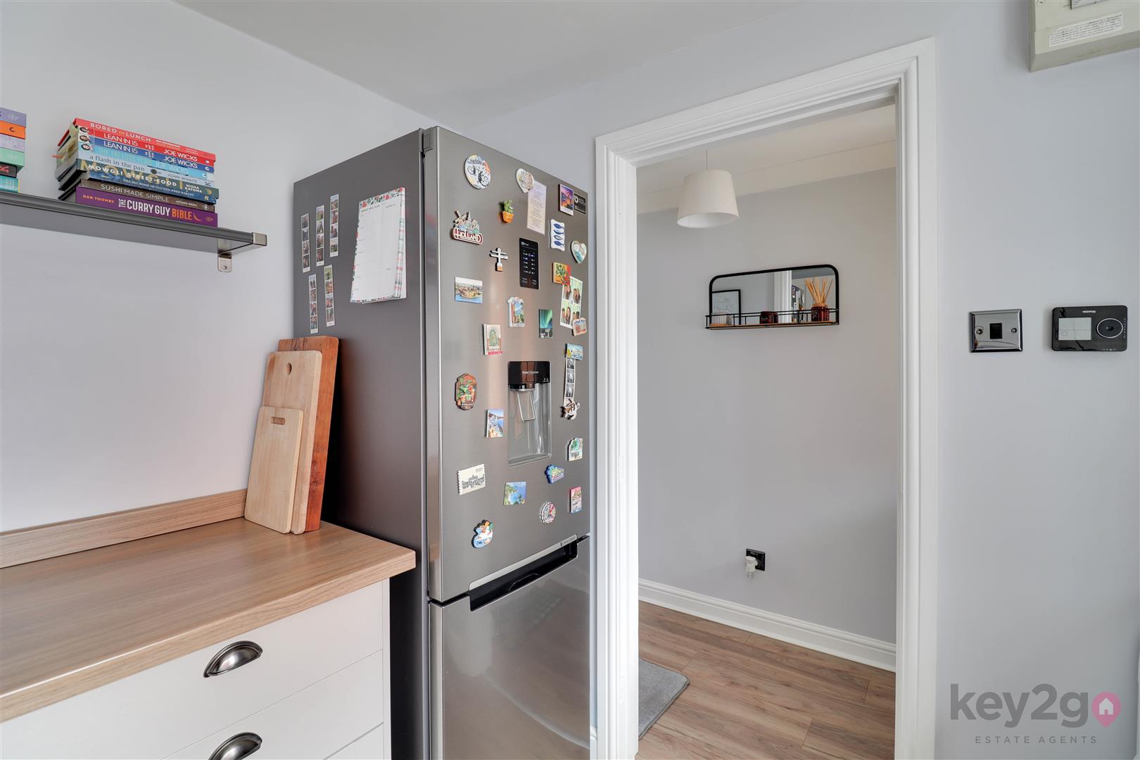 Enter through a uPVC door into a welcoming hallway, finished with painted walls and laminate flooring. The modern and stylish kitchen is fitted with ample wall and base units, contrasting worktops, integrated oven, electric hob, extractor fan, and dishwasher, with space for a tall fridge/freezer and washing machine. A sink sits beneath a front-facing window, and the room is completed with laminate flooring. To the rear, the large lounge is bright, open, and spacious, featuring modern décor, carpet flooring, an open staircase, and a uPVC door leading out to the rear garden.