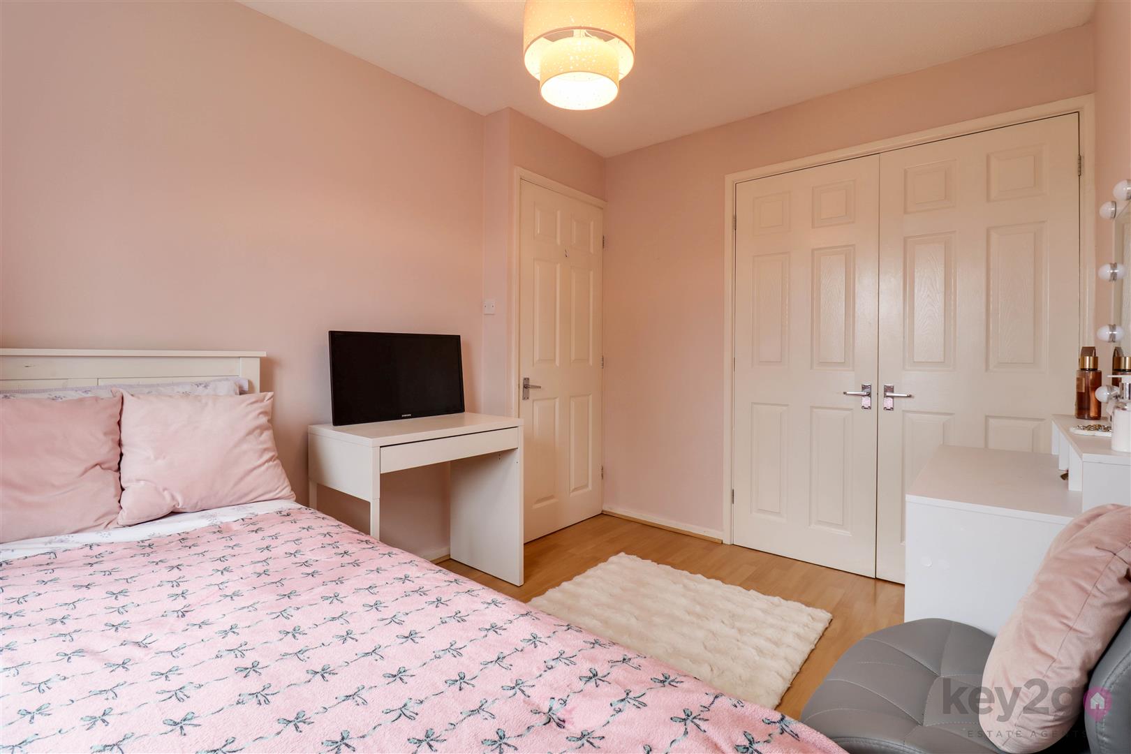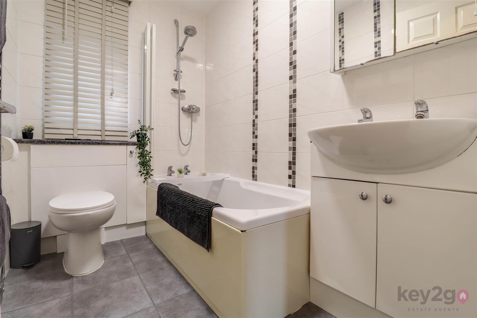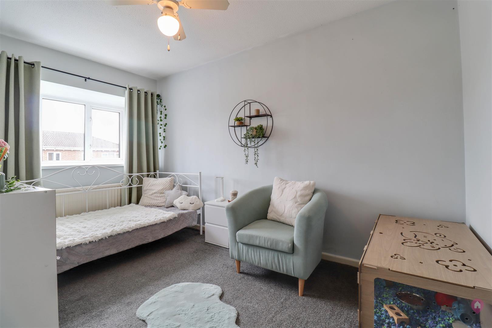 The rear garden has been thoughtfully arranged to offer a low-maintenance outdoor space, featuring a patio area, alongside an artificial lawn. There is also a useful garden shed, with mature shrubbery, hedging, and fencing to the boundaries, creating a pleasant and private setting.