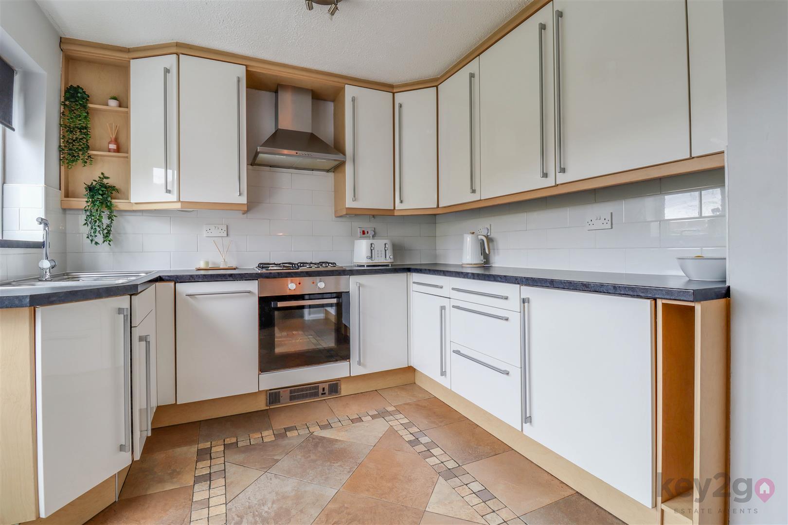 Entrance is via a welcoming hallway, with stairs rising to the first floor. A door leads through to the lounge, a bright and comfortable space featuring a walk-in bay window to the front aspect. From here, access is provided to the formal dining room, ideal for entertaining.