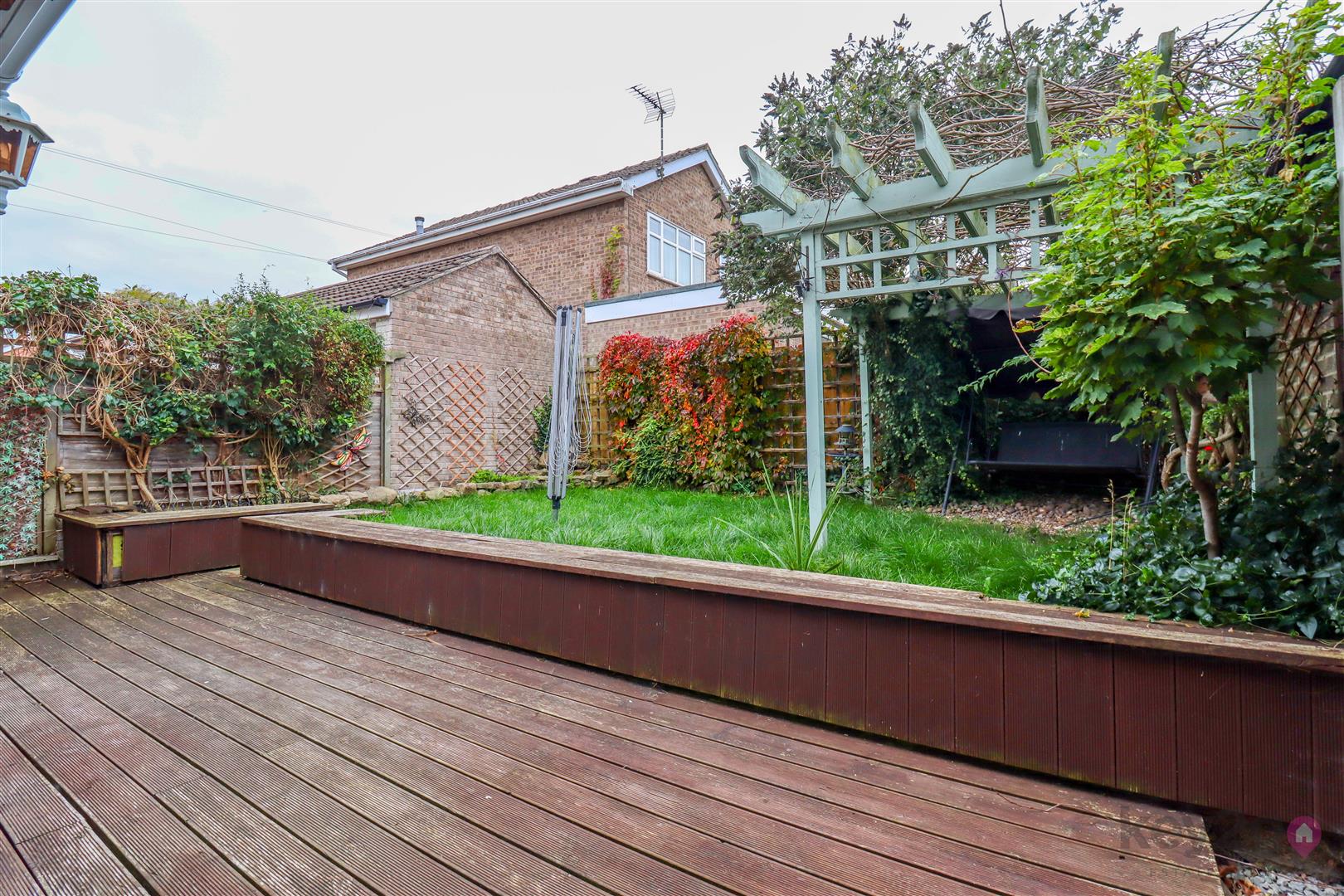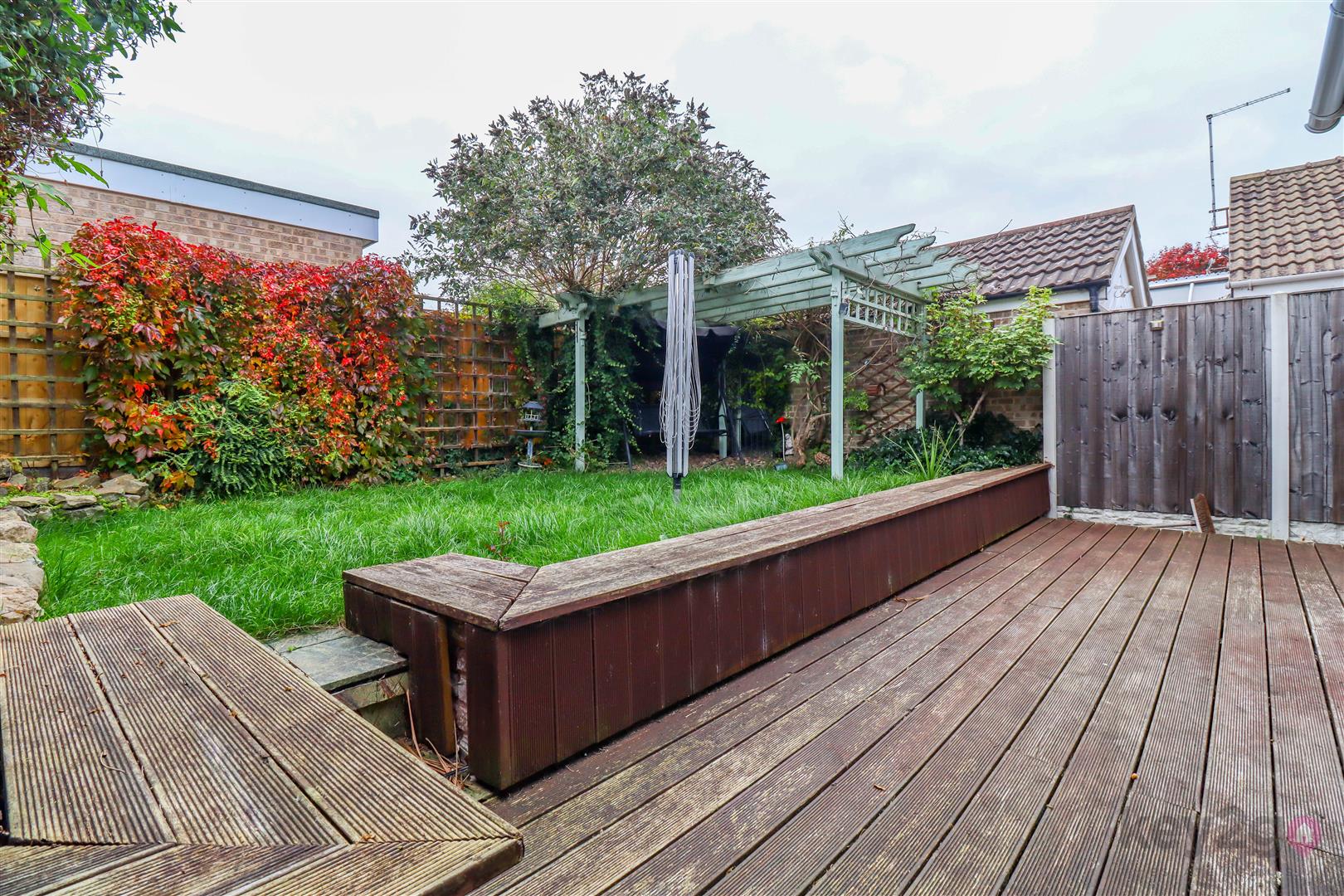 To the rear of the property is a enclosed garden with a decked area, lawn area and pebbled area. Plants and shrubbery.