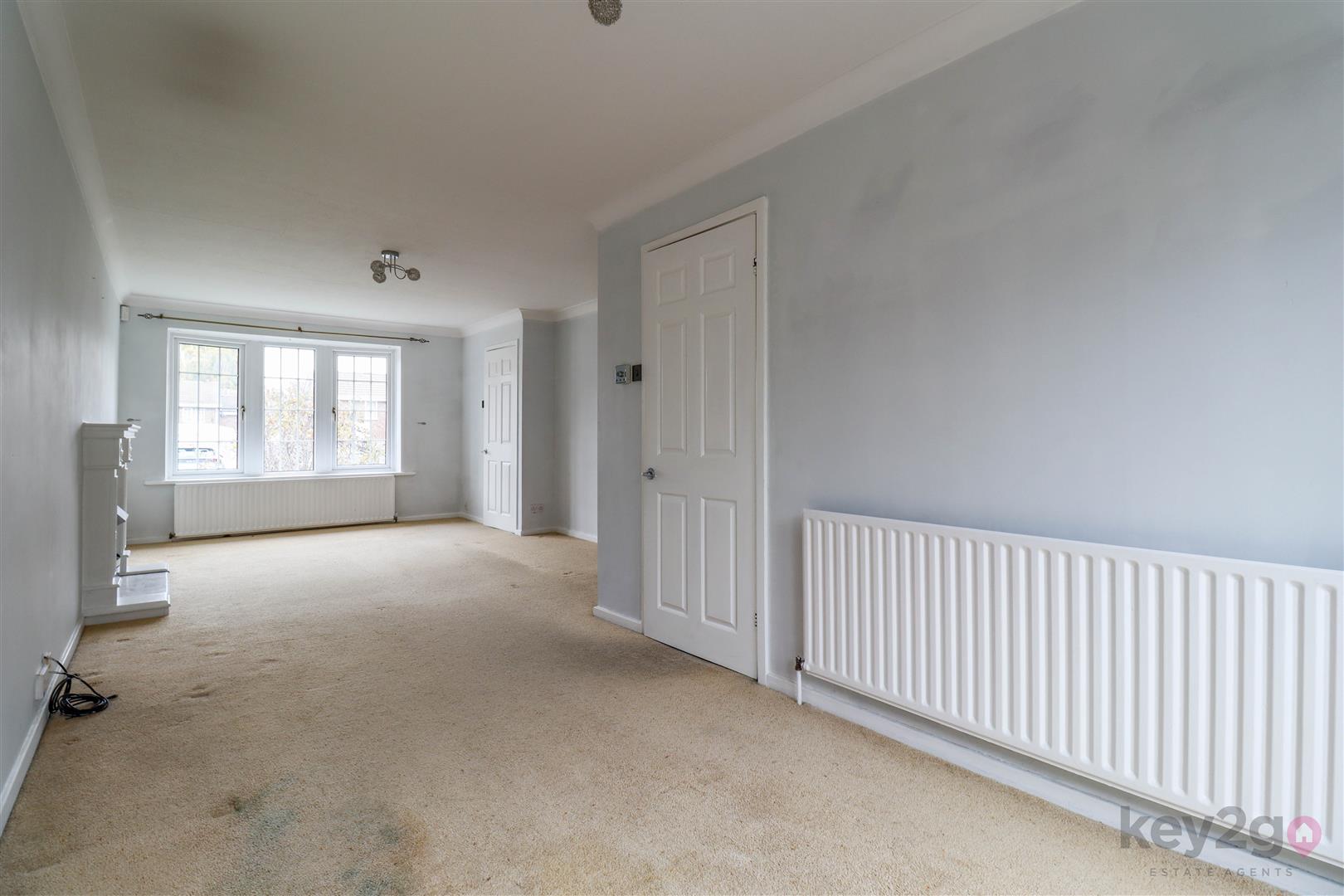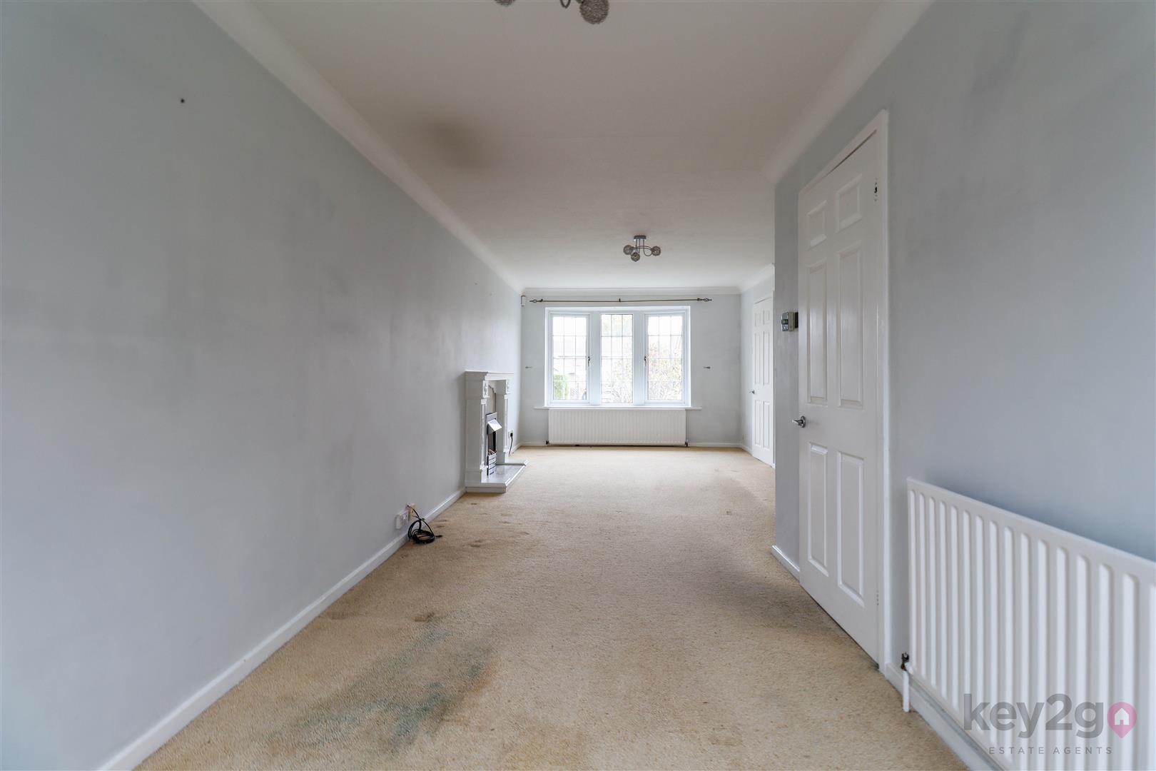 A generous sized reception room with painted walls, carpeted flooring and a fireplace. Two ceiling lights, radiator and window to the front. Double doors to the rear.