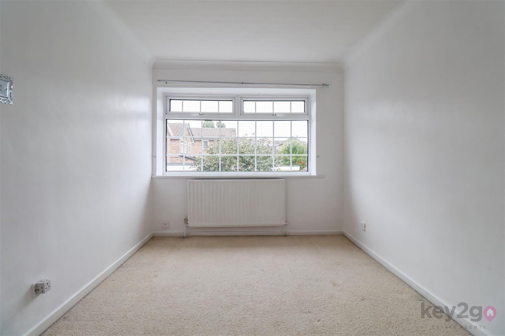 A second double bedroom with carpeted flooring and painted walls. Ceiling light, radiator and window.