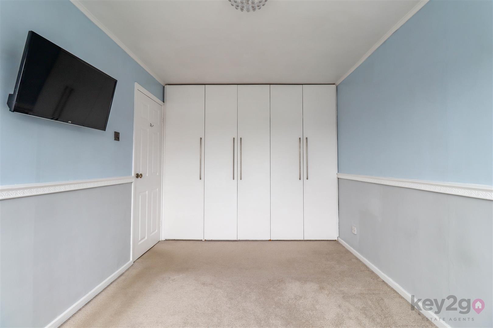 A double bedroom with carpeted flooring, painted walls and built in wardrobes. Ceiling light, radiator and window.