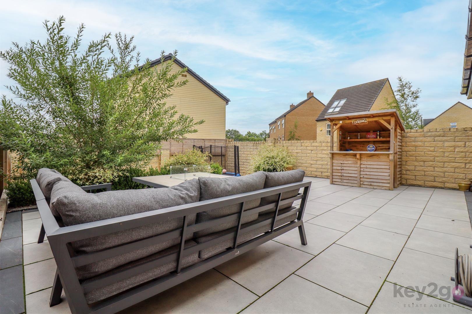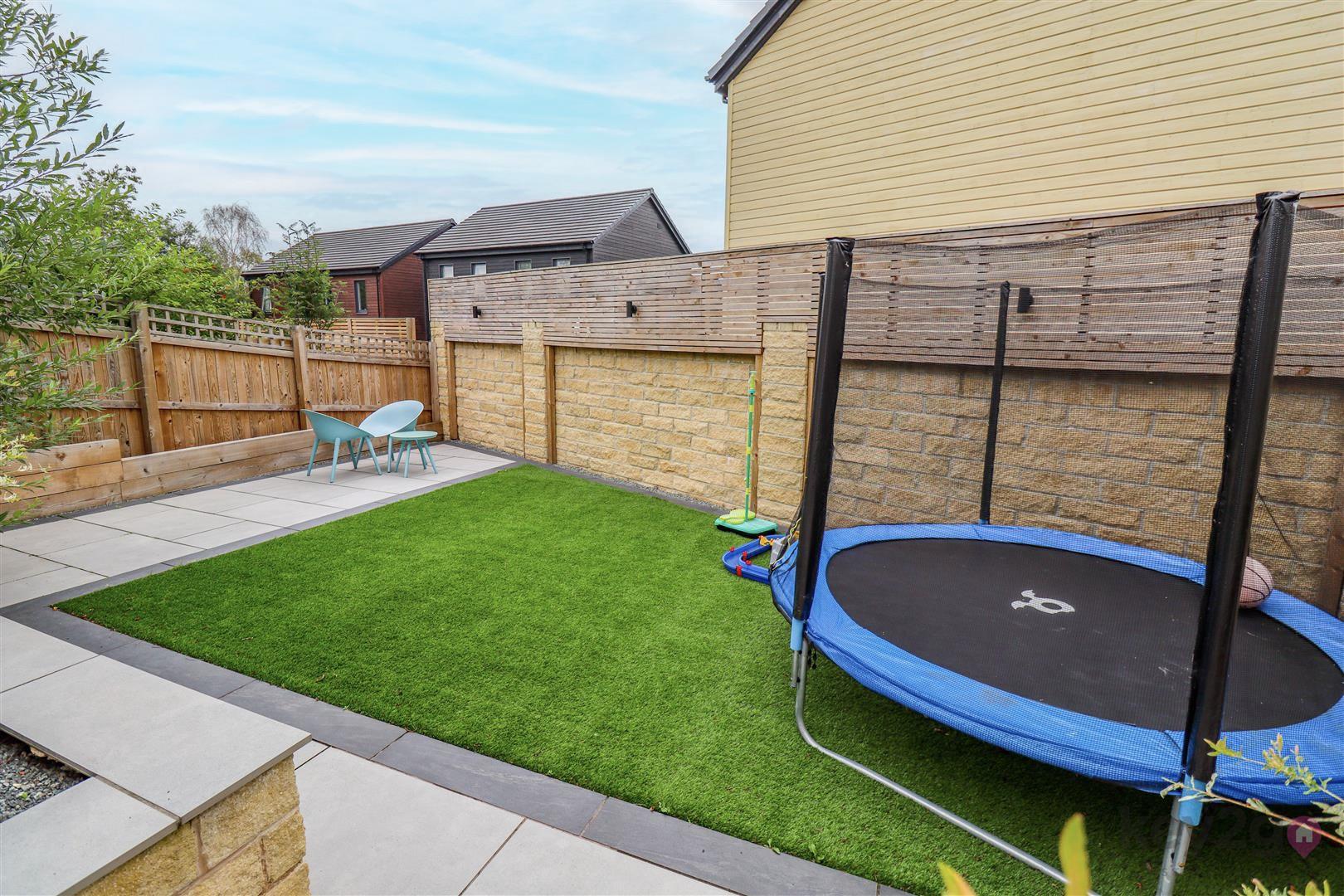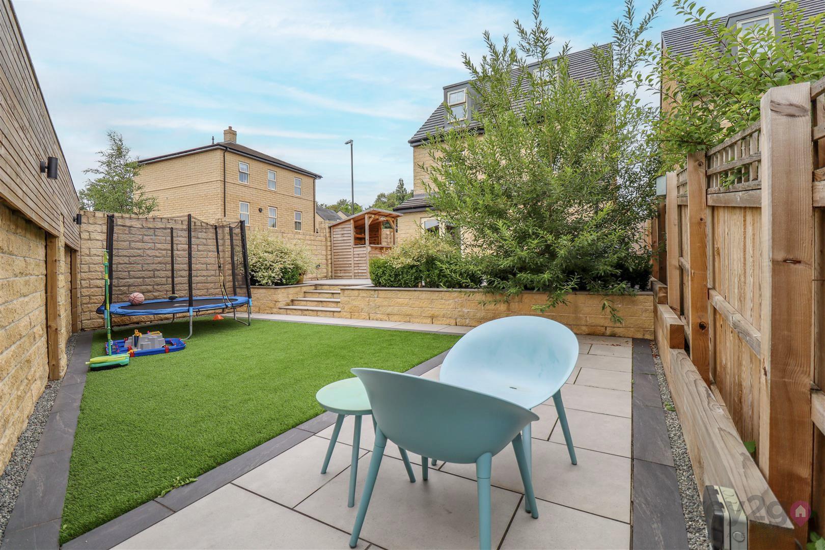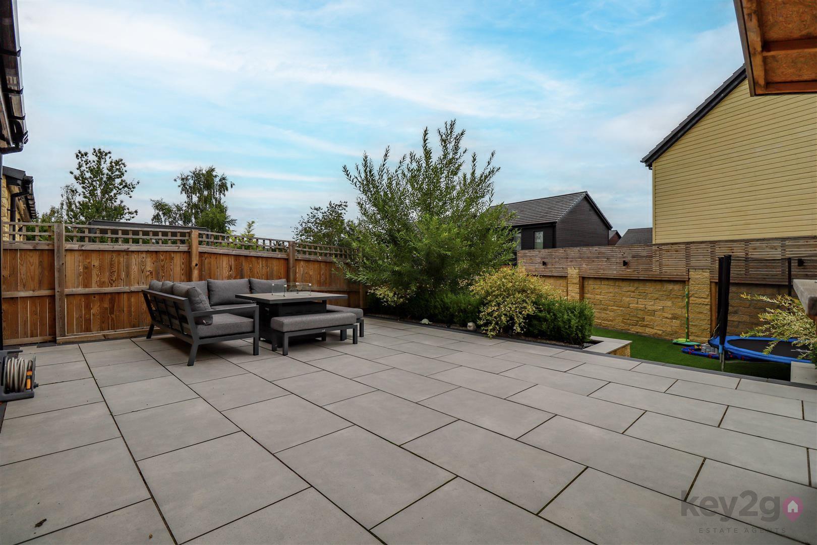 To the front of the property is a double driveway and access to the garage. The rear of the property is landscaped and has a large patio with steps descending to the astroturf area and shrubbery.