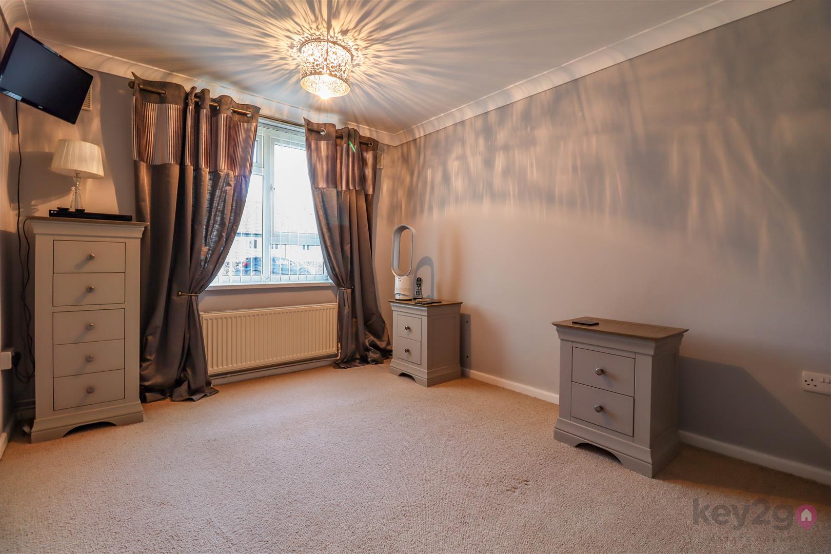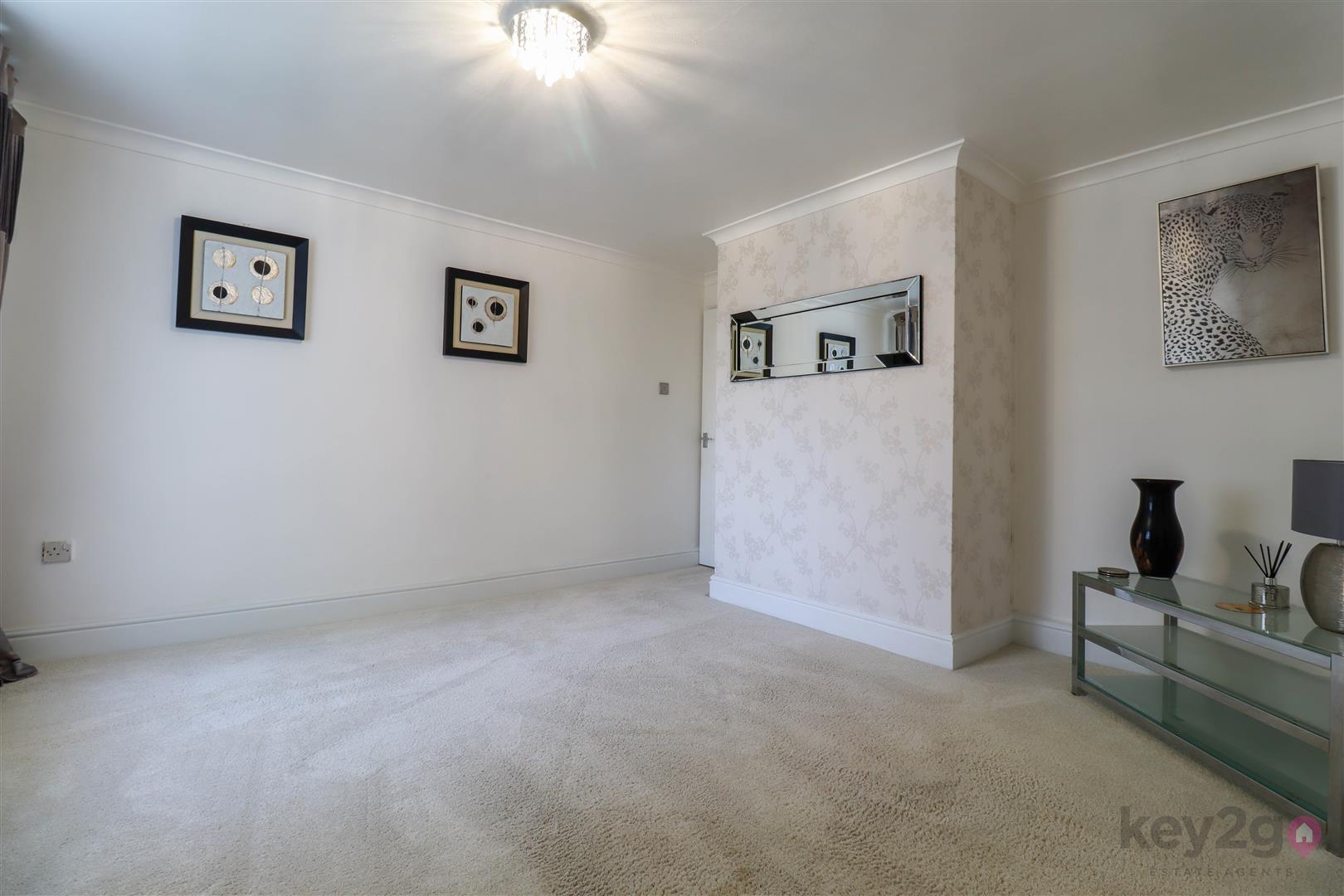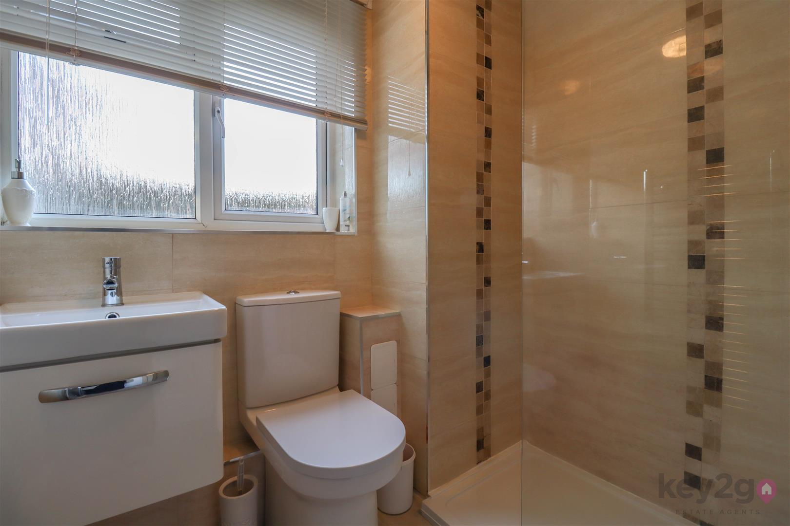 The property benefits from a secure intercom door system and external storage located outside the flat door. A composite door opens into the hallway, providing access to the bright living area with a window to the front and a stylish high-gloss kitchen fitted with an integrated oven, hob and extractor fan, along with an integrated fridge and freezer. There is space for a freestanding washing machine and a cupboard housing the boiler, along with a double bedroom and a stylish bathroom.