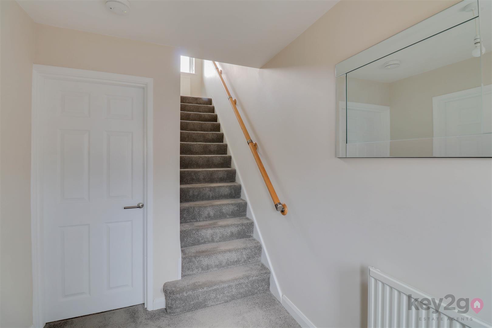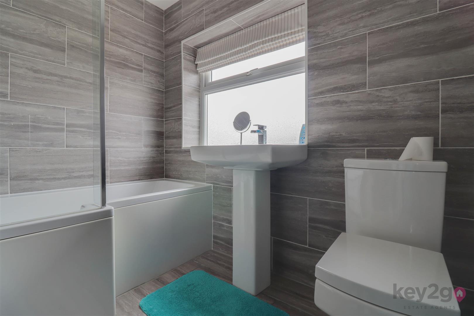 Stairs rise to the first floor, where a spacious and bright landing provides access to a useful storage cupboard, two double bedrooms and the bathroom. Bedroom one is a good-sized double bedroom and benefits from a storage cupboard, while bedroom two is a further double bedroom, also featuring its own storage cupboard. The modern bathroom is fitted with a bath, wash basin and WC.