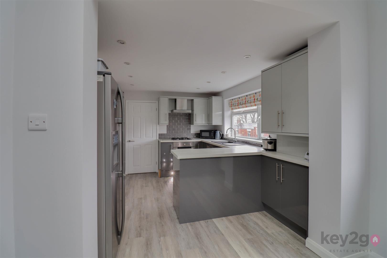 Enter into the spacious and welcoming hallway, which provides the stair rise to the first floor and access to both the kitchen/diner and lounge. The extended kitchen/diner is well appointed with ample wall and base units, space for an American-style fridge/freezer, an oven, hob and extractor fan, along with a useful utility area offering space for a washing machine and tumble dryer. A door leads to the downstairs WC, comprising a wash basin and WC. The lounge is bright and generously sized, featuring a stylish hole-in-the-wall feature and a large front-facing window.