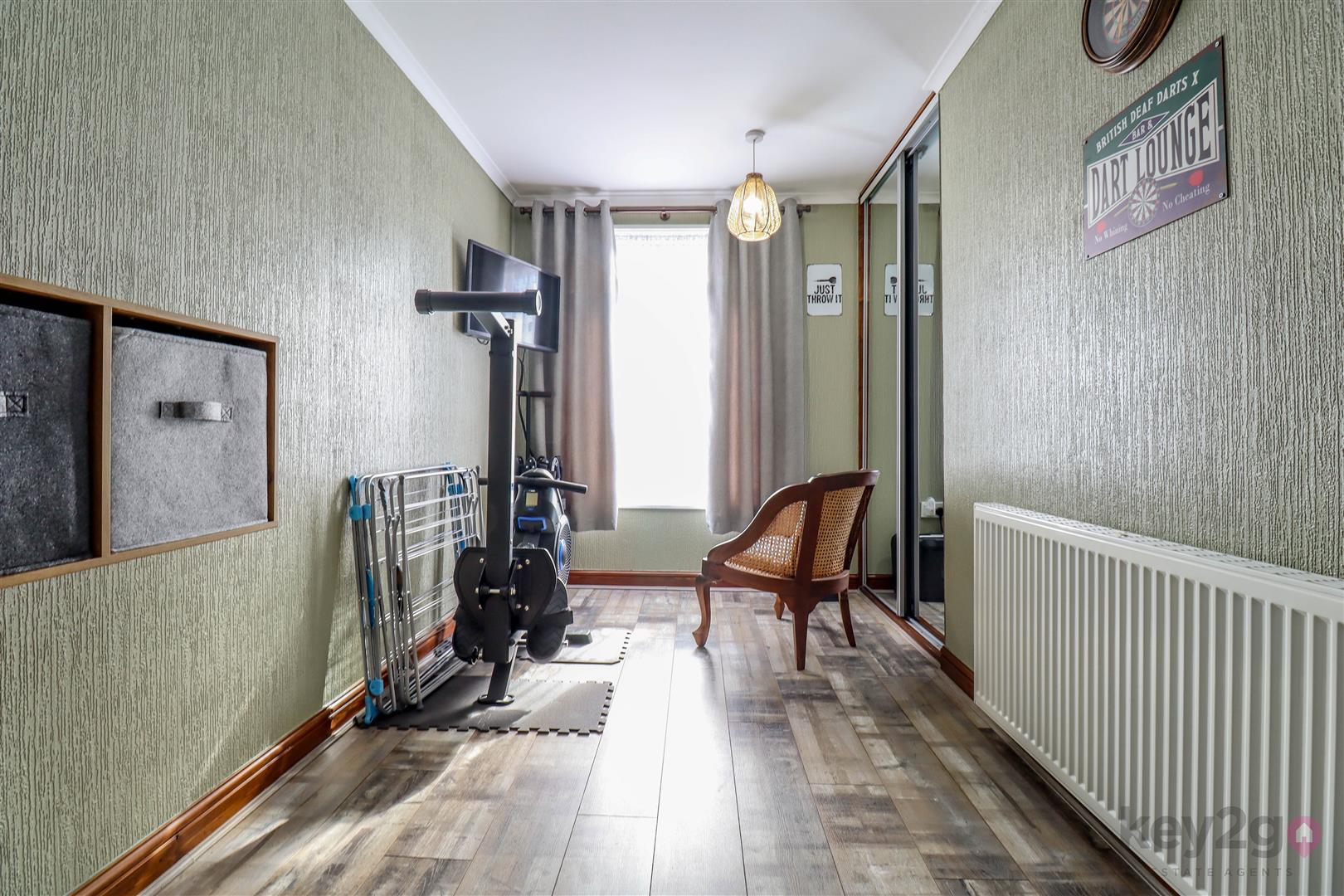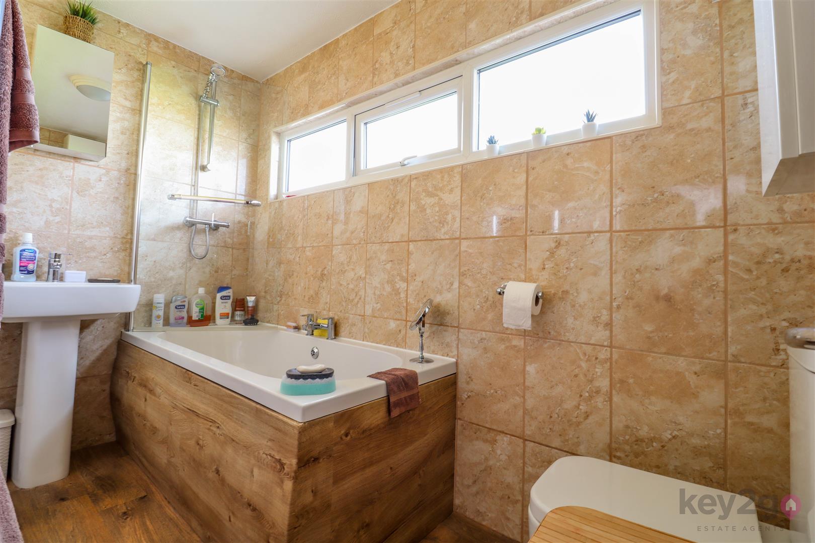 Stairs rise to the first floor, where there are two good-sized double bedrooms with built-in wardrobes and a single bedroom. The bathroom is positioned to the front.