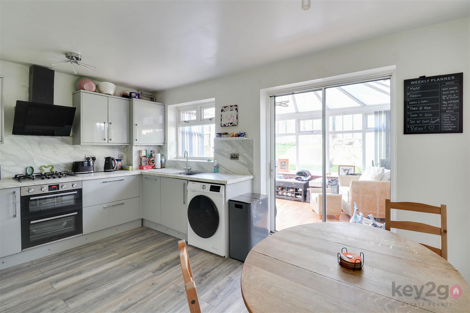UPVC door to hallway, welcoming with stairs to the first floor. The lounge is spacious with a bay window, laminate flooring, and neutral décor with a feature back wall, leading to the kitchen. The kitchen/diner is open plan, modern, and stylish with ample wall and base units, contrasting worktops, integrated oven, gas hob, extractor, space for a large fridge freezer and washing machine, space for dining, laminate flooring, window, and sliding doors to the conservatory. The conservatory is spacious and bright with laminate flooring and UPVC double doors leading to the rear garden.