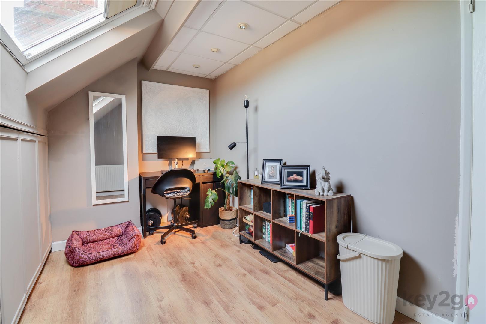 Stairs rise to the second floor which features a third bedroom which is currently used as an office, which benefits from a velux-style window. Completing the accommodation is a modern bathroom featuring a storage cupboard, bath, WC and sink.