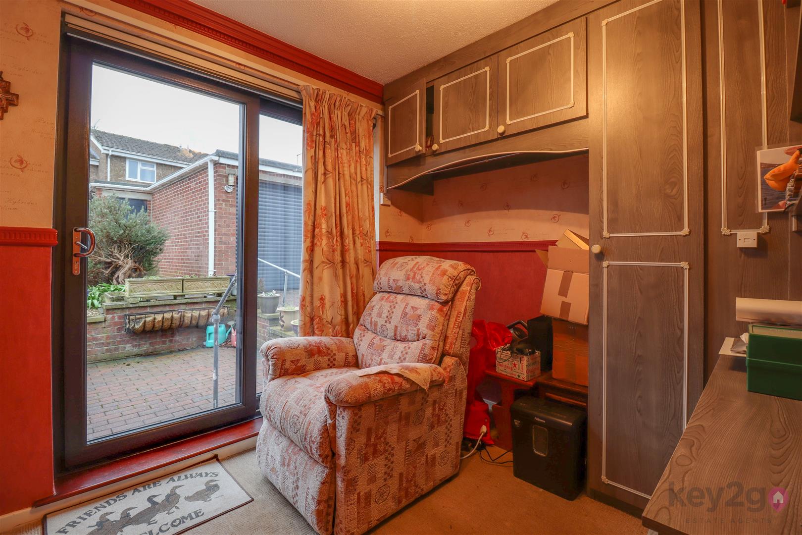 A side entrance leads into the hallway with a storage cupboard. The kitchen is positioned to the front and is fitted with ample wall and base units, integrated appliances and a cupboard housing the boiler. To the rear is a large lounge/diner with a front-facing window. There is a double bedroom to the rear with ample fitted wardrobes, a second bedroom currently used as an office, and a shower room fitted with a shower cubicle, wash basin and WC.