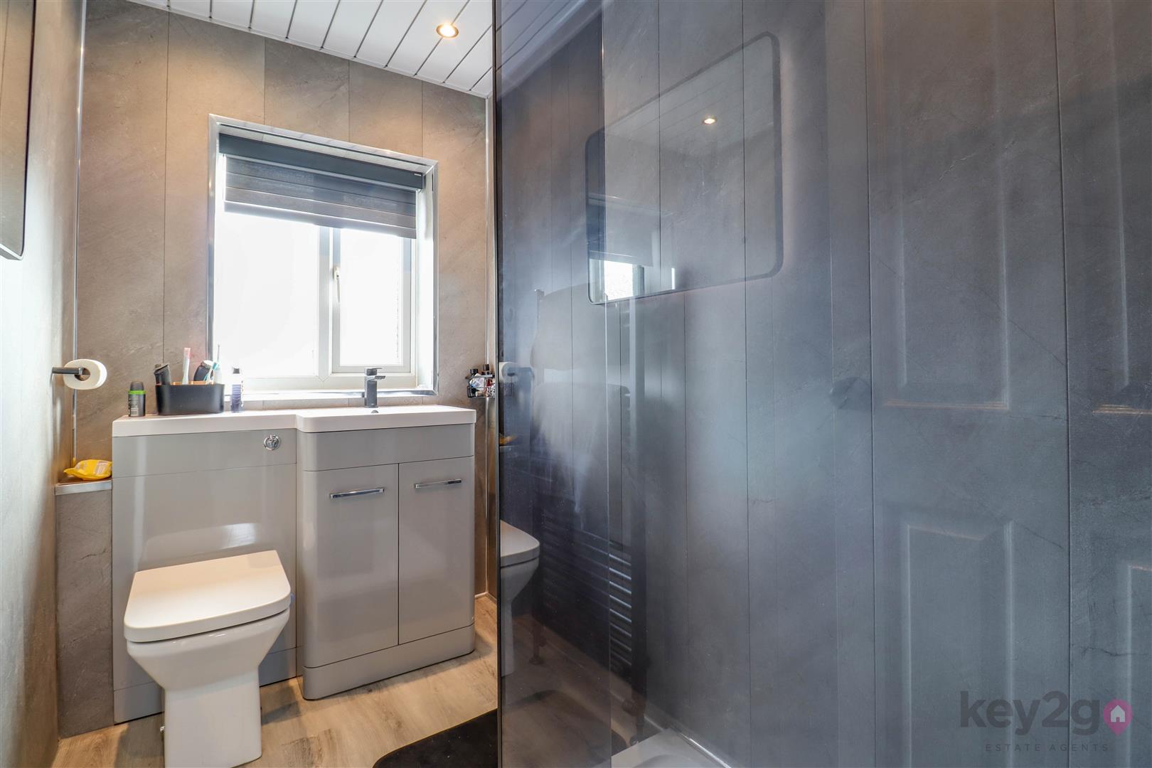 Stairs rise to the first-floor landing, providing access to a spacious double bedroom positioned to the rear and a well-proportioned single bedroom to the front. The accommodation is completed by a modern shower room, with additional access to the loft space for further storage which has power lighting and is part boarded.