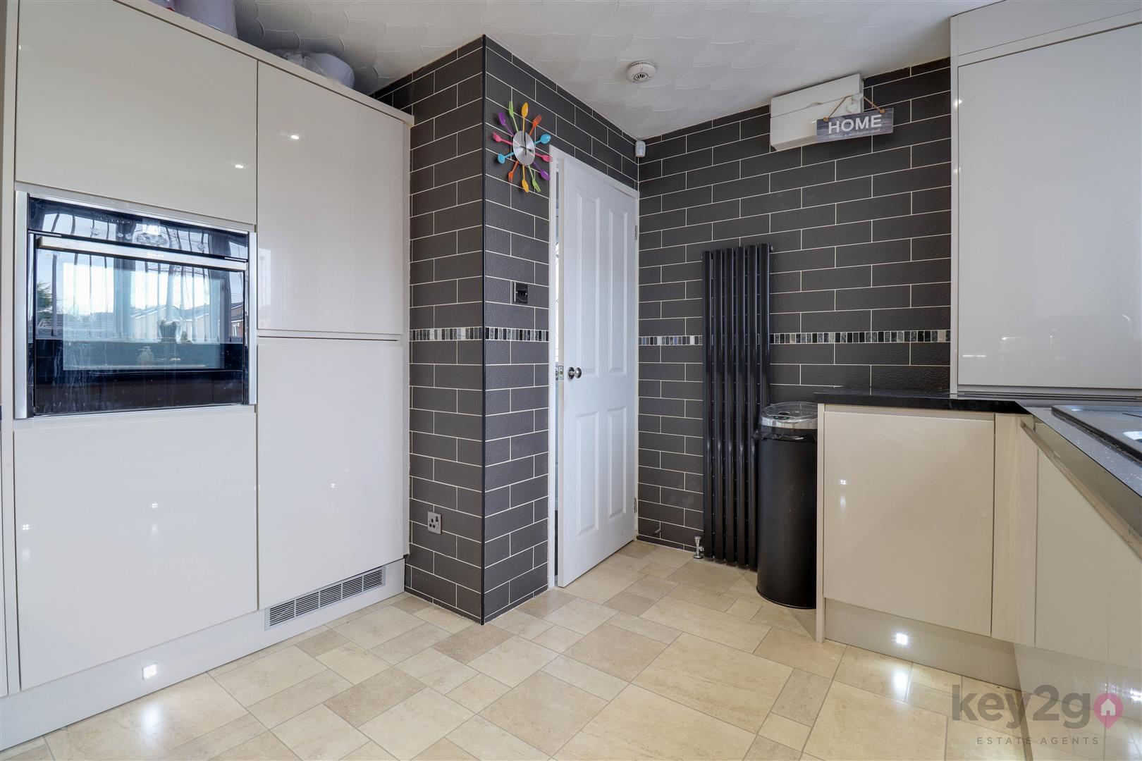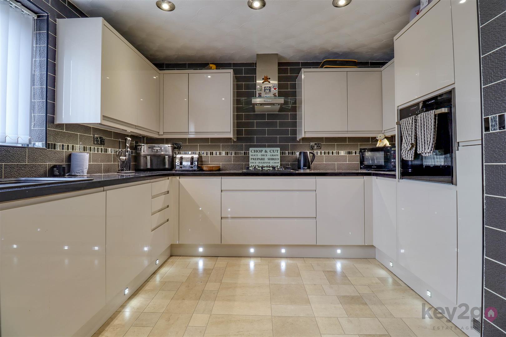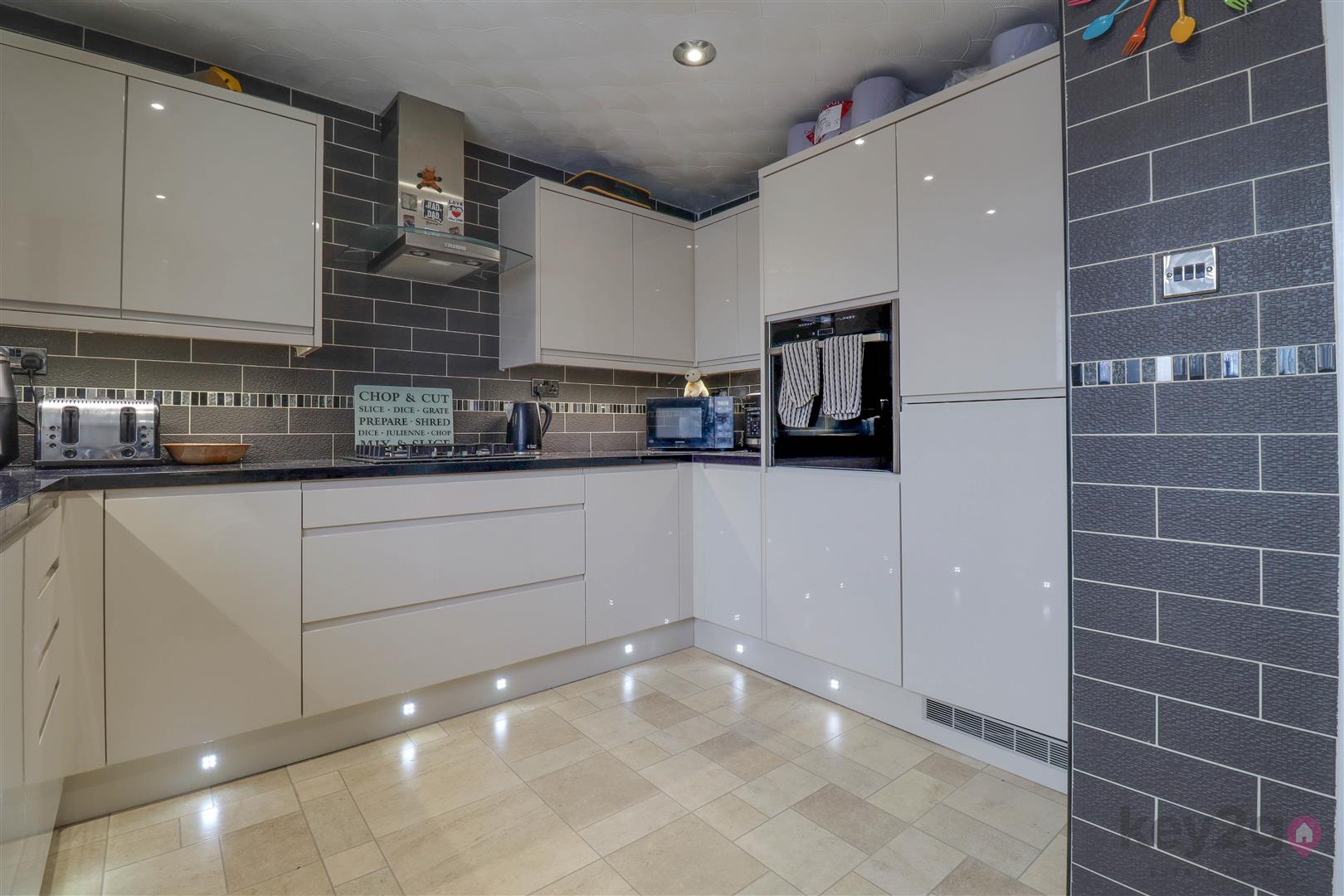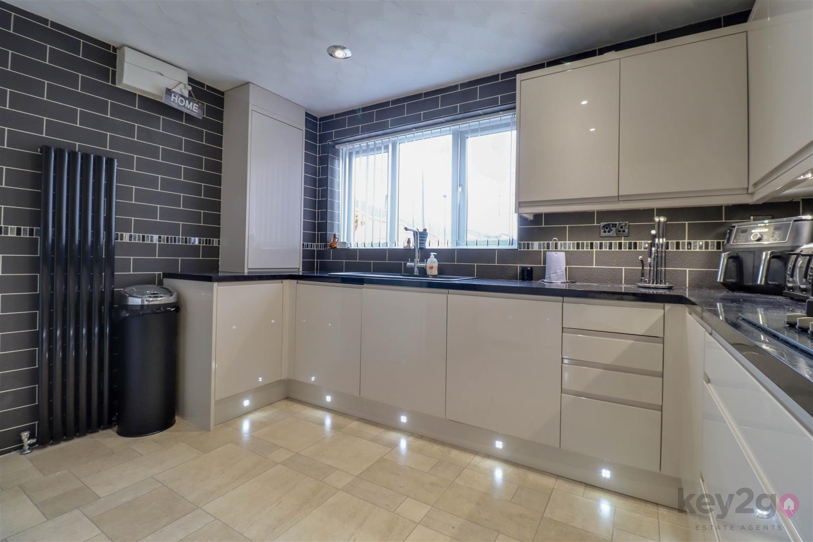 To the front of the property is the stylish kitchen, featuring a front-facing window and an excellent range of wall and base units, providing ample storage and workspace.