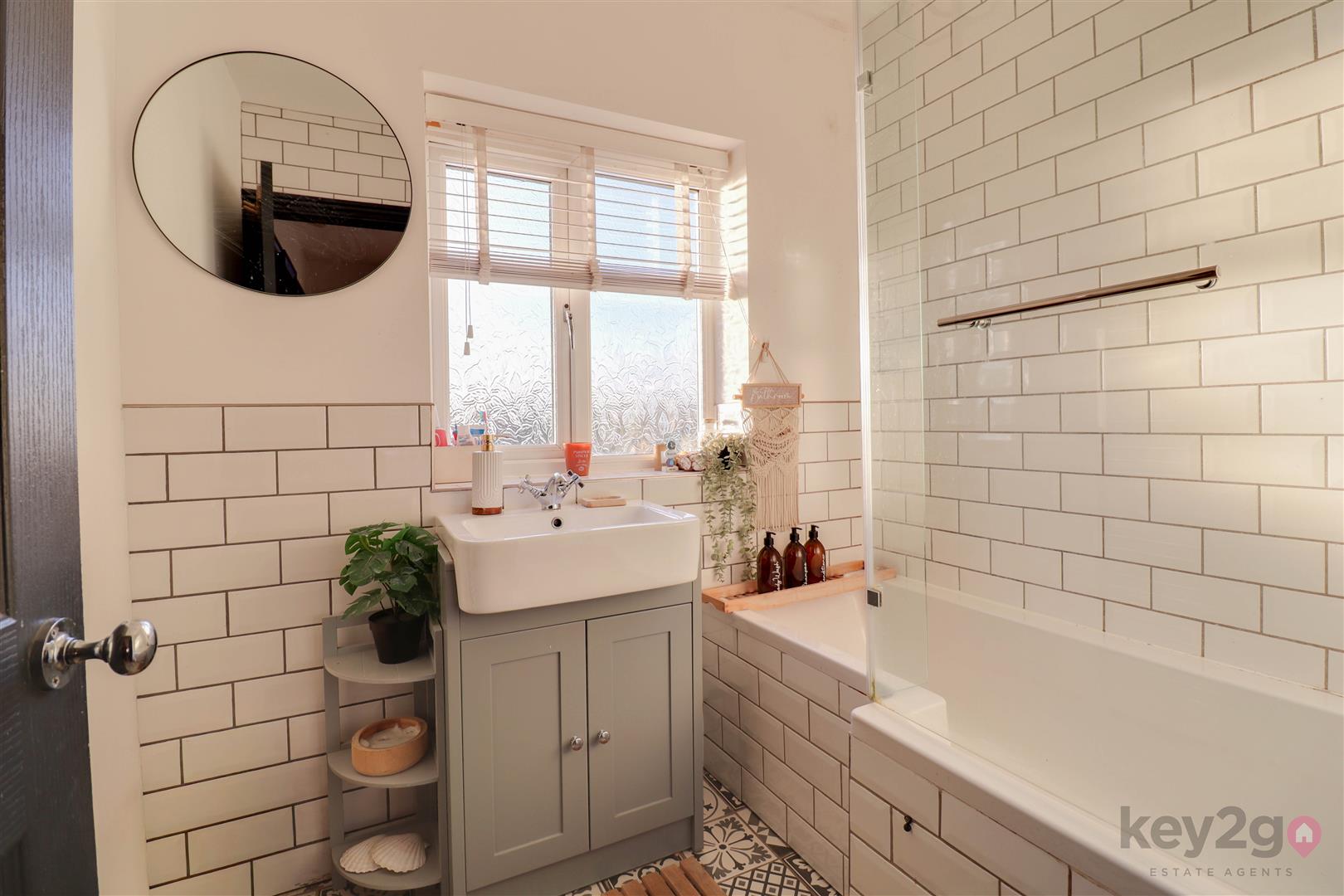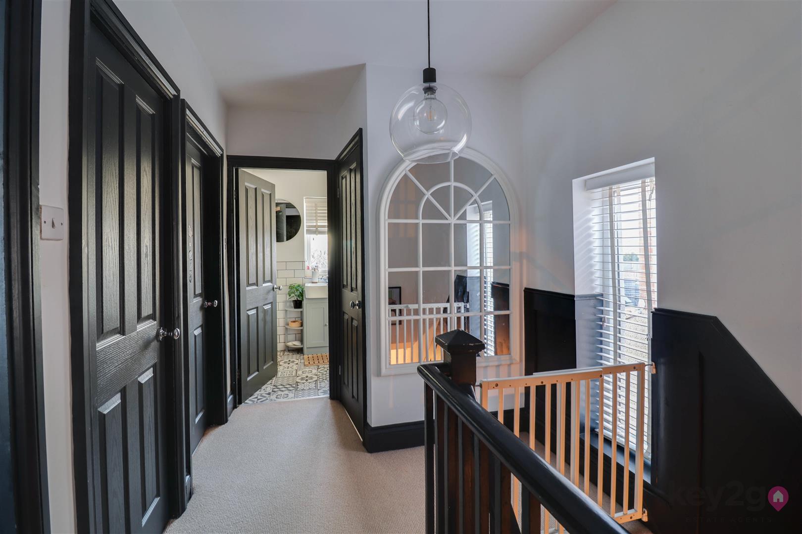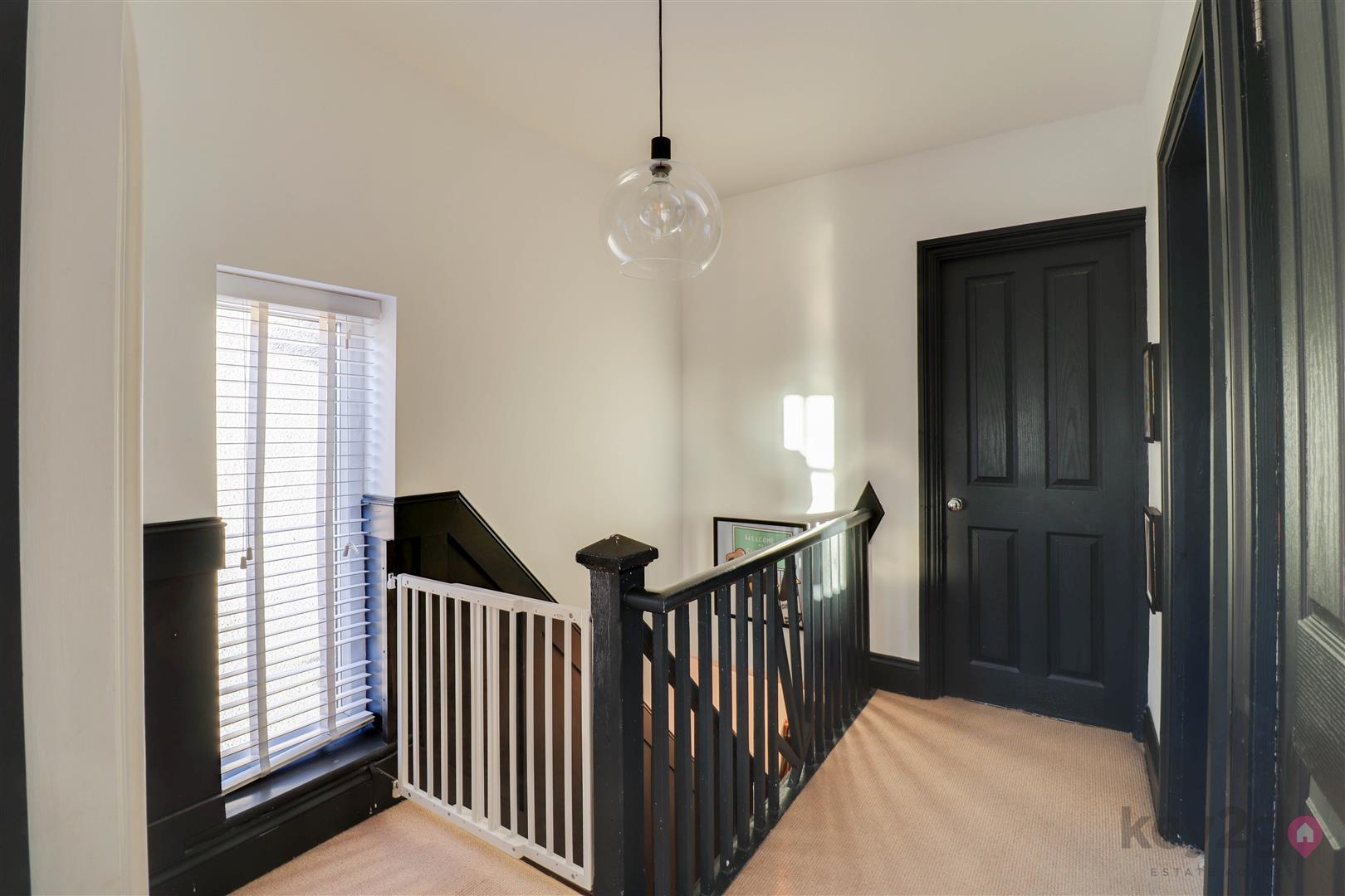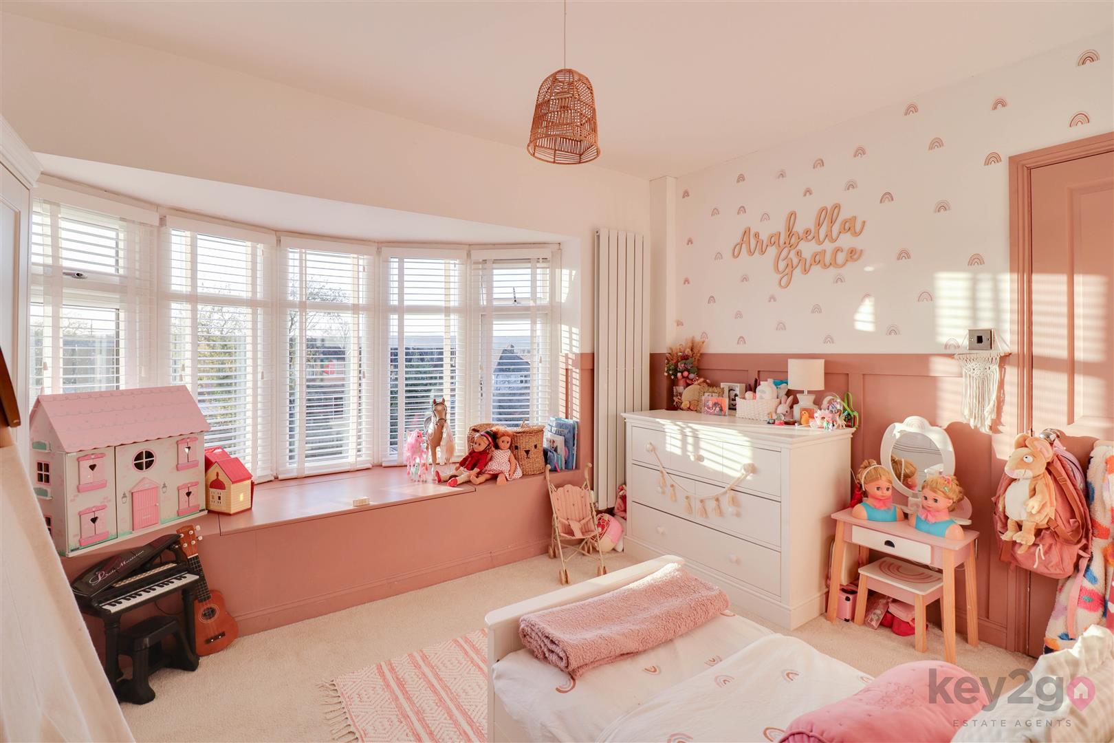 The stairs and landing feature stylish panelling, carpet, a window and a spacious landing with access to the staircase leading to bedroom four. Bedroom one is a double with neutral decor and a feature painted wall, two built-in wardrobes with sliding mirrored doors, carpet and a bay window with a built-in ledge offering useful additional storage and display space. Bedroom two is a double with panelling, carpet, an under-stairs useful open extra space and a bay window with storage. Bedroom three is a generous single with neutral decor, carpet and a window. The bathroom is modern and stylish with tiled walls, an L-shaped bath with shower and glass screen, a sink with storage unit, an obscure window and patterned tile flooring. The W/C is separate, modern and semi-tiled with neutral decor, a CCWC, window, patterned flooring and a radiator.