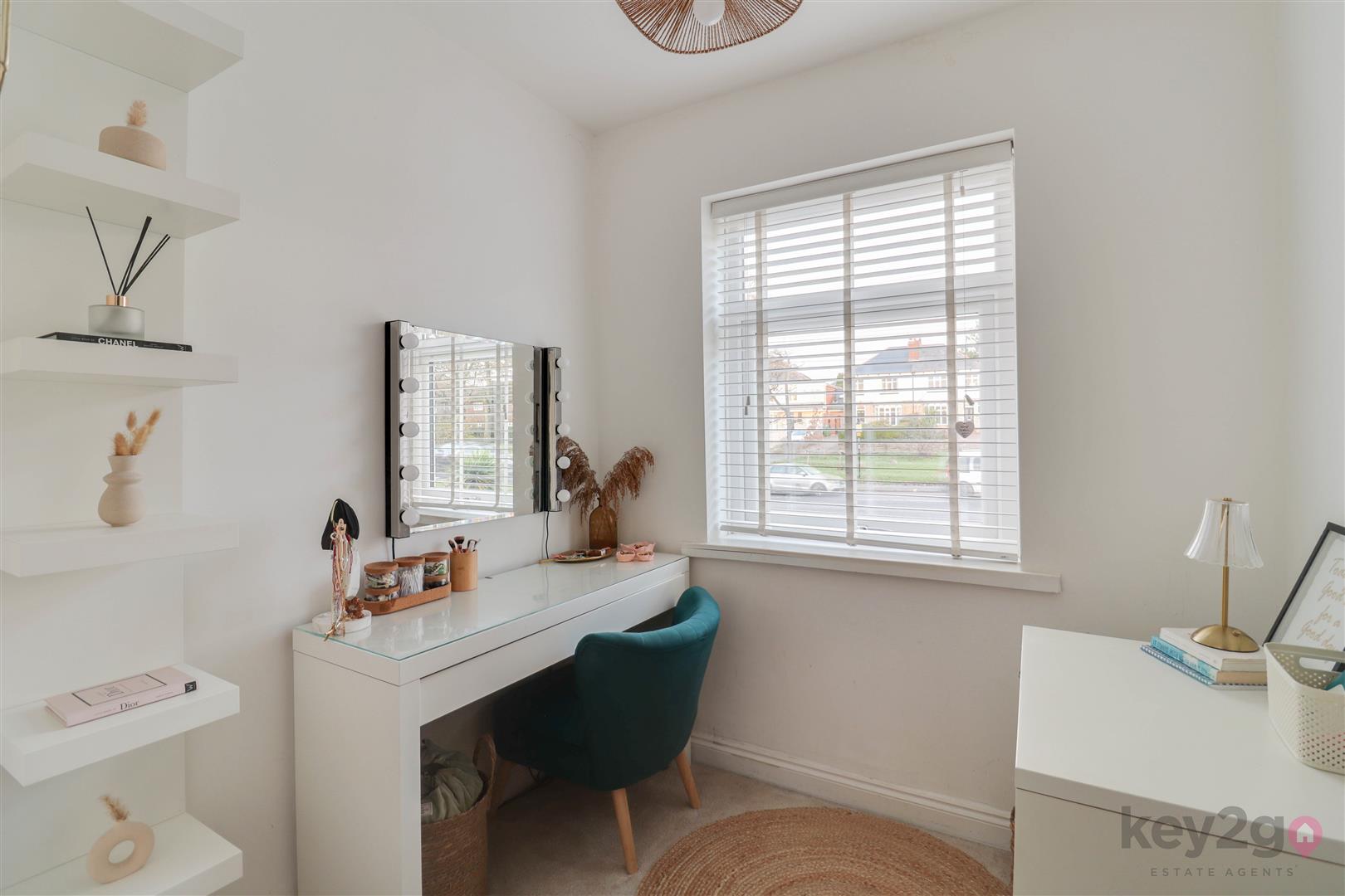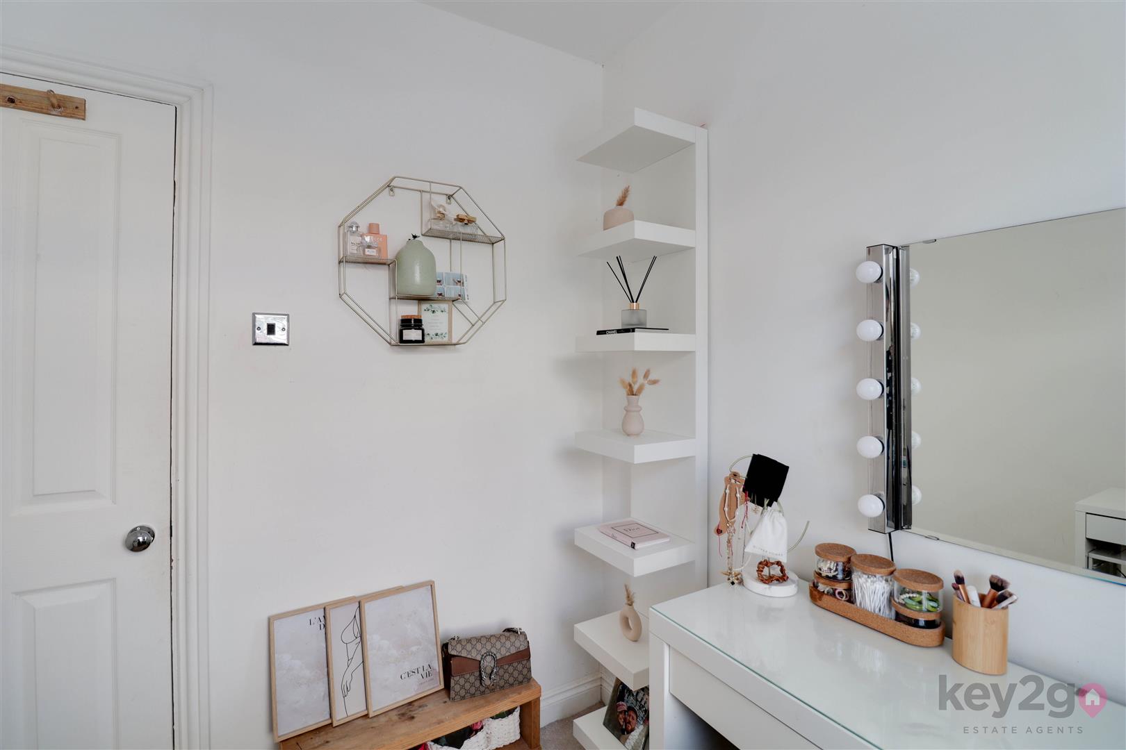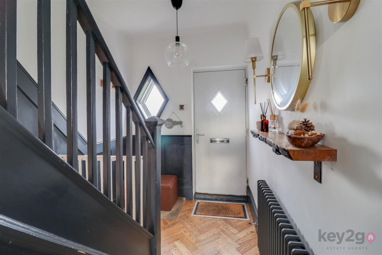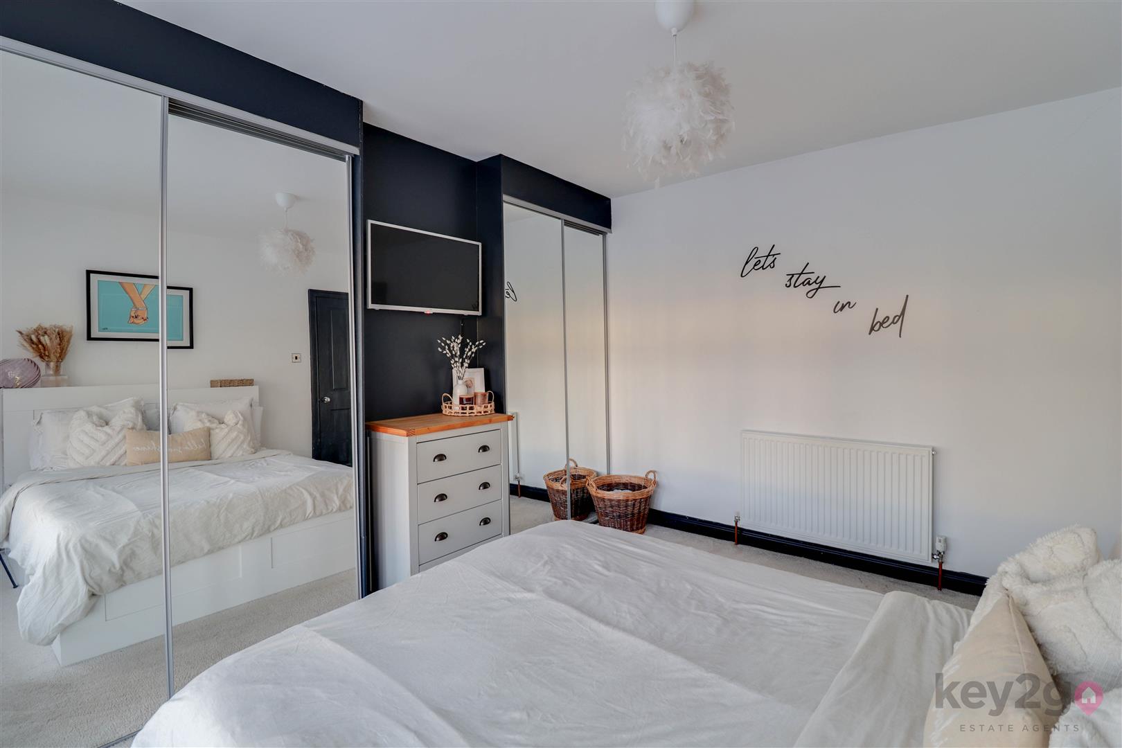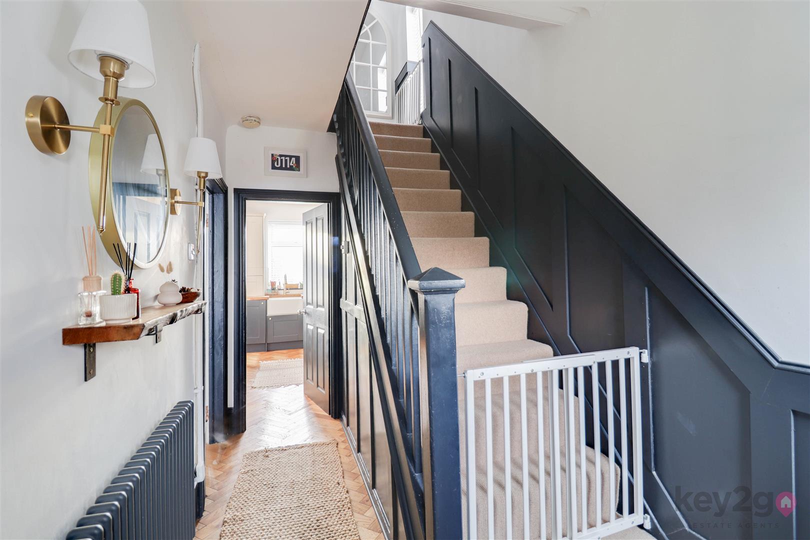The stairs and landing feature stylish panelling, carpet, a window and a spacious landing with access to the staircase leading to bedroom four. Bedroom one is a double with neutral decor and a feature painted wall, two built-in wardrobes with sliding mirrored doors, carpet and a bay window with a built-in ledge offering useful additional storage and display space. Bedroom two is a double with panelling, carpet, an under-stairs useful open extra space and a bay window with storage. Bedroom three is a generous single with neutral decor, carpet and a window. The bathroom is modern and stylish with tiled walls, an L-shaped bath with shower and glass screen, a sink with storage unit, an obscure window and patterned tile flooring. The W/C is separate, modern and semi-tiled with neutral decor, a CCWC, window, patterned flooring and a radiator.