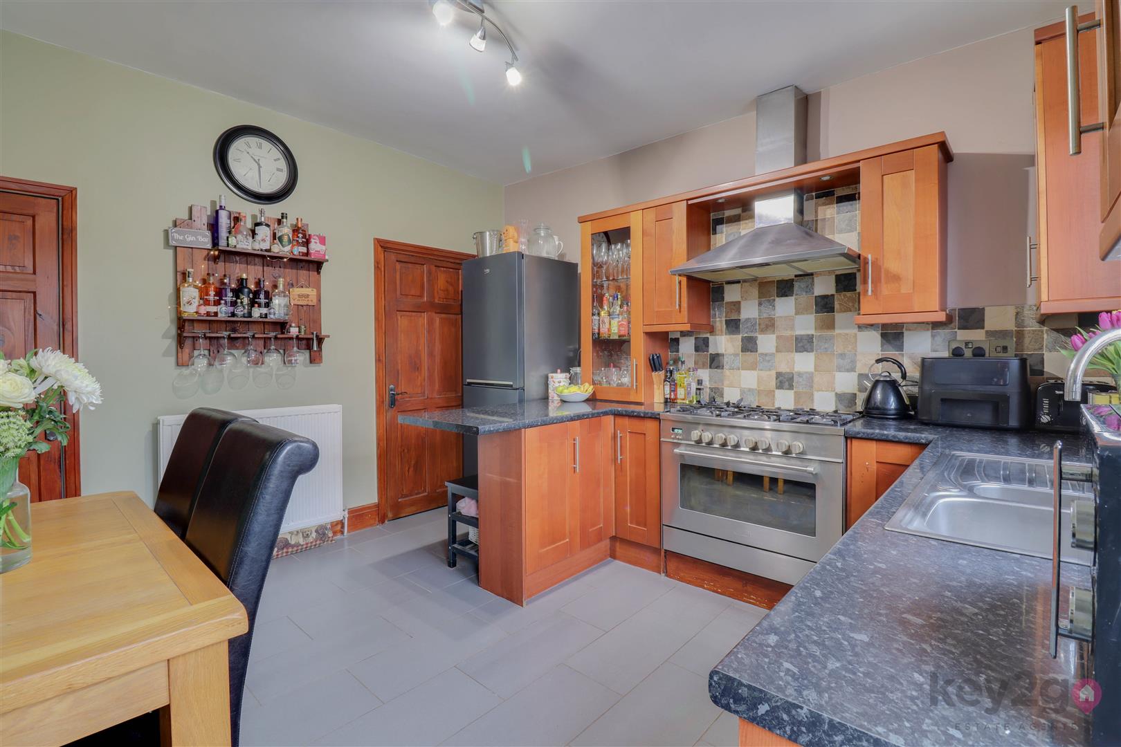 Enter into the lounge, which features a fireplace currently housing a log burner. A door leads through to the inner hallway, which has stairs rising to the first floor and a further door opening into the kitchen/diner. The kitchen/diner offers ample wall and base units along with space for a range cooker and a full-height fridge/freezer. Doors provide access to the cellar head and the rear garden.
