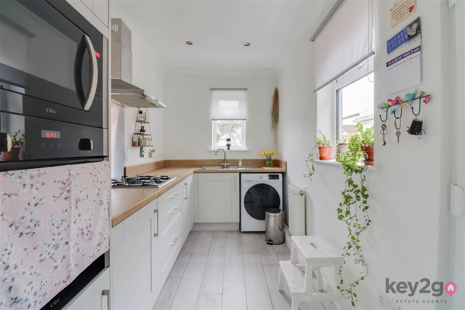 Enter into the lounge, which is a good-sized and bright reception room. A door leads through to the inner hallway, which has stairs rising to the first floor and a door opening into the dining room, providing a great additional living space with a storage cupboard. From the dining room, a door leads to the modern kitchen, which offers space for a full-height fridge/freezer and washing machine, along with an oven, hob and extractor fan. A door from the kitchen provides access to the rear garden.