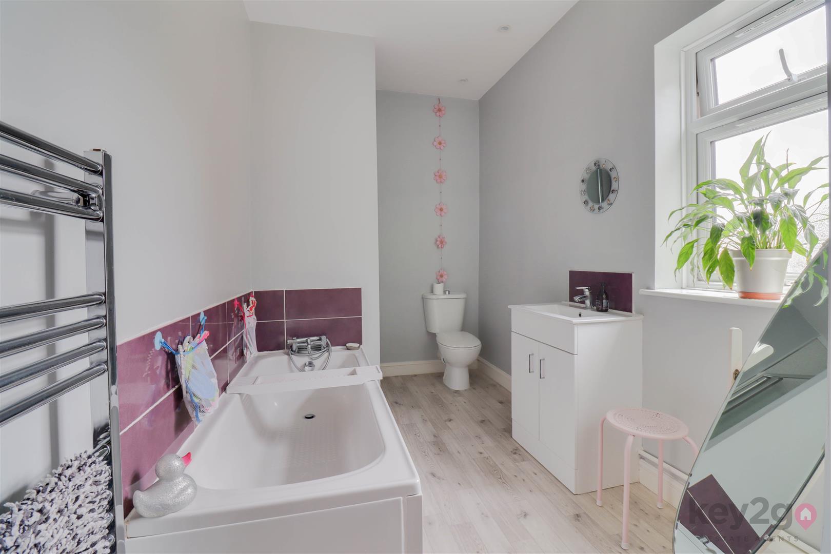 Stairs rise to the first-floor landing, with doors leading to bedroom one, a double bedroom benefiting from a large storage cupboard with access to the loft. A further door leads to bedroom two, which is also a double. The bathroom comprises a bath, shower cubicle, WC, sink and a cupboard housing the boiler.