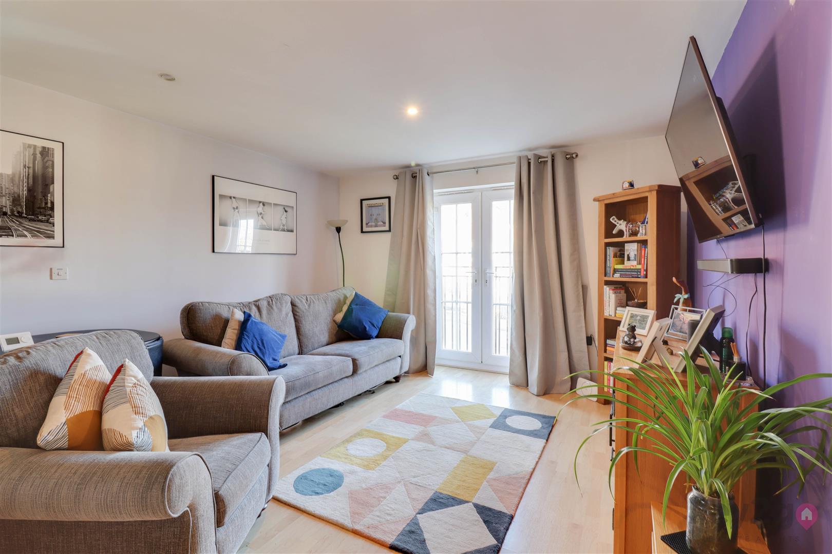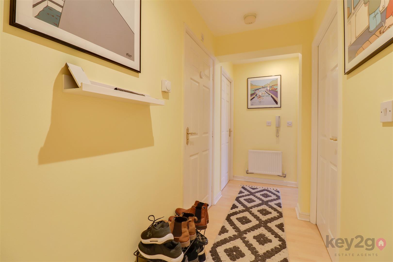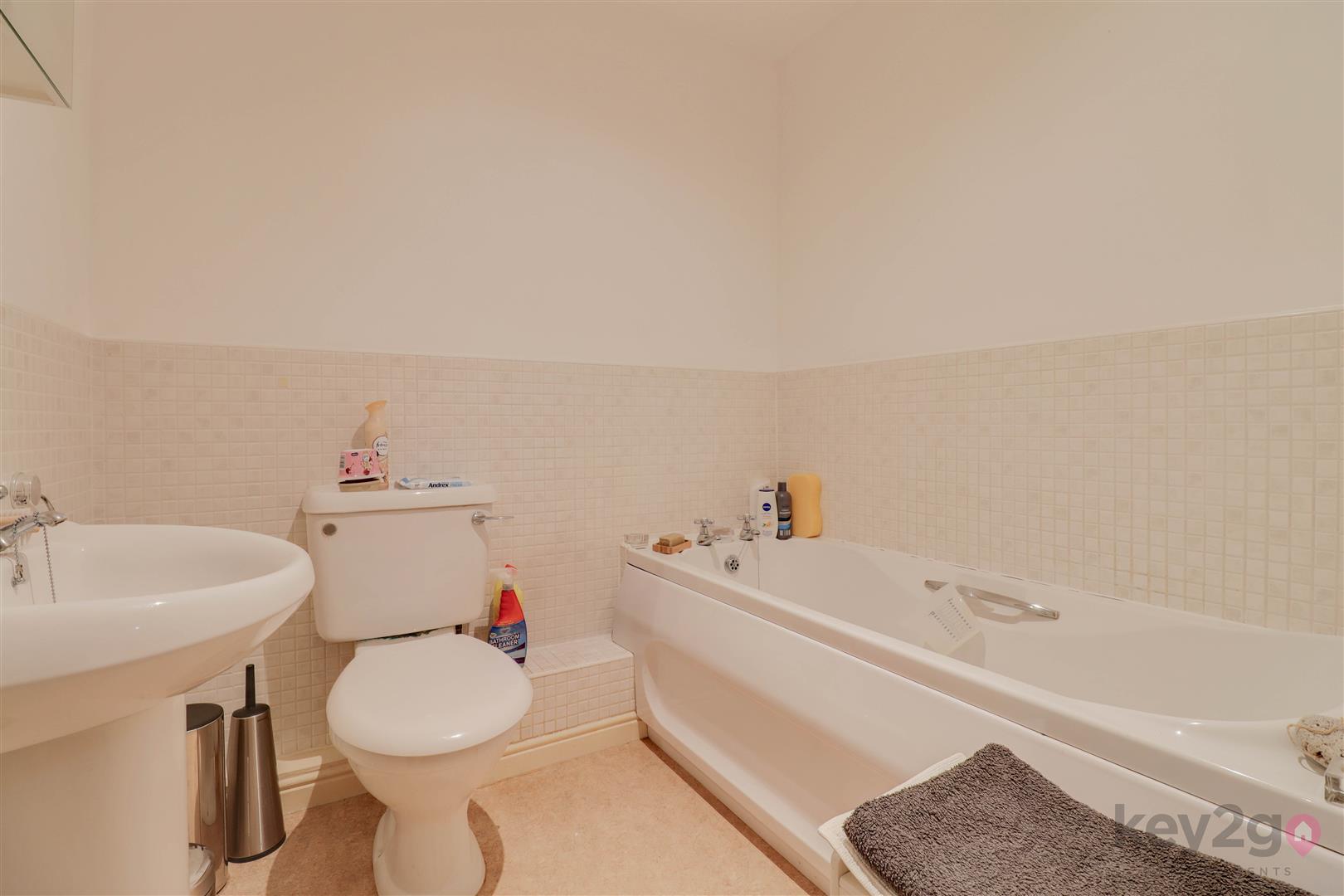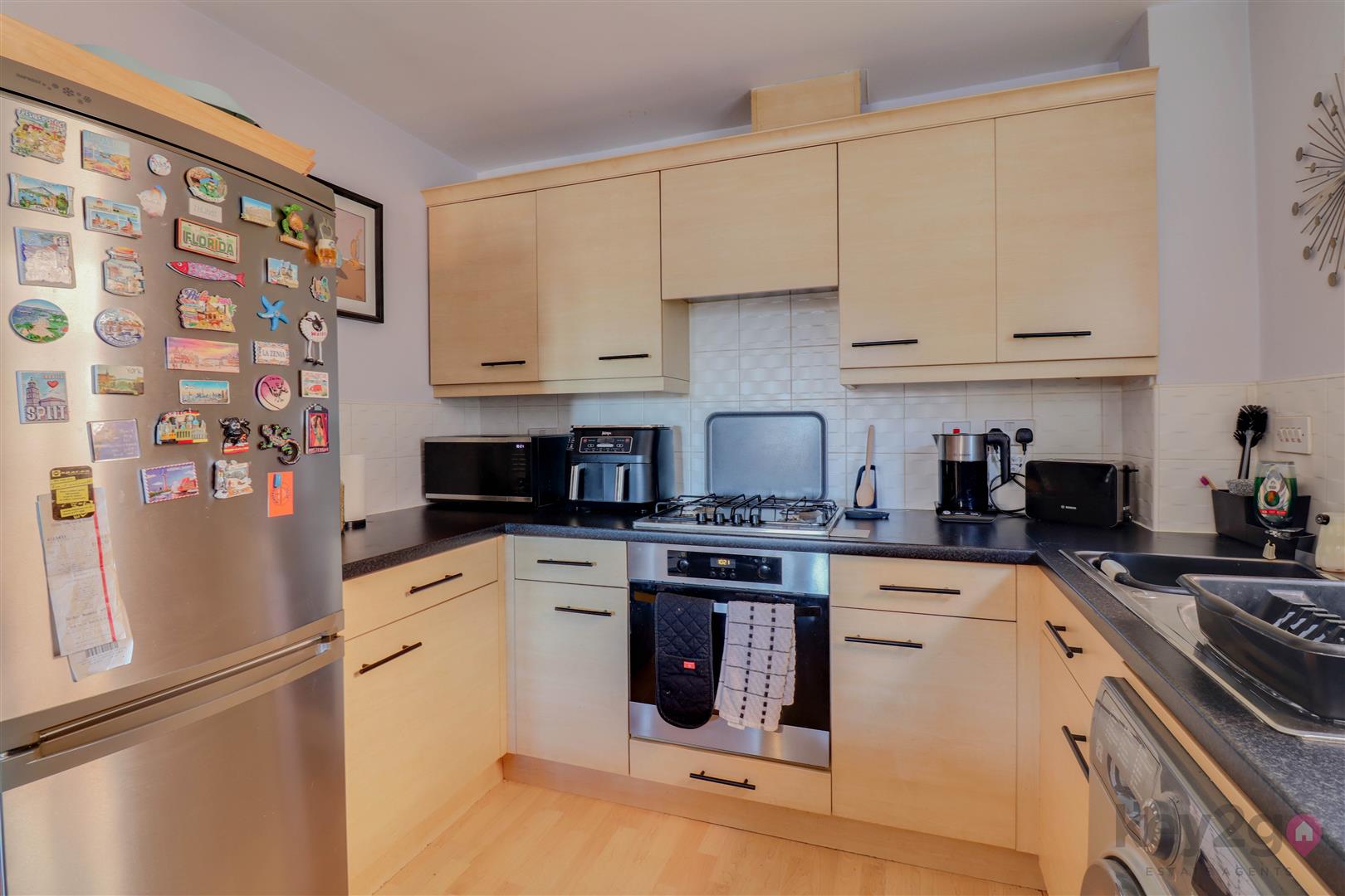 Entrance is into a welcoming hallway, with doors providing access to all rooms and a useful storage cupboard. The kitchen/diner/living area is bright and generously sized, featuring a Juliet balcony, wall and base units, an oven, hob and extractor fan, and space for a full-height fridge/freezer and washing machine/tumble dryer. The master bedroom is bright and spacious and benefits from access to an en-suite, which is fitted with a shower cubicle, WC and sink. Bedroom two is also a double bedroom. The bathroom is generously sized and comprises a bath, sink, WC and a cupboard housing the boiler.