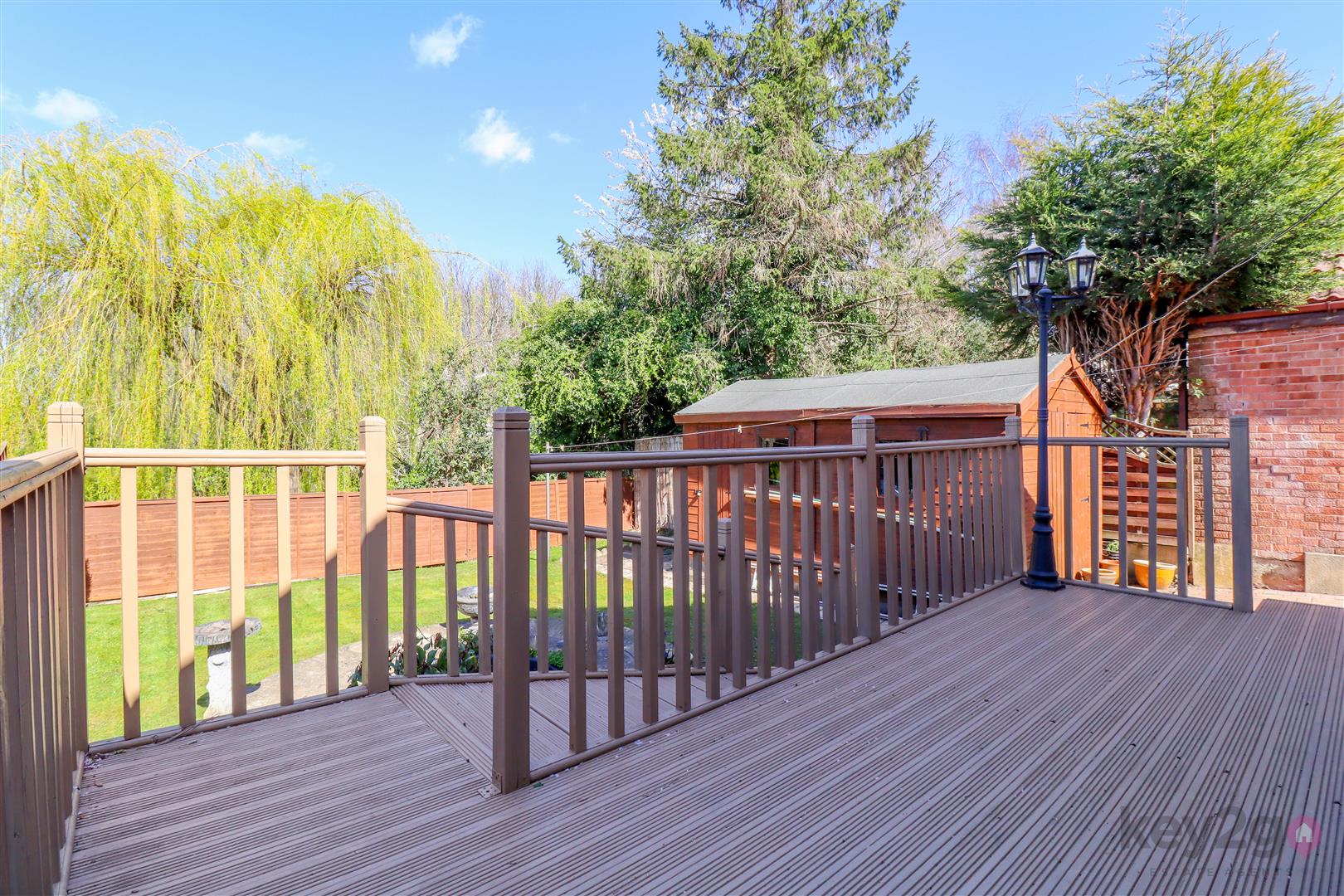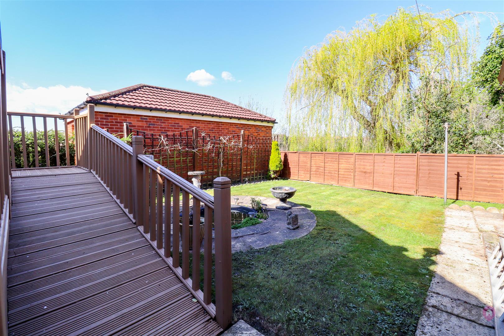 Outside, there is a pebbled area to the front with a driveway to the side. Gates lead to the rear, which features a decked area and a lawn, offering a private and not overlooked space.