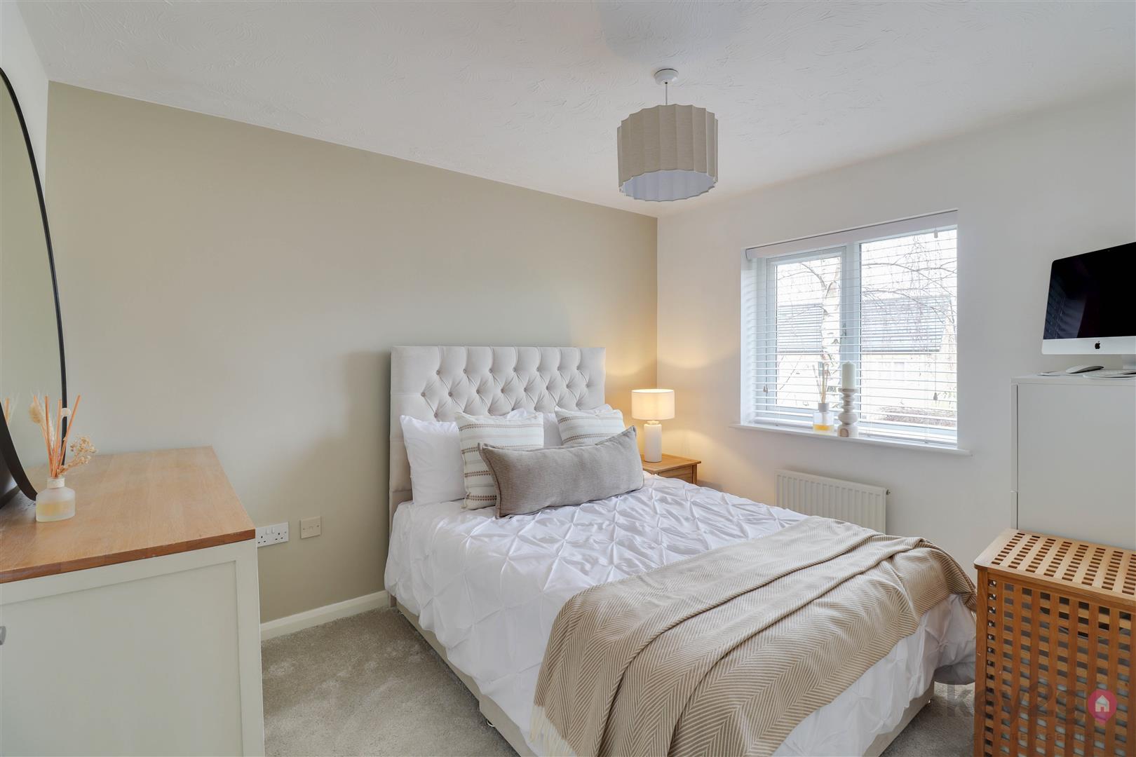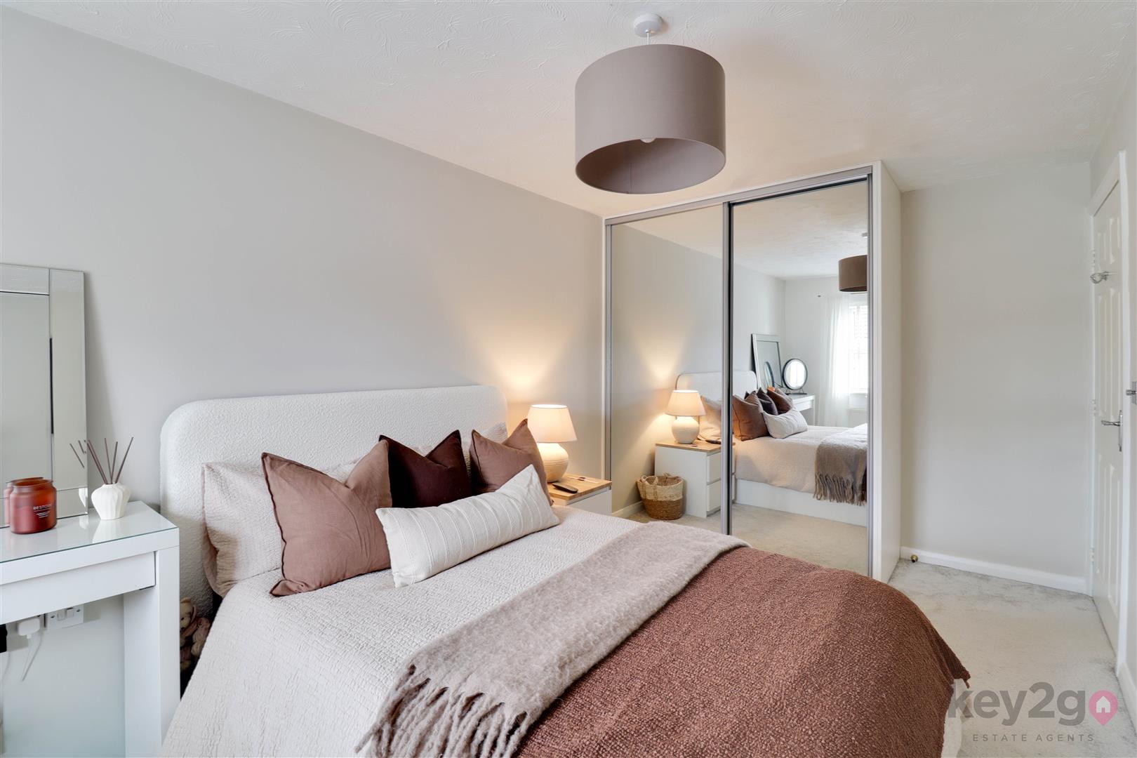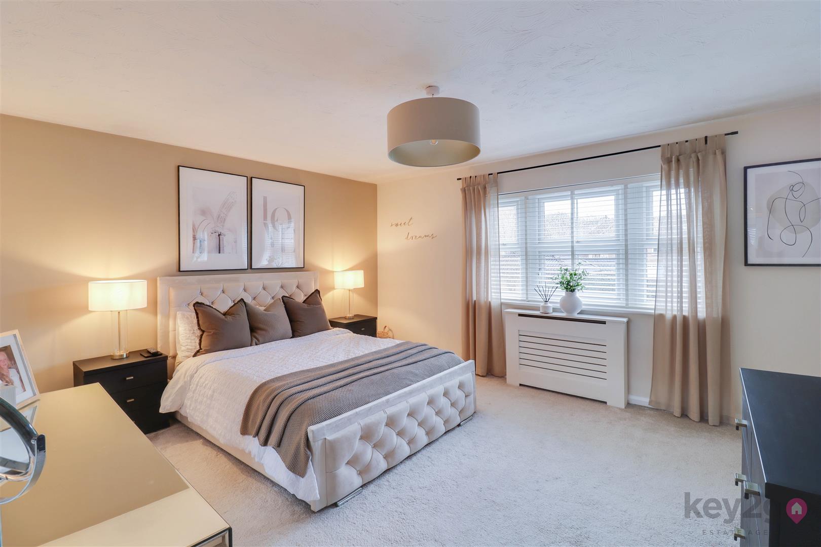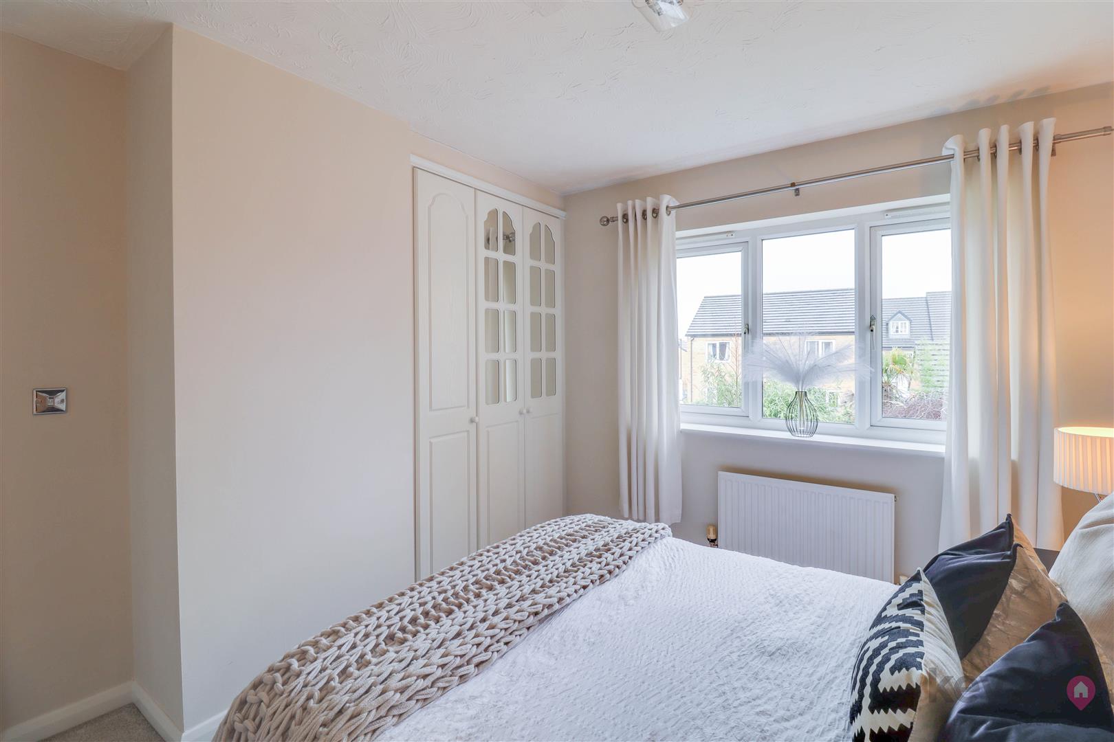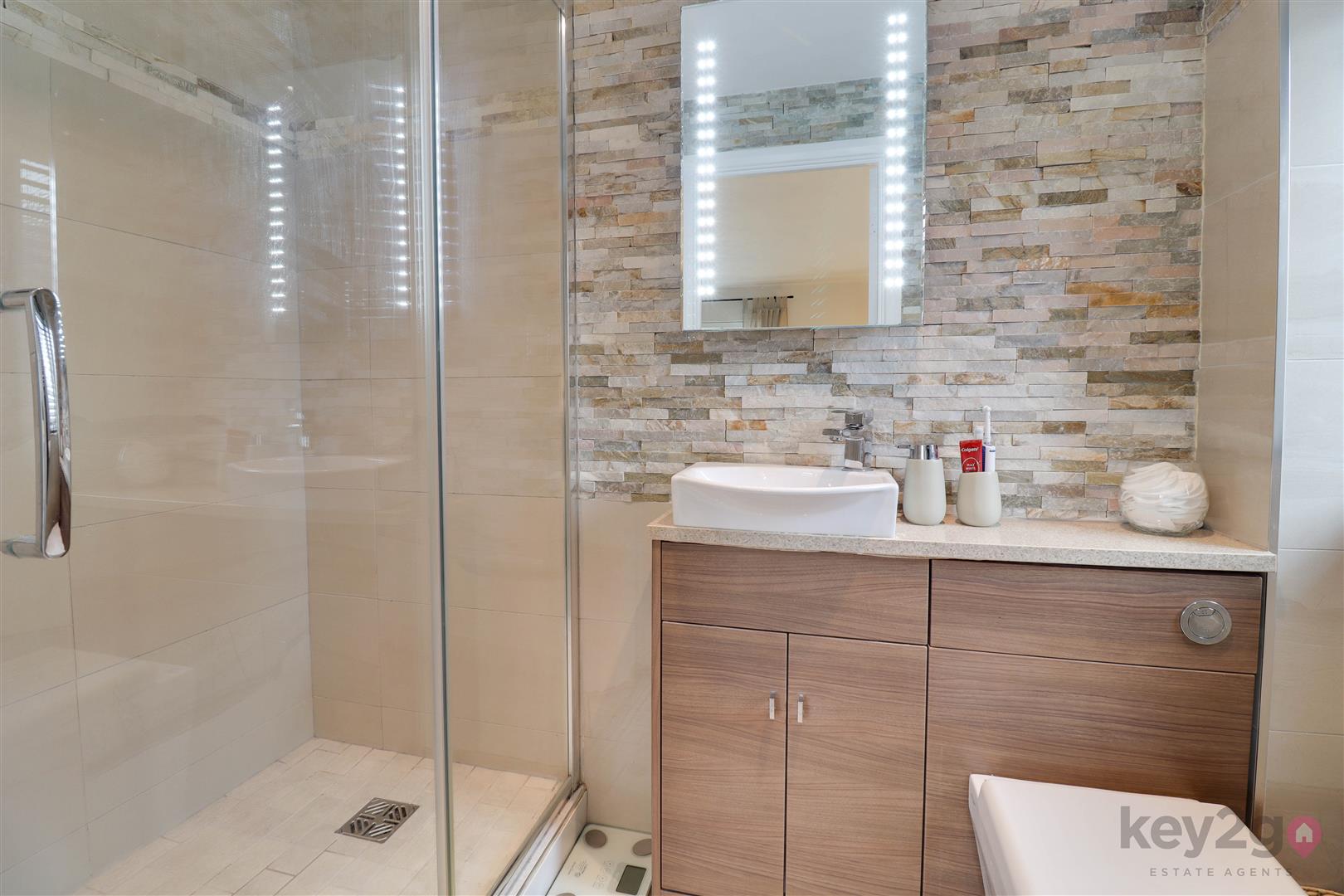 Stairs rise to a spacious, carpeted landing which provides access to the loft, all four bedrooms and the family bathroom. Bedroom one is a large double room, beautifully presented in neutral décor with fitted carpet and built-in wardrobes featuring mirrored sliding doors. A window allows for plenty of natural light, and the room benefits from its own en-suite. The en-suite is modern and stylish, comprising a toilet and wash basin set within a storage unit, along with a walk-in shower with a glass sliding door and a window for ventilation and light. Bedroom two is a double room, neutrally decorated with carpet flooring and built-in wardrobes with mirrored sliding doors, along with a window. Bedroom three is also a double bedroom, finished in neutral tones with carpet, a built-in wardrobe and a window. Bedroom four completes the accommodation and is another well-proportioned double room, neutrally presented with carpet flooring and a window. The family bathroom is modern and stylish, fully tiled and fitted with a walk-in shower unit, a large vanity unit housing the toilet and wash basin with storage, and a striking freestanding bath. A window provides natural light.