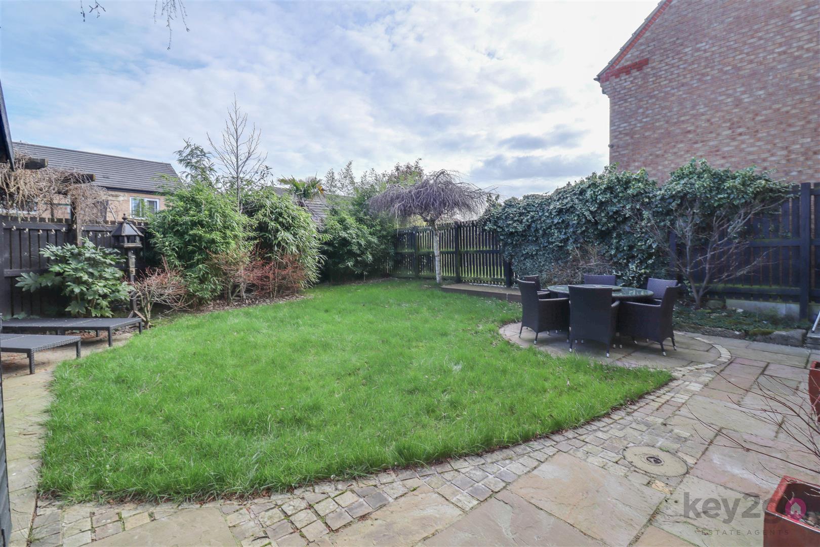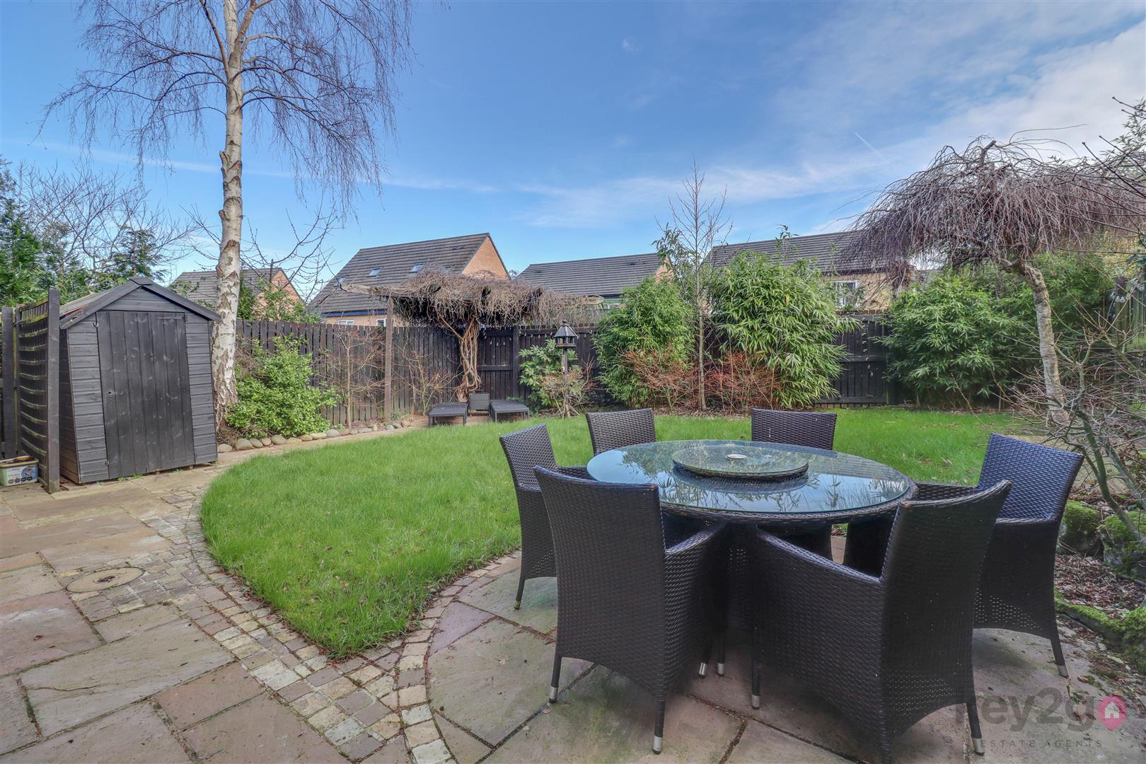 The rear garden is generous in size, well presented and fully enclosed, offering a good degree of privacy. It features a lawned area and a patio seating area.