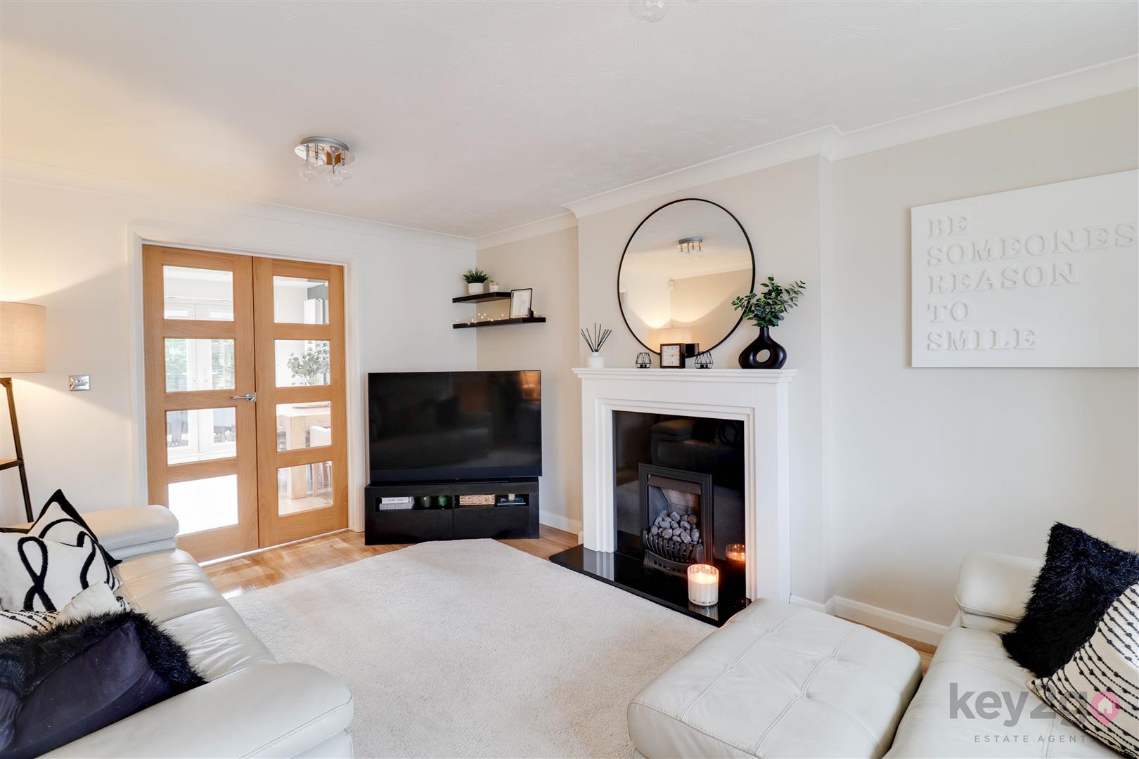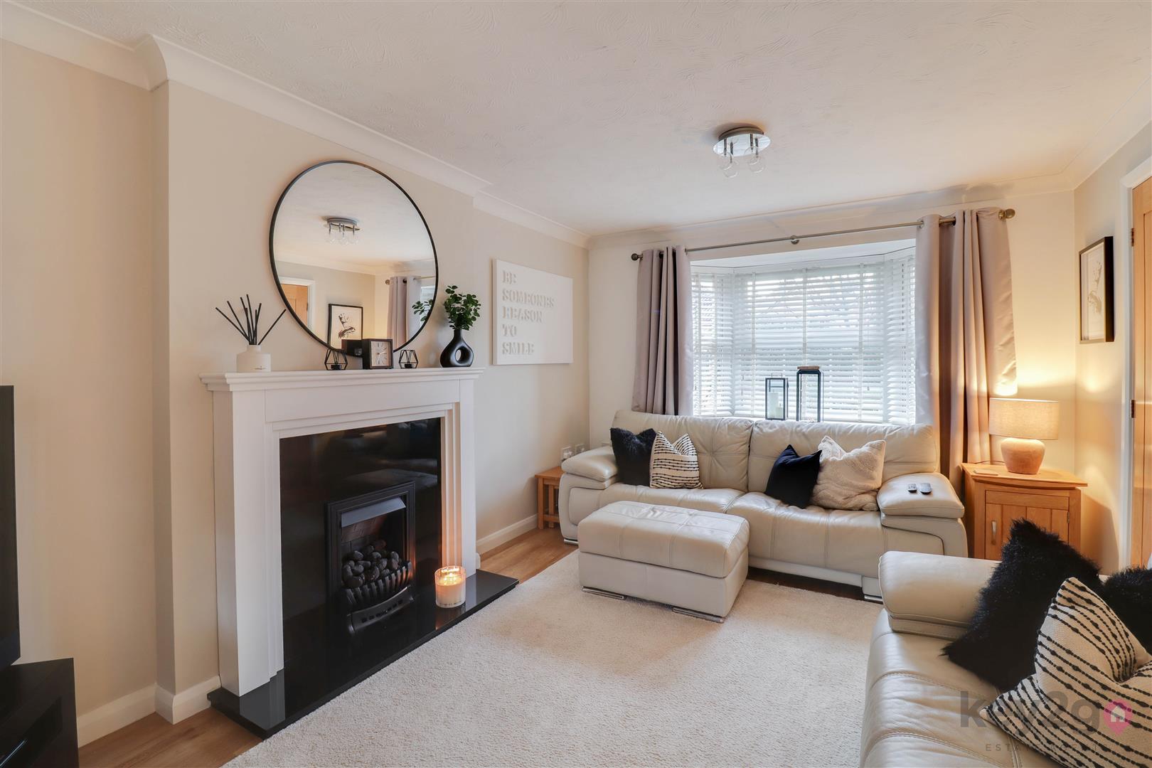 The property opens into a welcoming, bright and spacious hallway with stairs rising to the first floor, access to the lounge, kitchen/diner and downstairs WC, along with a large storage cupboard. The lounge is a generous and light-filled reception room, beautifully presented in neutral décor and featuring a fireplace and a bay window. Double doors lead through to the kitchen/diner, creating a wonderful flow for modern family living. The open plan kitchen/diner is stylish and contemporary, fitted with ample wall and base units complemented by quartz worktops. Integrated appliances include an oven, electric hob with extractor above, microwave and dishwasher, with a tiled splashback and spotlights completing the sleek finish. There is plenty of space for dining, a window allowing natural light to flood in, and double doors opening onto the rear garden. The kitchen also provides access to the utility room. The utility room continues the modern theme with matching wall and base units, quartz worktops and a tiled splashback, along with space for a washing machine and dryer. A door leads to both the rear garden and the integral garage. The downstairs WC is neutrally presented and fitted with a close coupled WC and wash basin. The integral garage is spacious and benefits from lighting and electricity, providing excellent storage or parking space.