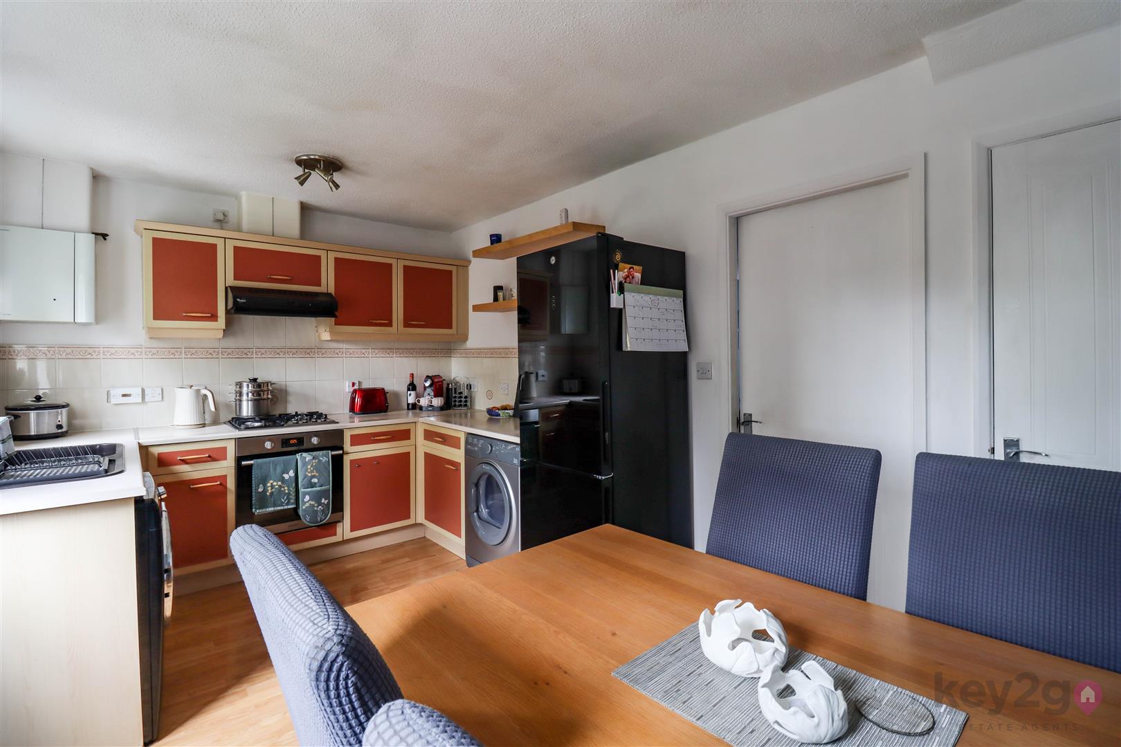 A welcoming hallway provides access to the downstairs WC and the bright, airy lounge, which features the stair rise to the first floor. A further door opens into the kitchen/diner, with doors leading to the rear garden and access to an under stairs storage cupboard.