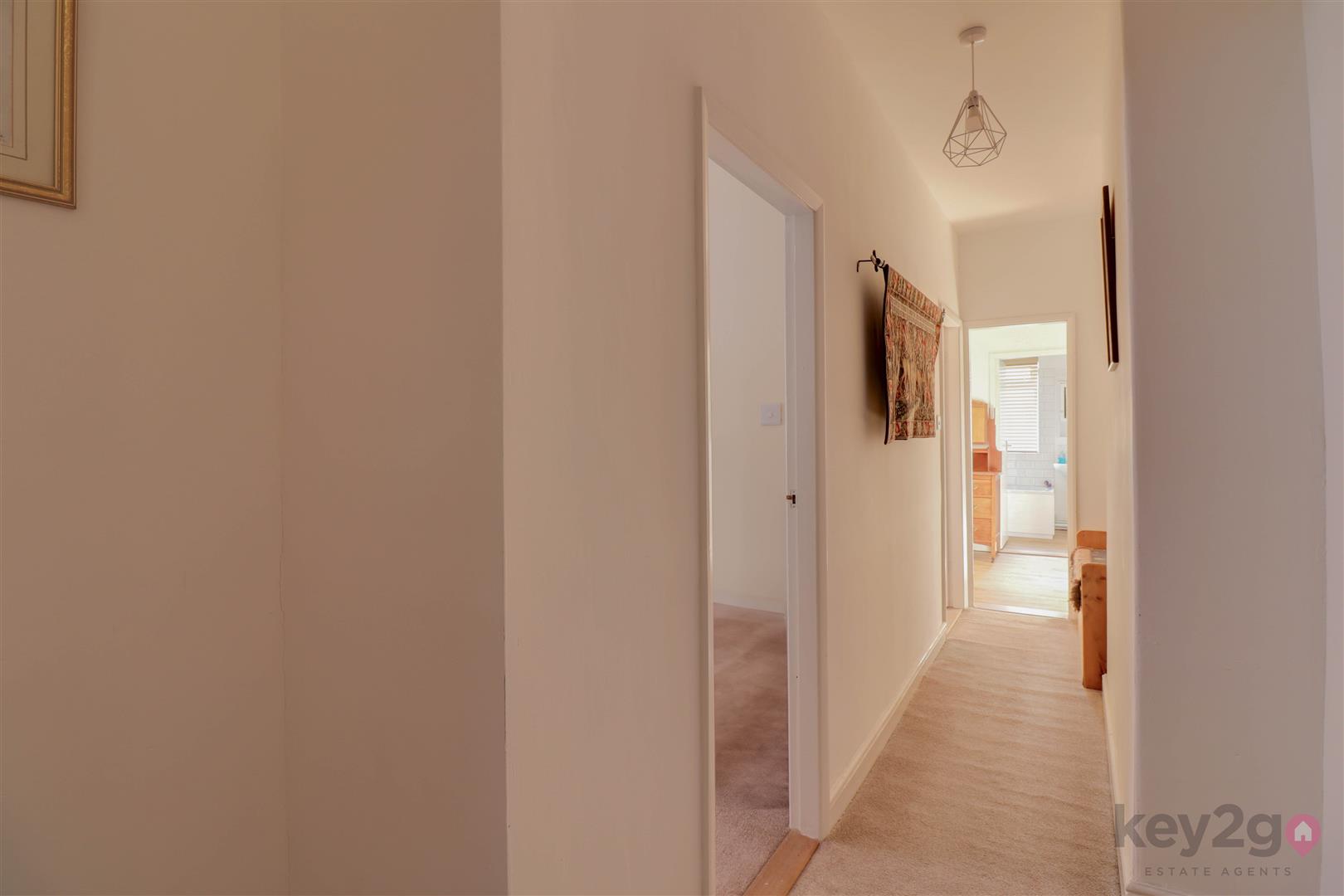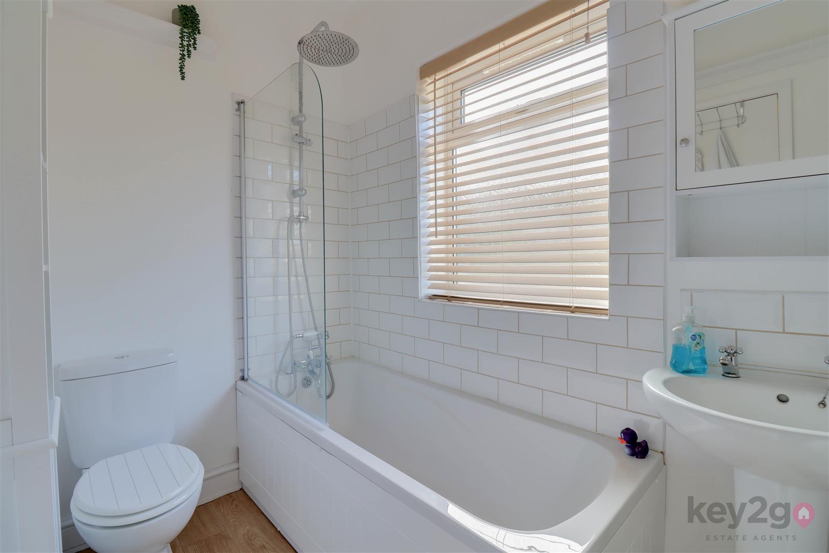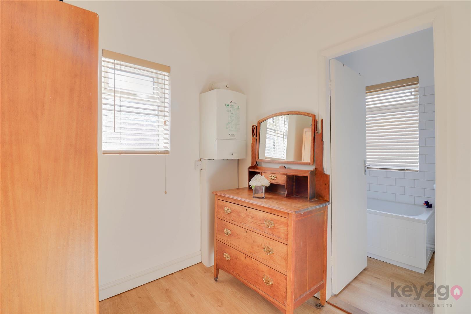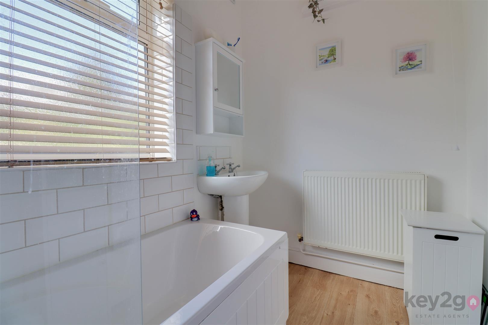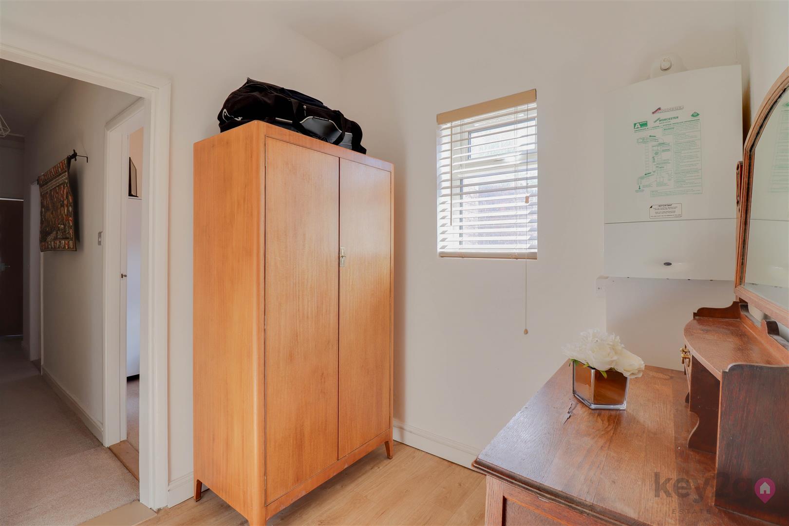 Stairs rise to a large first-floor landing, with doors leading to three bedrooms and open access to the dressing room. Bedroom one is a double bedroom with a window overlooking the front. Bedroom two is a double bedroom with a window overlooking the rear. Bedroom three is a single bedroom with a side-facing window. The dressing room provides a useful additional space and has a door leading to the bathroom, which is fitted with a bath, pedestal sink, and WC.