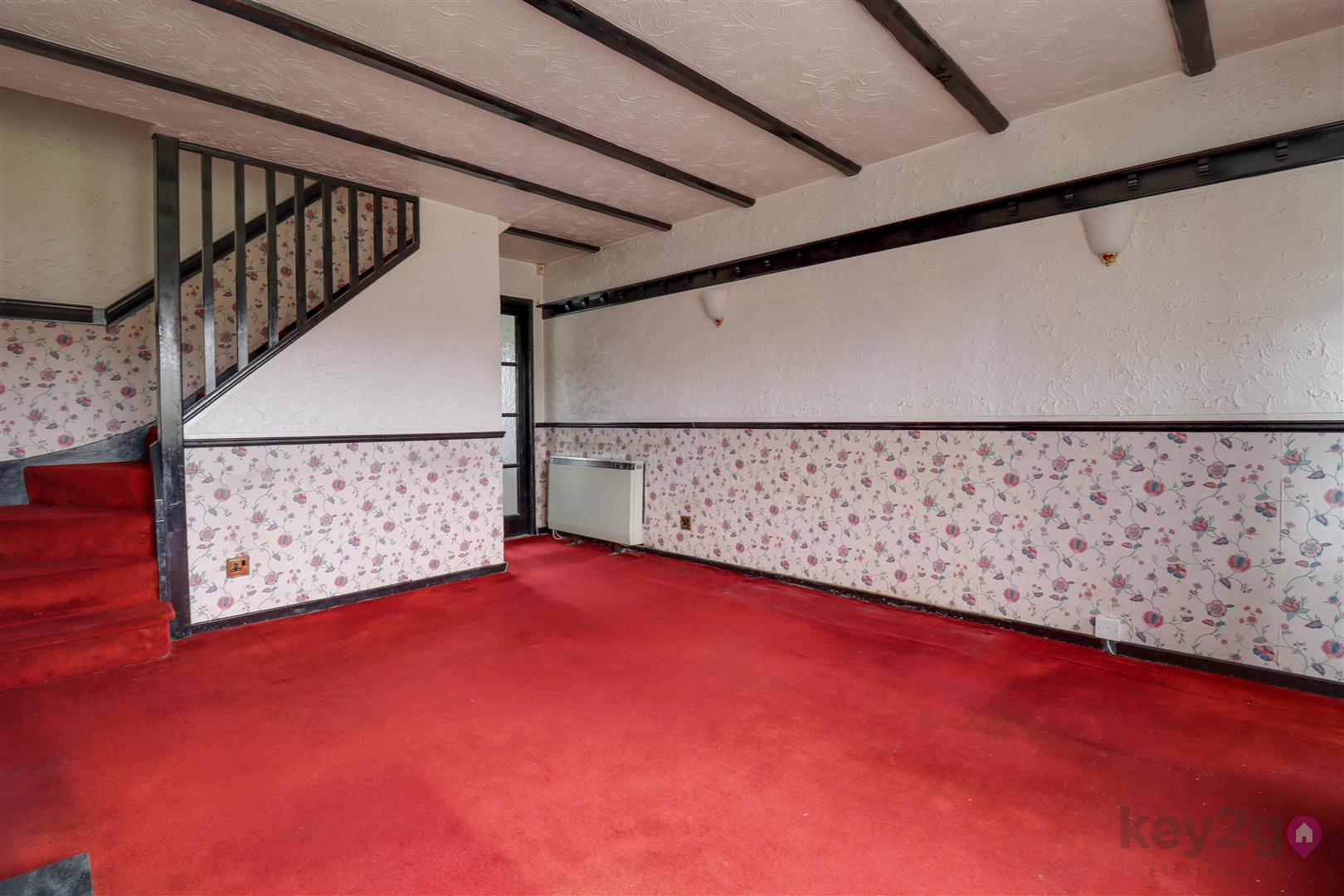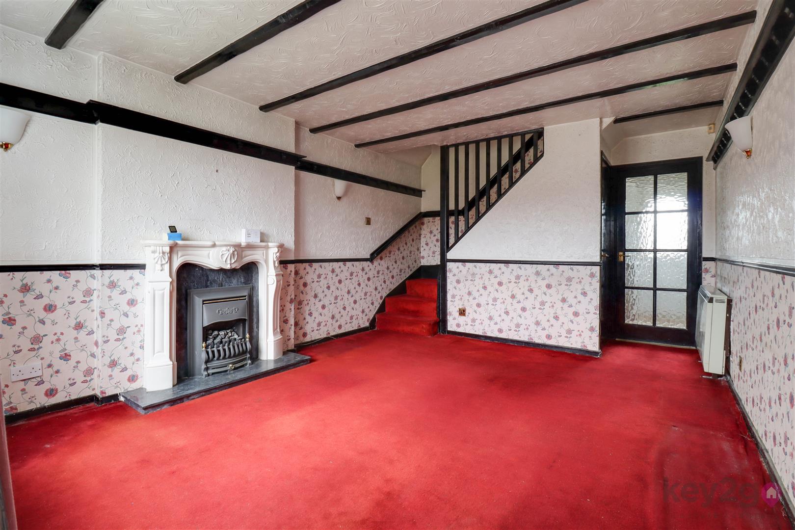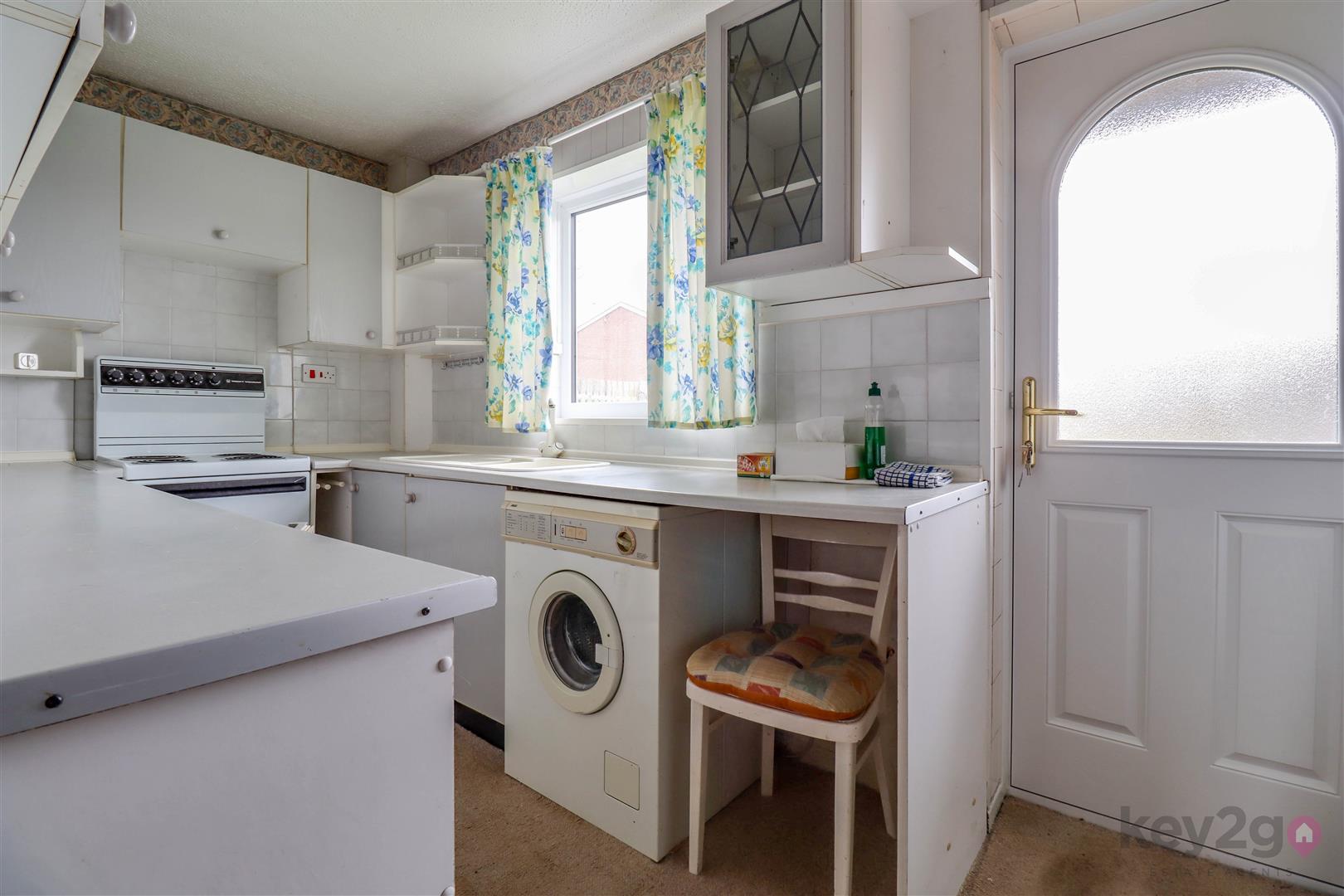 Useful porch area with a door leading to the lounge. The lounge has a window overlooking the front, an under stairs storage cupboard, and a storage heater, with a further door leading to the kitchen. The kitchen is fitted with wall and base units, a storage heater, a window to the rear, and a composite door providing access to the rear garden.