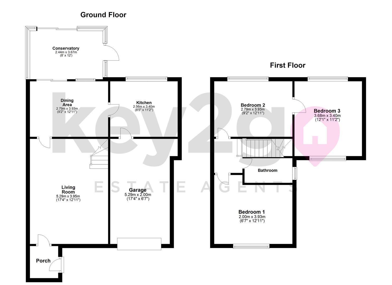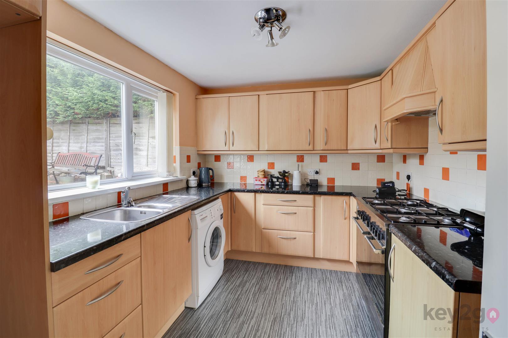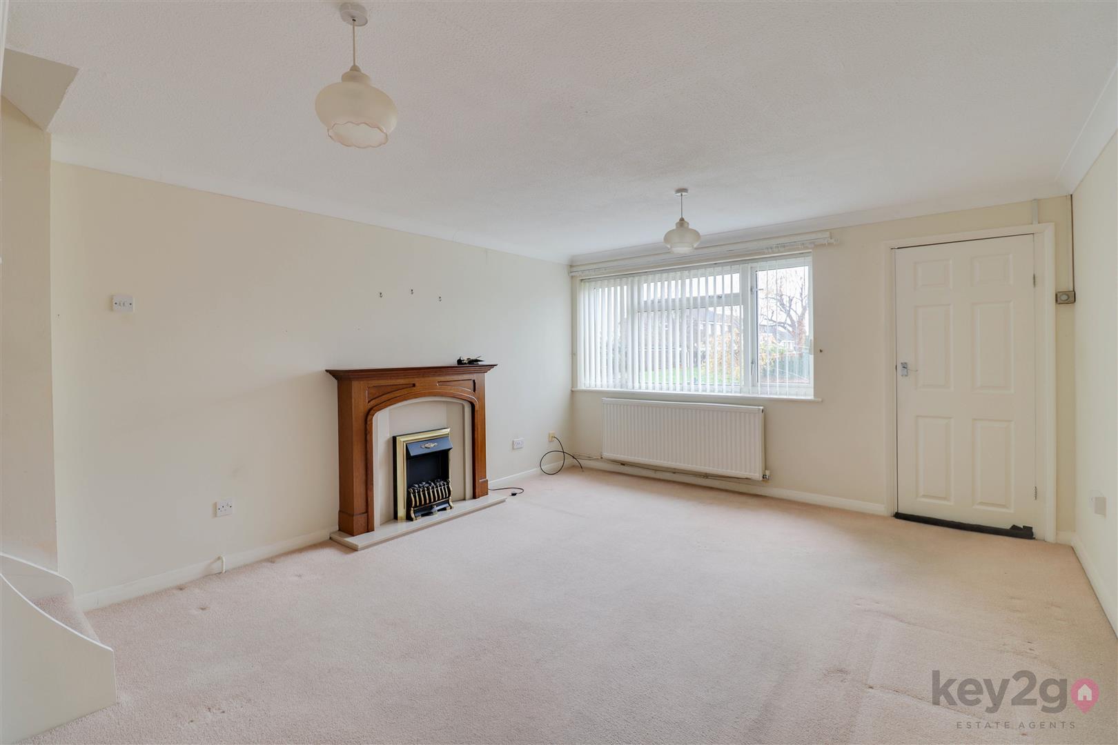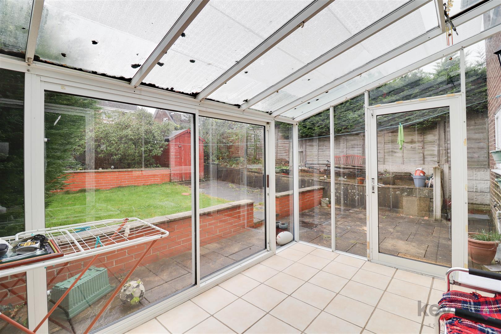 UPVC door leads to the porch area with neutral décor, storage, carpet, and an obscure window. The spacious lounge includes neutral décor, carpet, a fireplace, and stairs. The dining room has carpet, storage, double sliding doors to the conservatory, and access to the kitchen. The kitchen offers ample base and wall units, contrasting worktops, a freestanding double oven, a door leading to the garage, vinyl flooring, and a sink with a window overlooking the garden. The conservatory features tile flooring, windows, a door leading to the rear, and is bright and spacious.