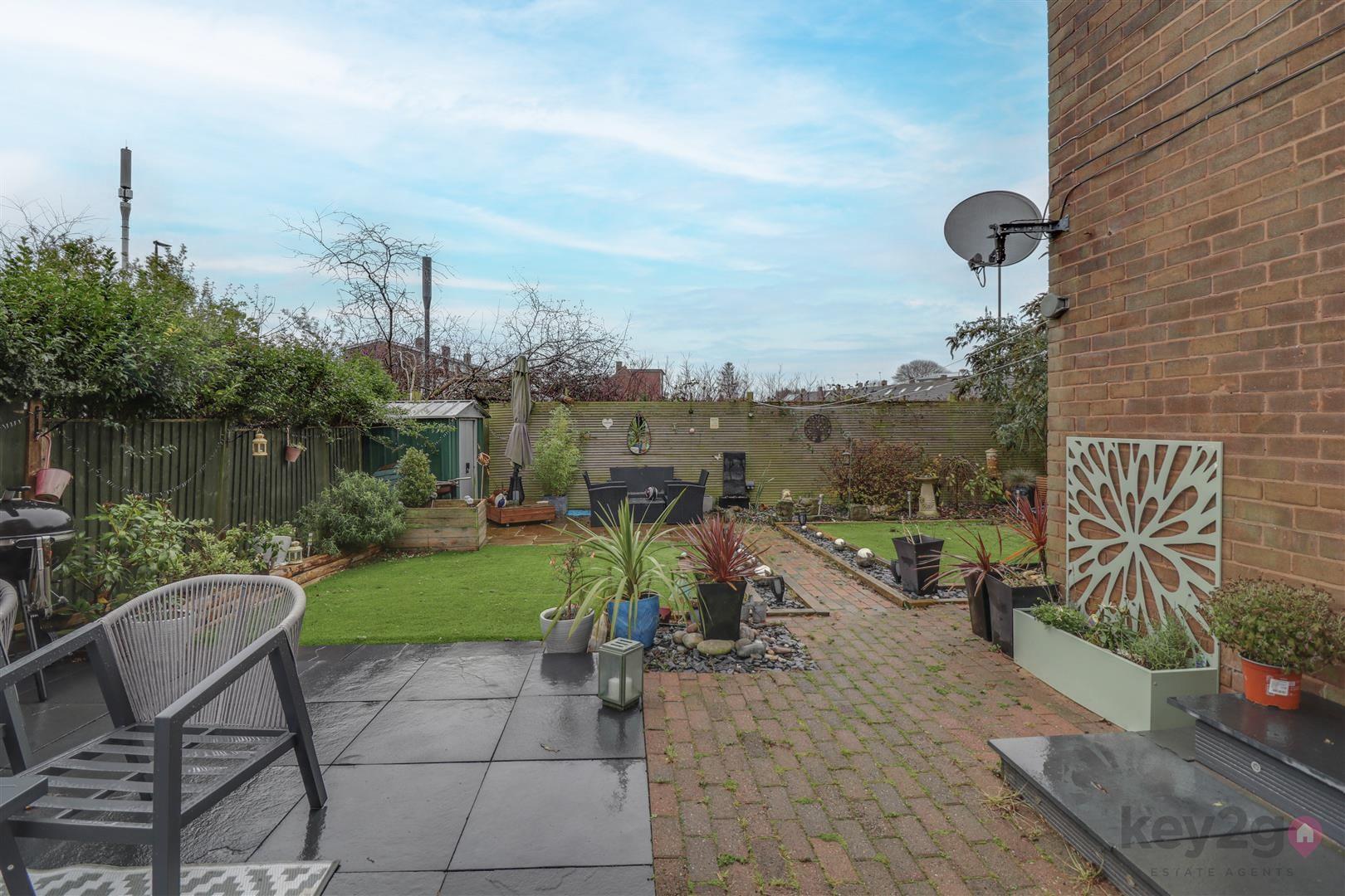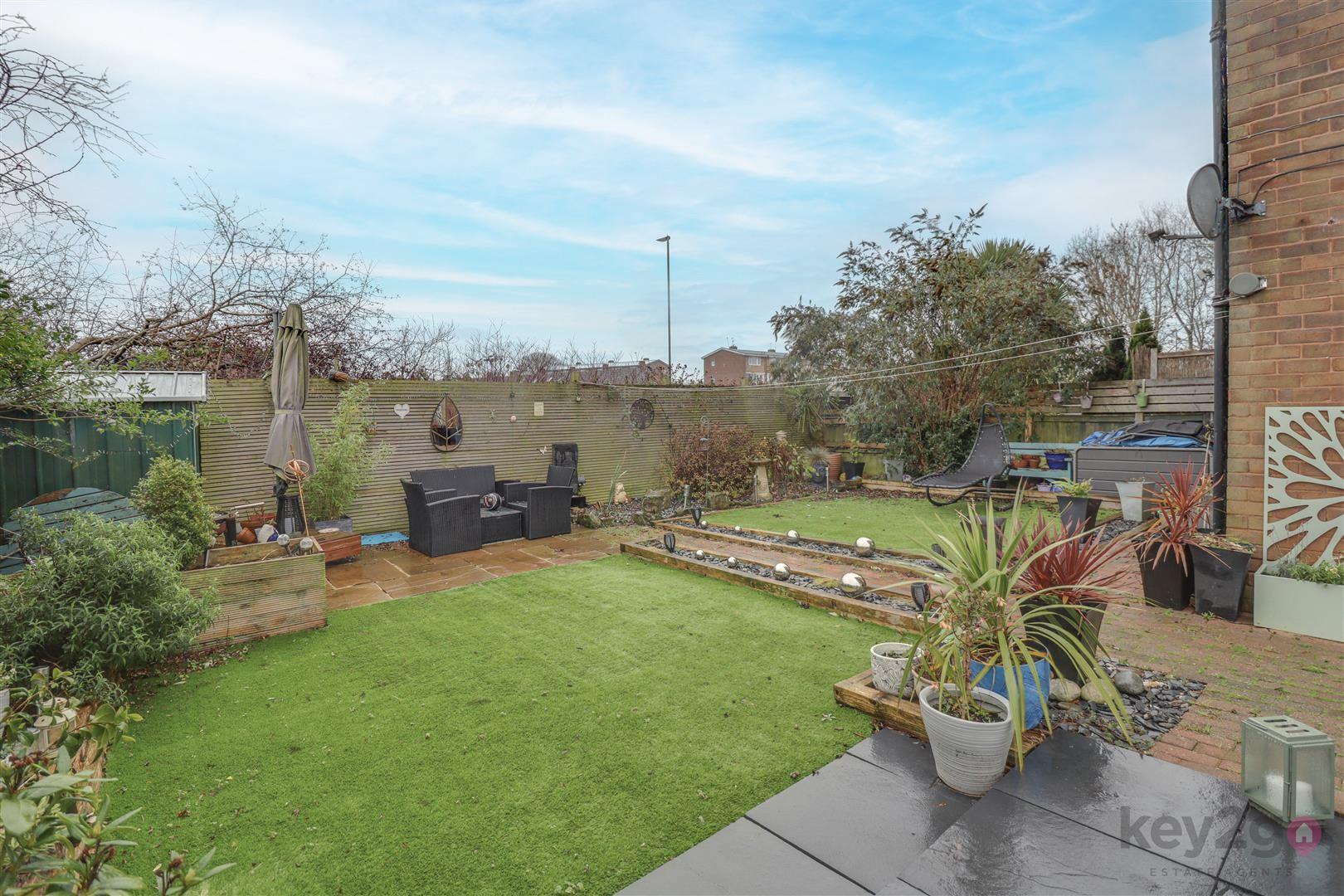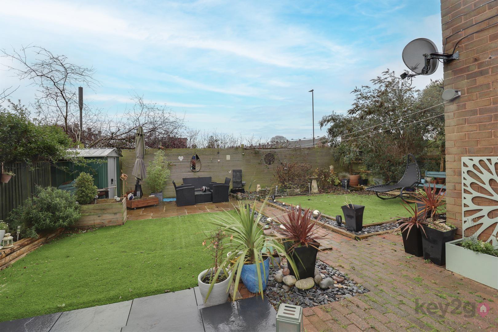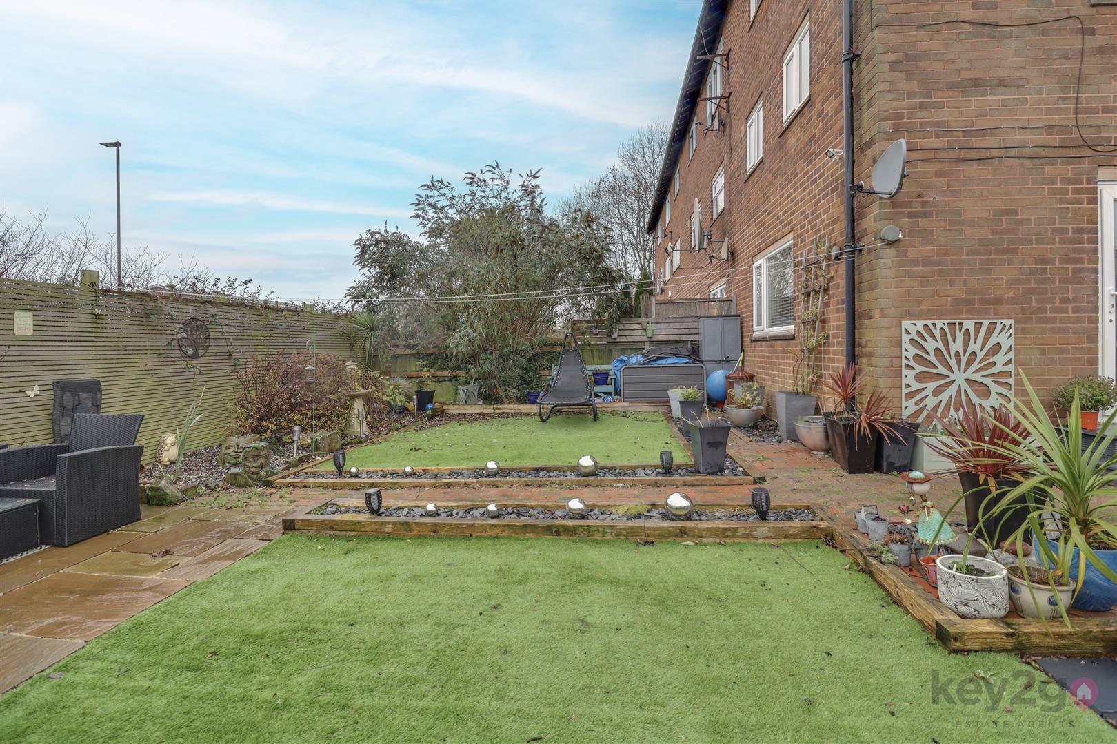 The rear garden is private, enclosed, generous sized, and well presented, with low-maintenance features including an artificial lawn and a patio area.