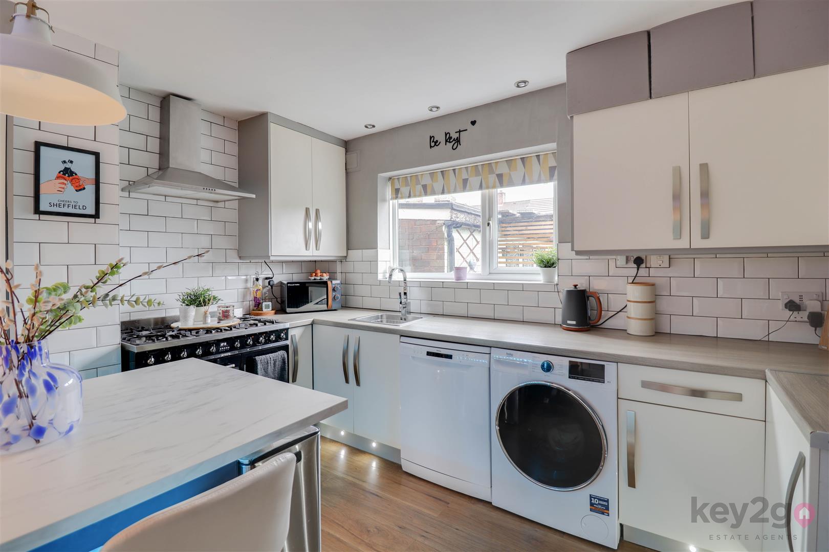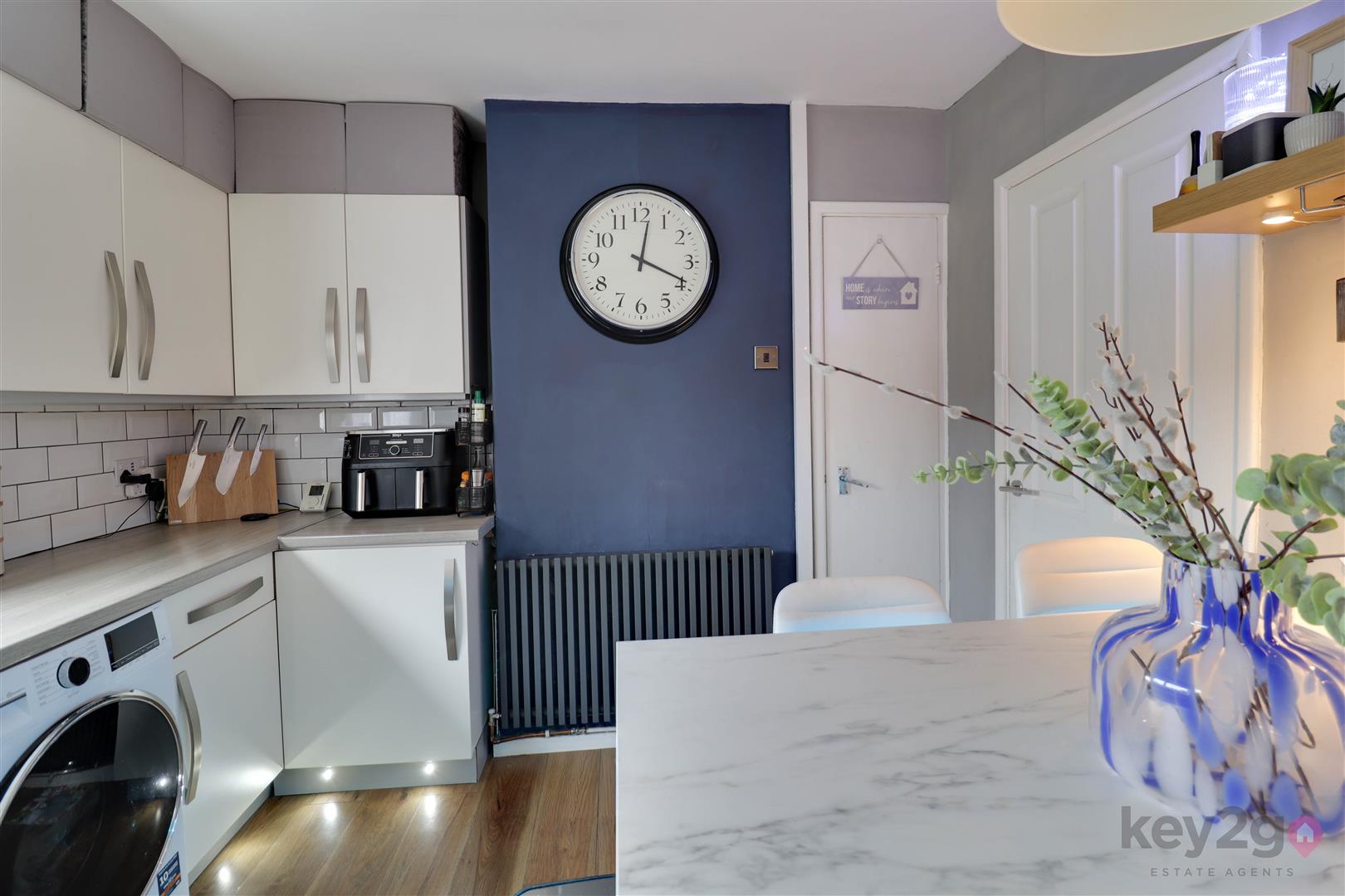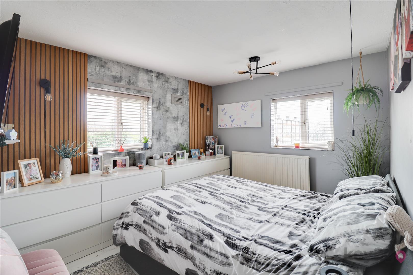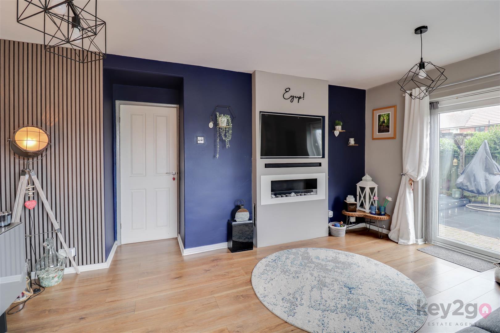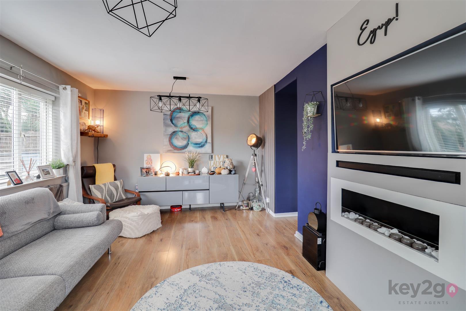 Enter into the porch via a composite door with storage, two windows, exposed brick, a stylish floor and a door leading to the hallway. The hallway offers stairs, wood flooring and storage. The kitchen is modern and stylish with ample wall and base units, contrasting worktops, a double oven, space for a dishwasher and washing machine, a breakfast bar, storage and a window. The lounge is stylish, open and spacious with laminate flooring, a media wall and a door leading to the rear.