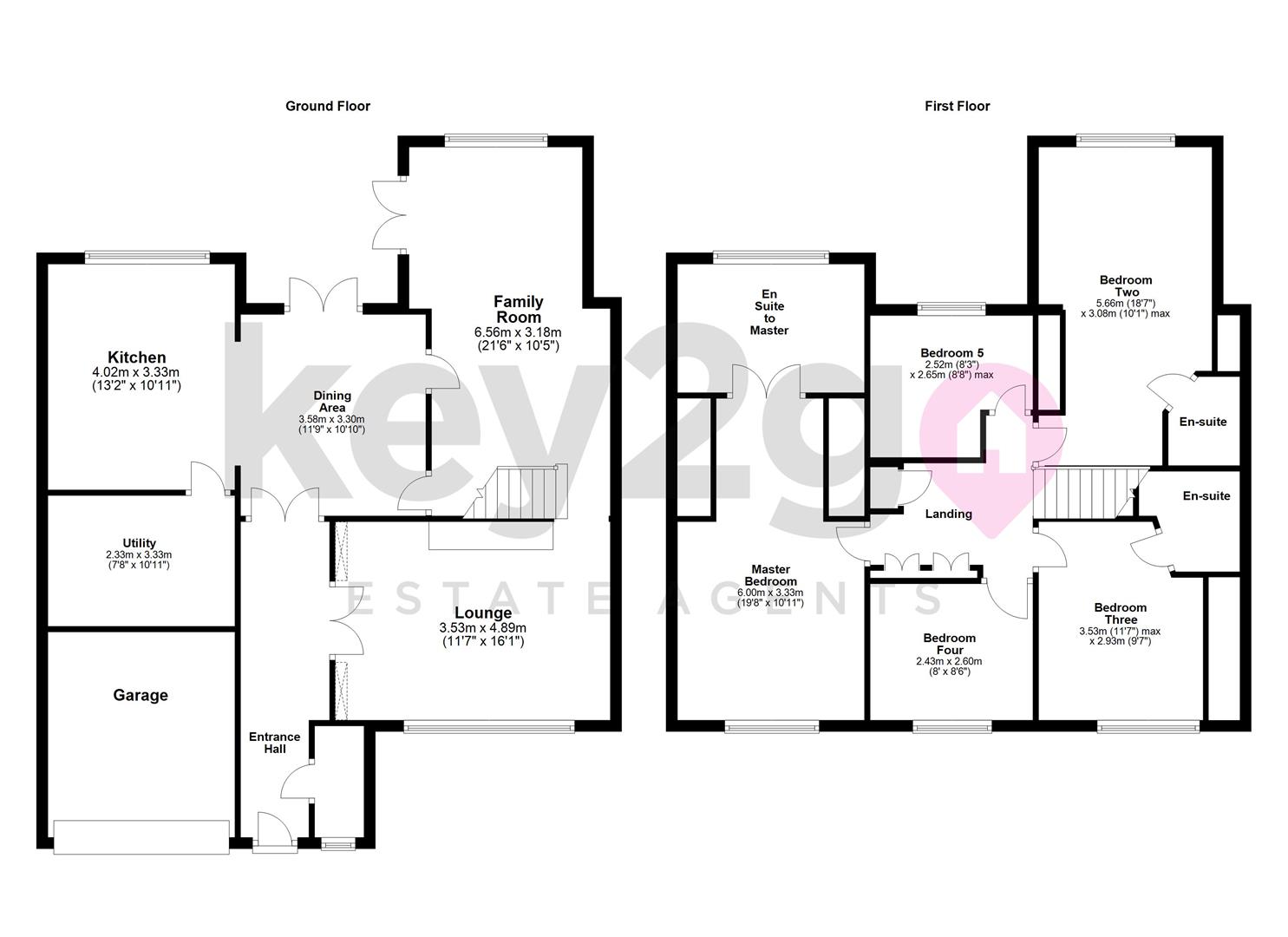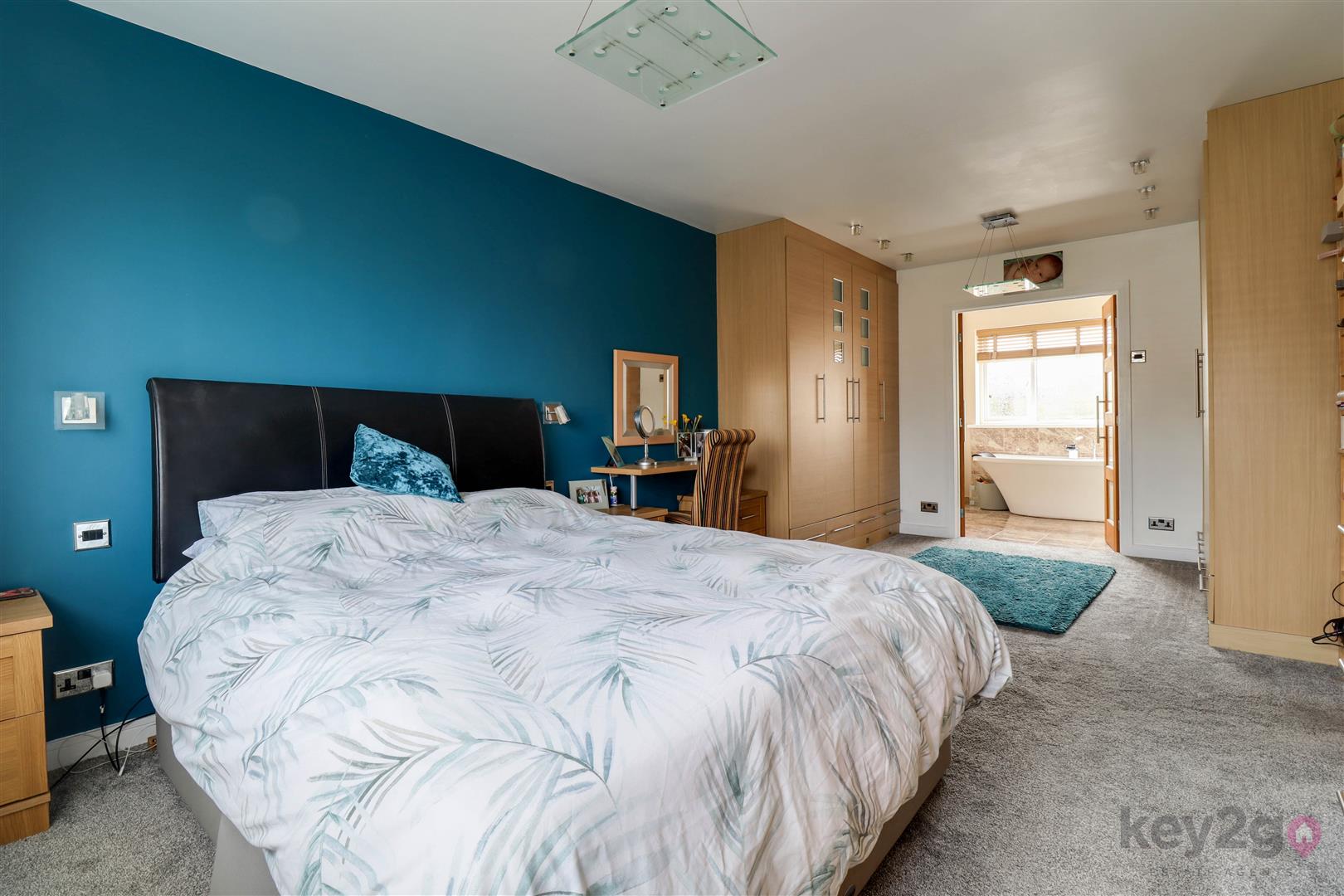 Stairs rise to the first floor landing, which benefits from ample built-in storage cupboard space. From here, access is provided to five well-proportioned bedrooms, three of which enjoy the luxury of their own en-suite facilities as well as fitted wardrobe space, offering both comfort and practicality for a large family.