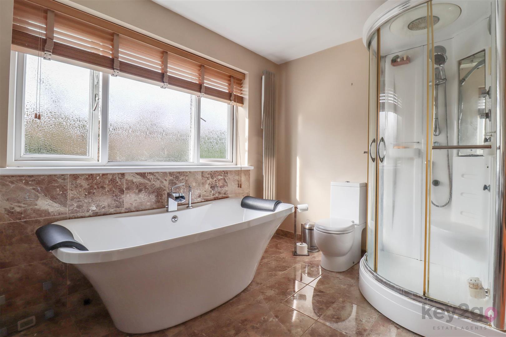 The kitchen/diner is a spacious and contemporary area, fitted with a modern range of units and providing ample room for dining. Patio doors open directly onto the garden. A door from the kitchen leads to a generous utility room, thoughtfully created from a garage conversion, providing excellent additional storage.