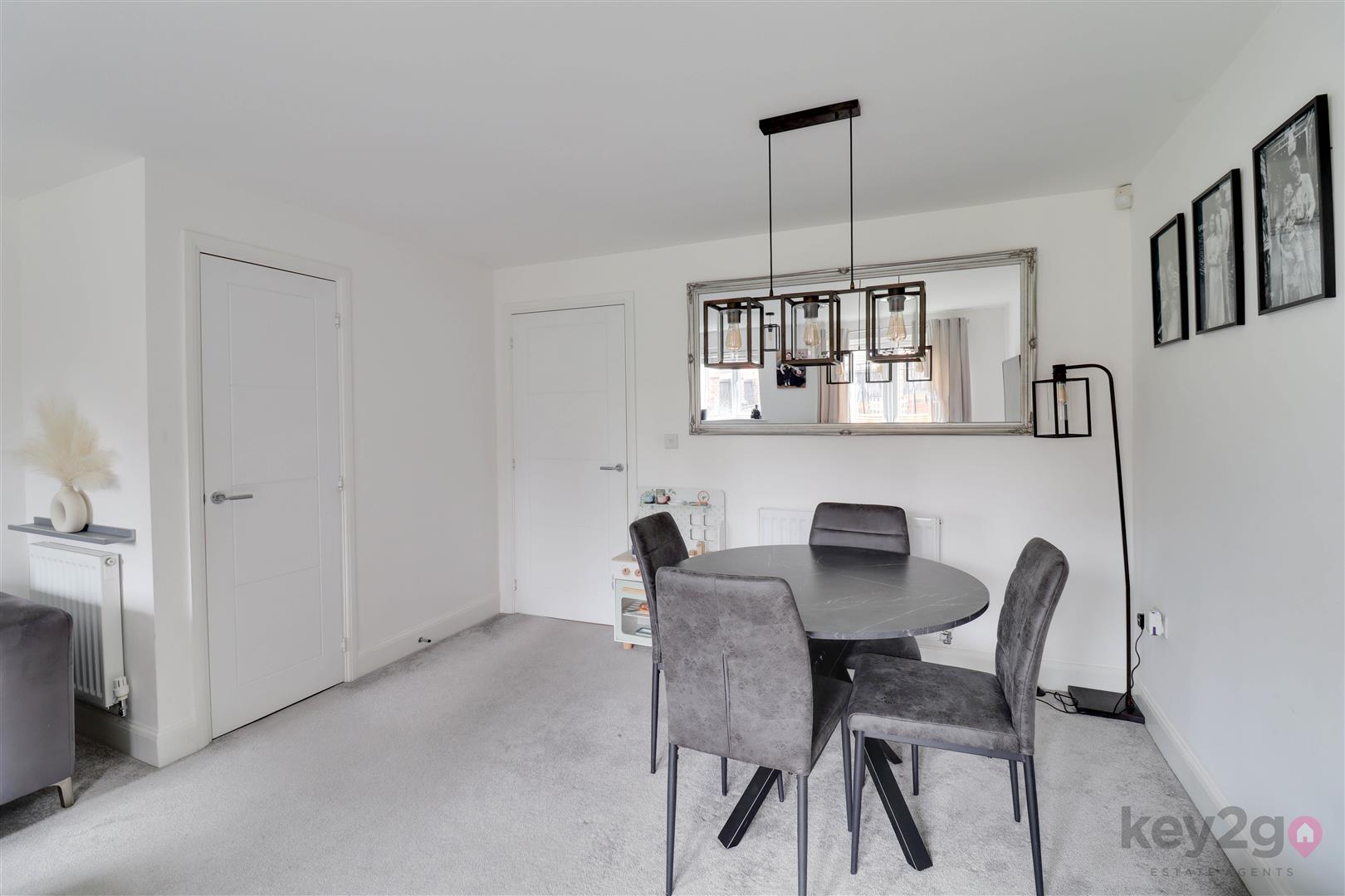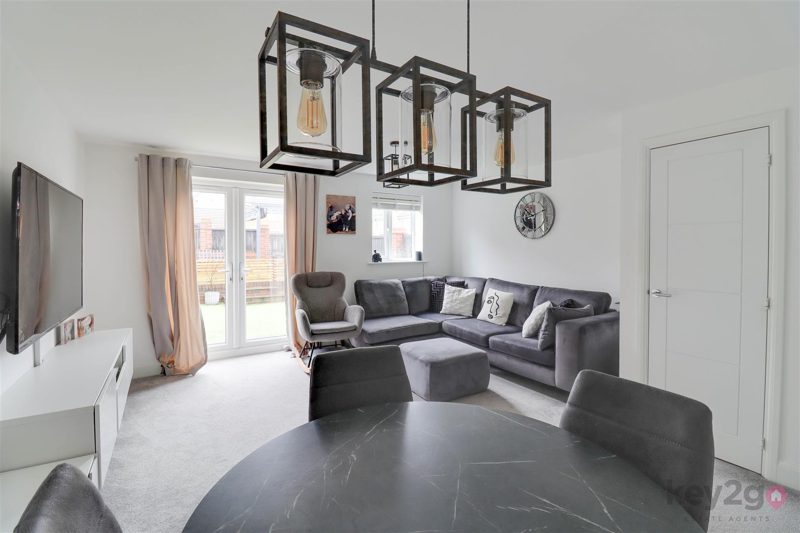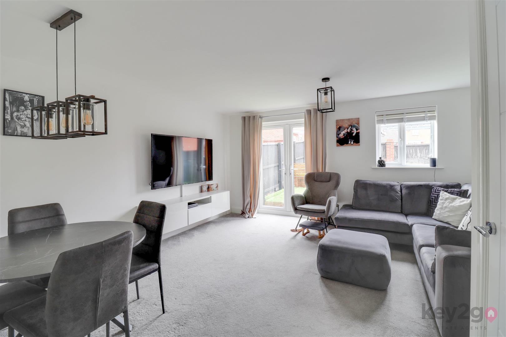 Enter into the hallway with a storage cupboard, stair rise to the first floor and doors to the kitchen, lounge/diner and downstairs WC. The kitchen is fitted with ample wall and base units, an oven, hob and extractor fan, along with a built-in fridge/freezer. The downstairs WC comprises a WC and wash basin. The lounge/diner is generously sized, featuring a storage cupboard, space for a dining table and double doors opening onto the rear garden.