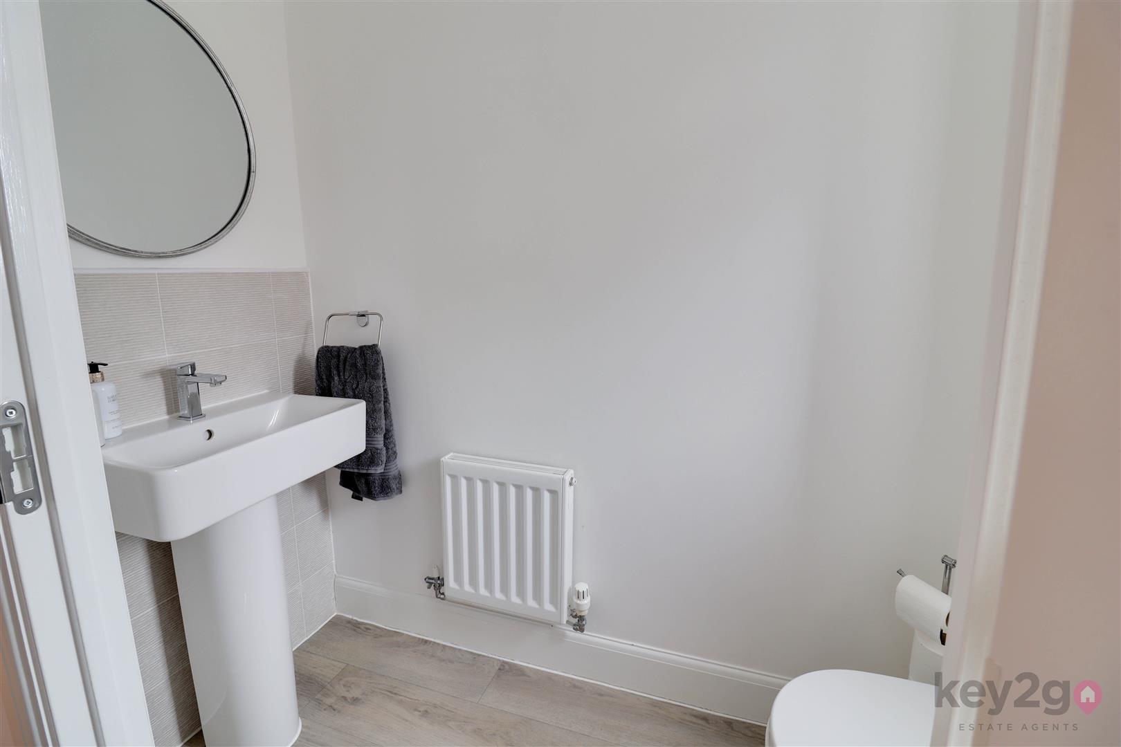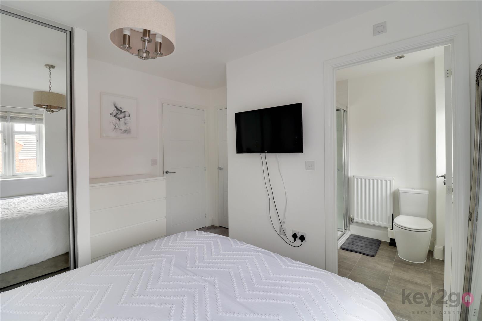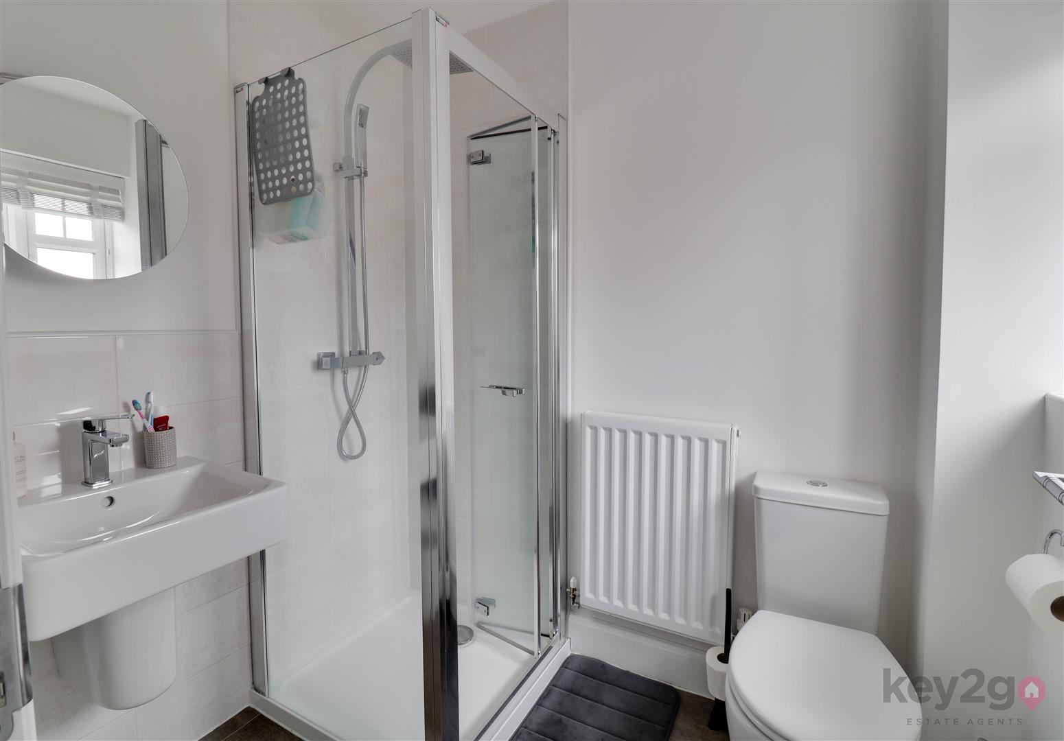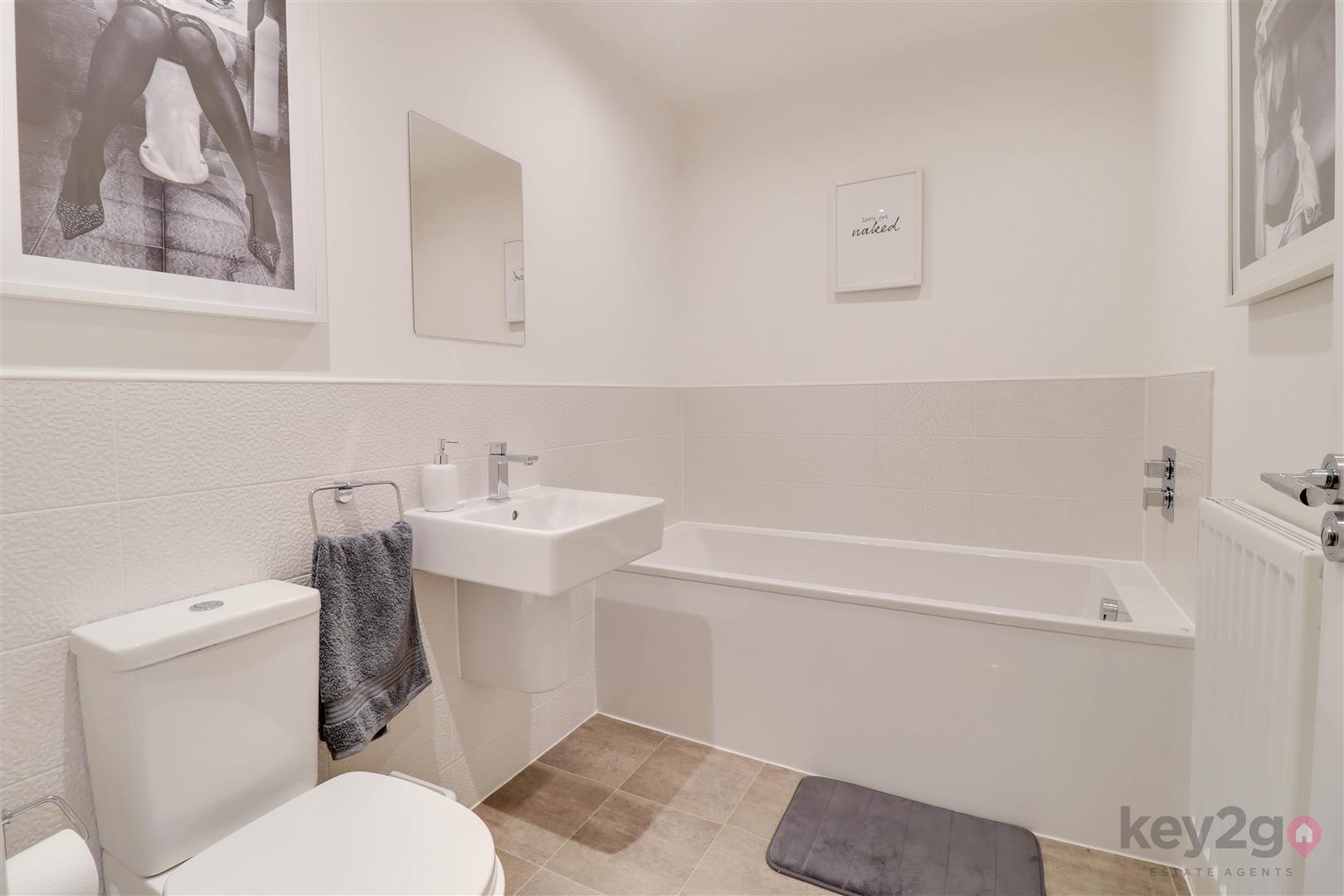 Stairs rise to the first floor landing with doors to the three bedrooms, bathroom and a storage cupboard. Bedroom one is a double bedroom with sliding wardrobes, an additional storage cupboard and a door to the en-suite, which comprises a shower cubicle, WC and wash basin. Bedroom two is a double bedroom with a window overlooking the rear. Bedroom three is a single bedroom, also with a window overlooking the rear. The bathroom is generously sized and fitted with a bath, wash basin and WC.