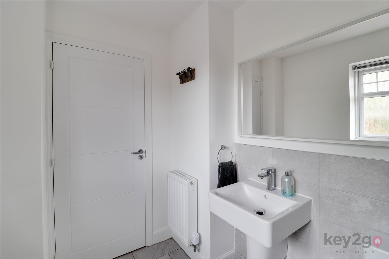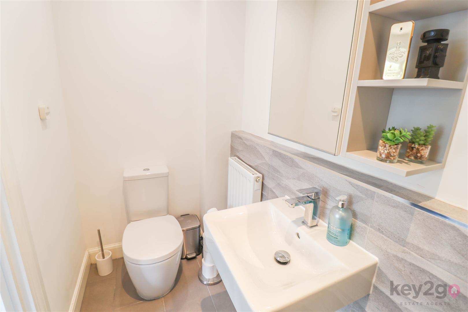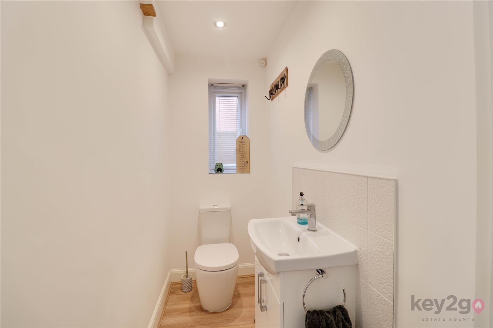 Entrance via a side door into the spacious and welcoming hallway with doors to the WC, lounge and kitchen. The lounge is spacious and benefits from a large bay window and large storage cupboard. A downstairs WC with a modern sink, WC and window. A stylish kitchen with ample wall and base units. space for a dining table, access to the rear via double doors and access to the garage.