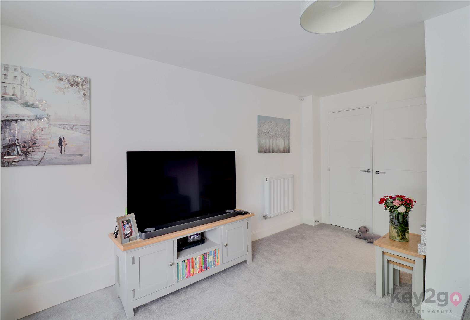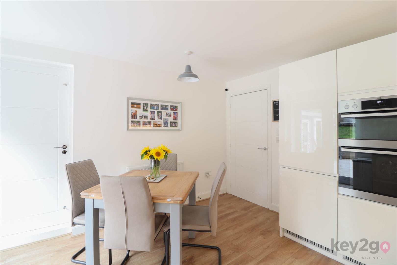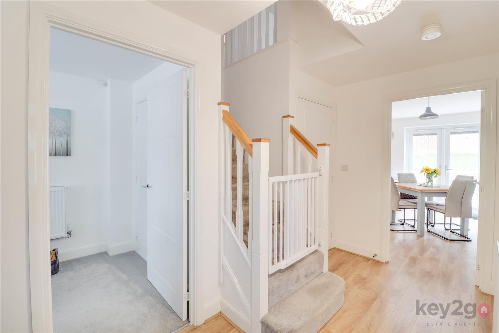 Entrance via a side door into the spacious and welcoming hallway with doors to the WC, lounge and kitchen. The lounge is spacious and benefits from a large bay window and large storage cupboard. A downstairs WC with a modern sink, WC and window. A stylish kitchen with ample wall and base units. space for a dining table, access to the rear via double doors and access to the garage.