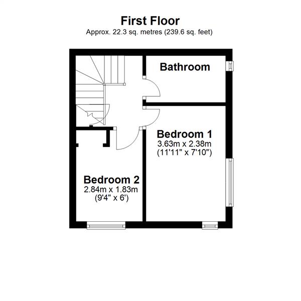 Upstairs, the staircase leads to a first-floor landing giving access to two bedrooms and the bathroom. The property offers one double bedroom and one single bedroom, while the bathroom boasts a stunning, newly fitted suite that has never been used.